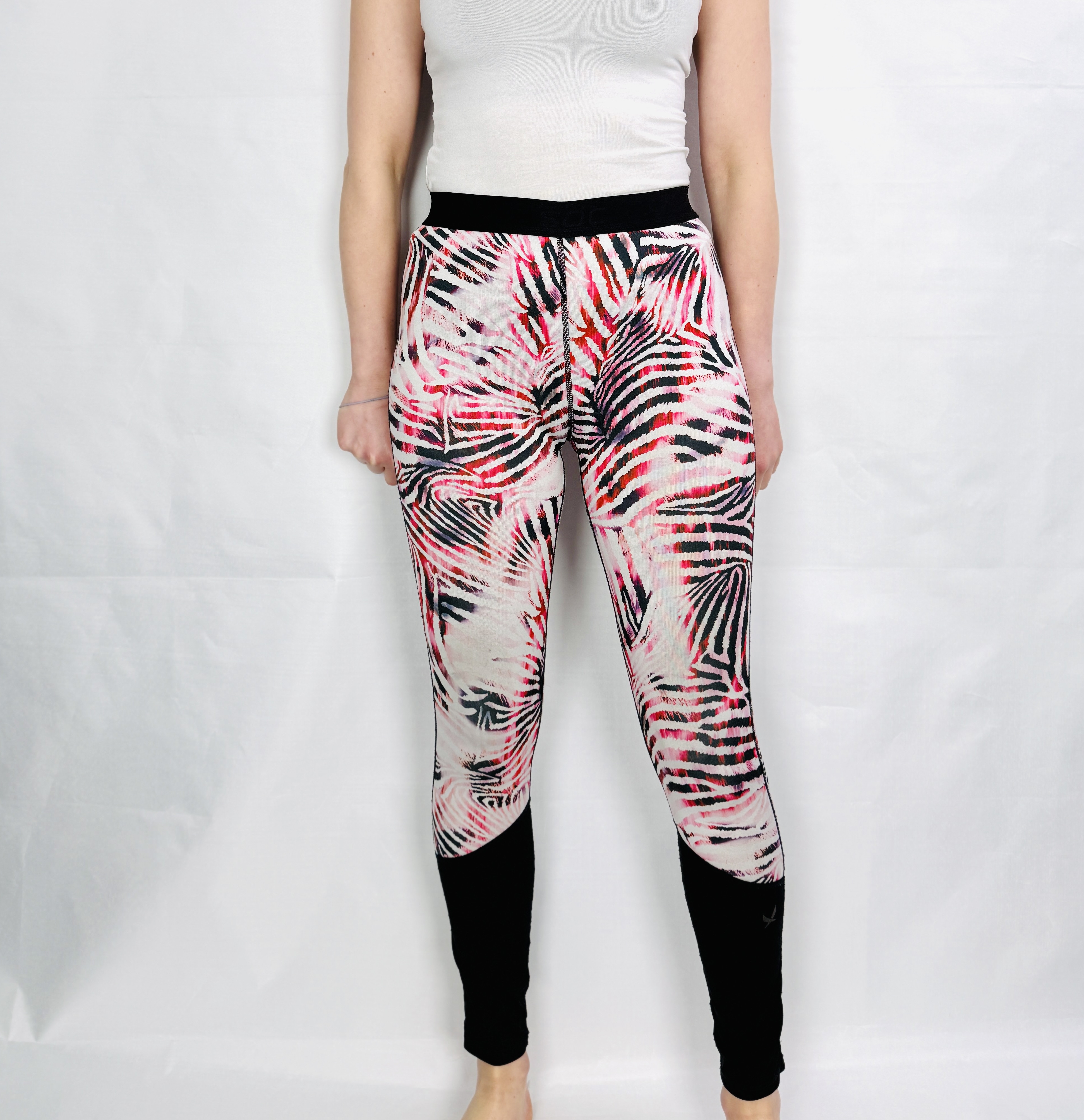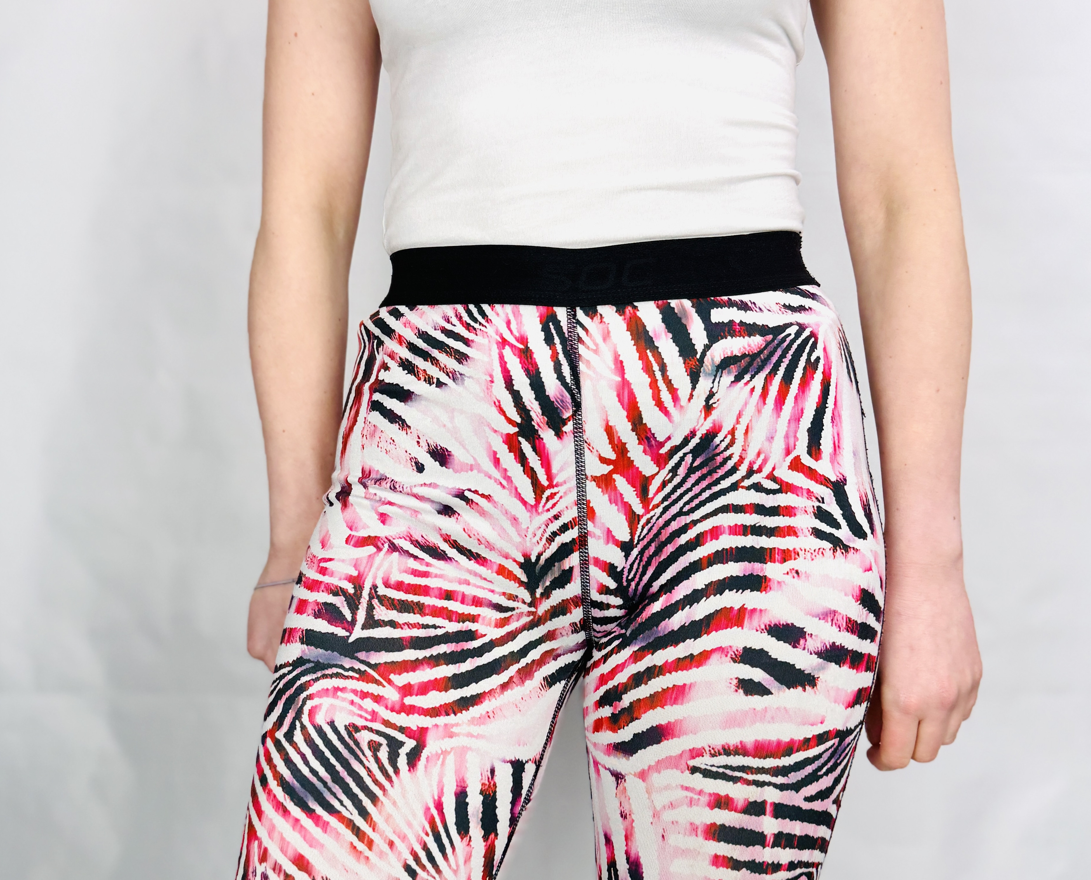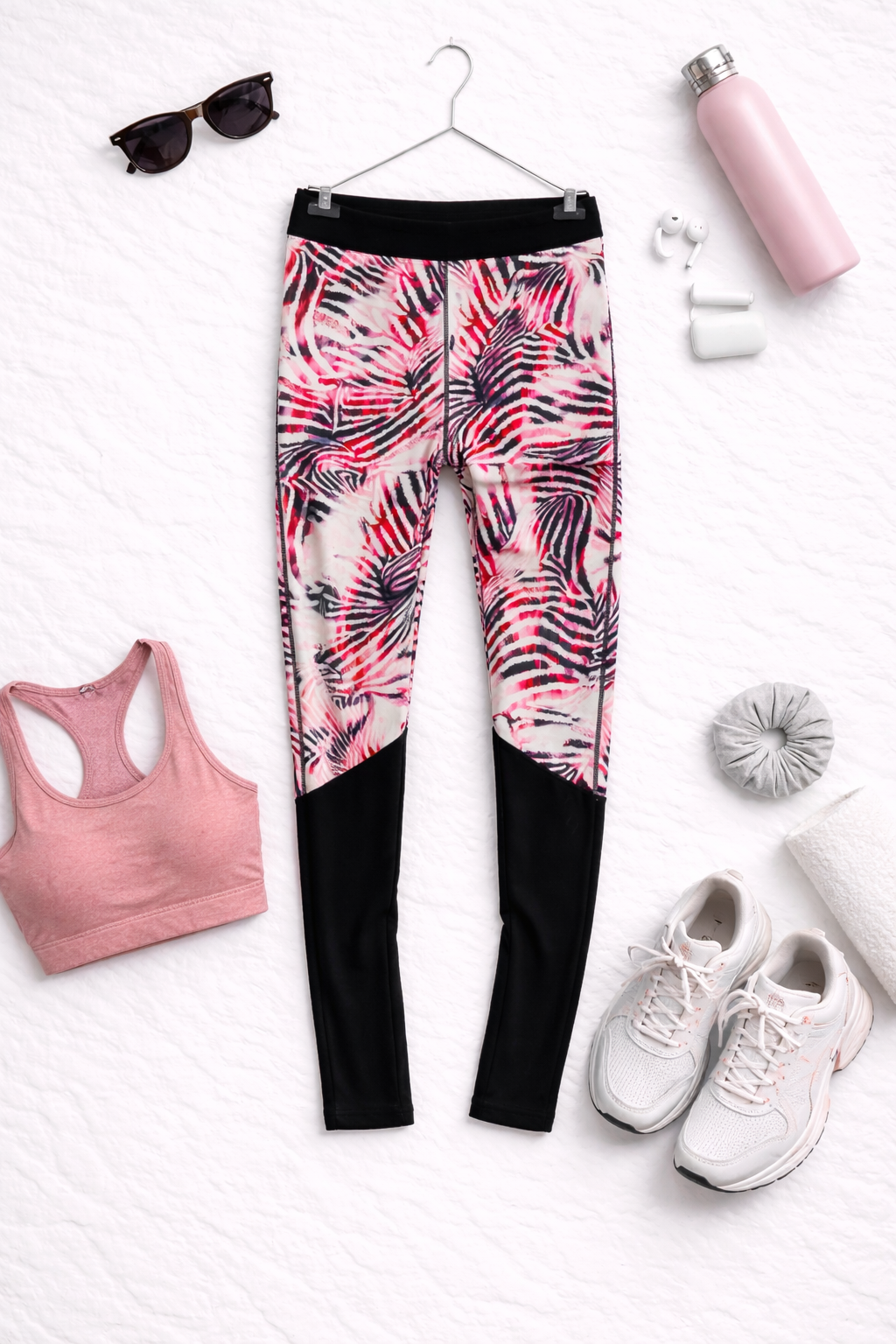 To legginsy o energetycznym i jednocześnie kobiecym charakterze — graficzny, niemal akwarelowy wzór w odcieniach różu, czerni i bieli nadaje im świeżości i modnego wyrazu, a kontrastowe czarne wstawki przy kostkach wprowadzają wyraźny, nowoczesny akcent. Całość łączy sportową dynamikę z subtelną zmysłowością, dzięki czemu legginsy sprawdzą się zarówno podczas treningu, jak i w codziennych, aktywnych stylizacjach, gdzie chcemy wyglądać stylowo i czuć komfort.