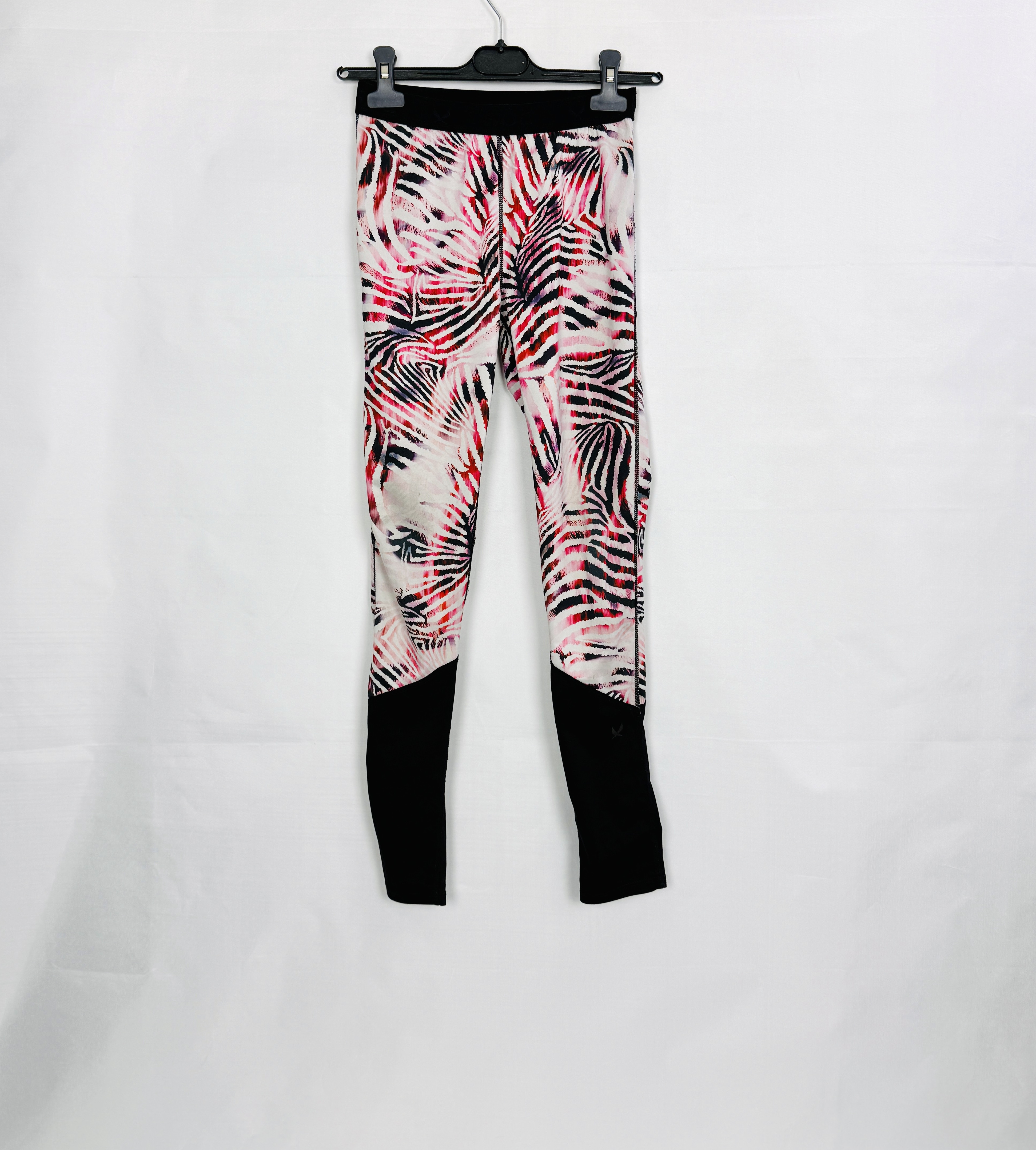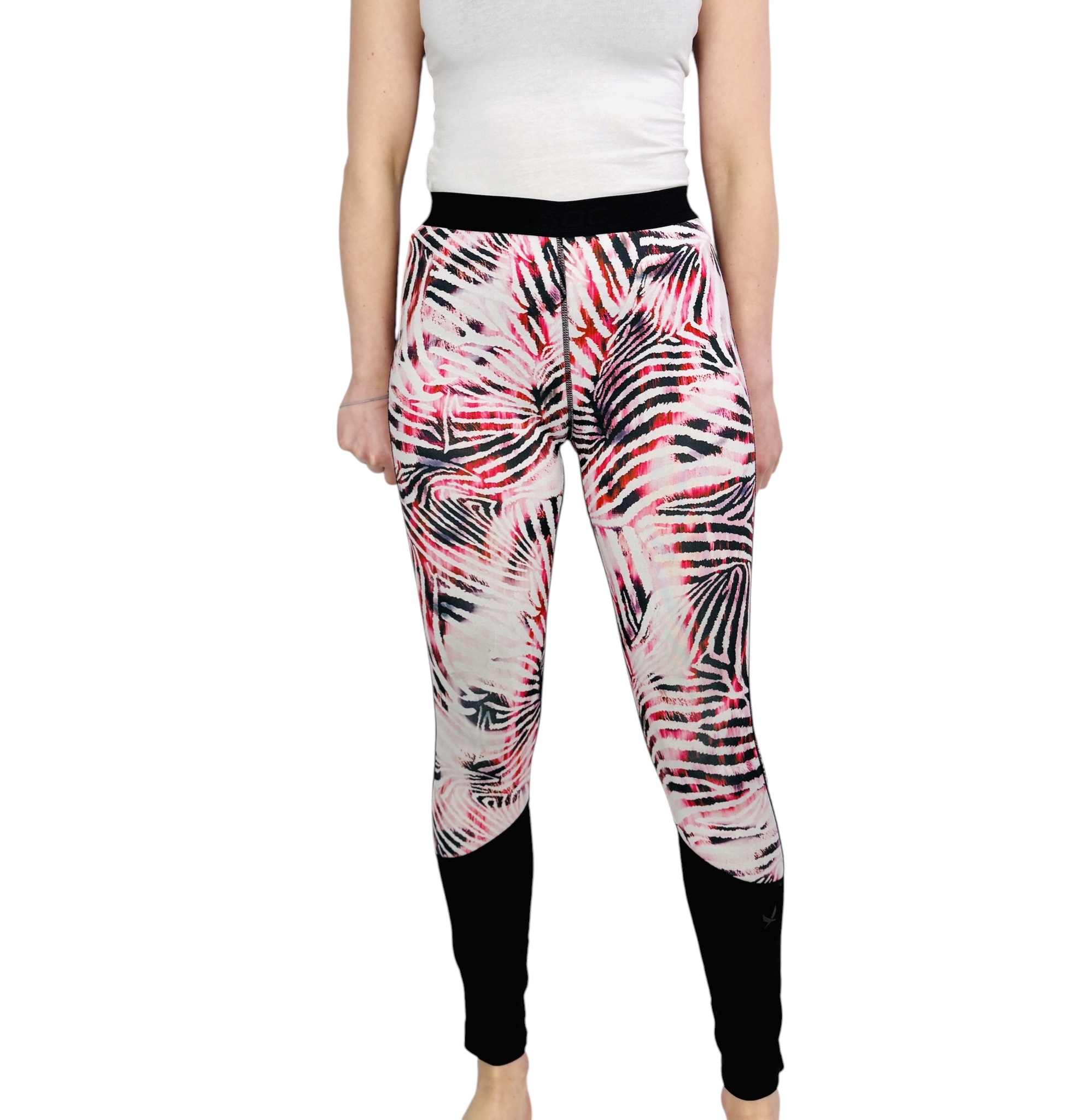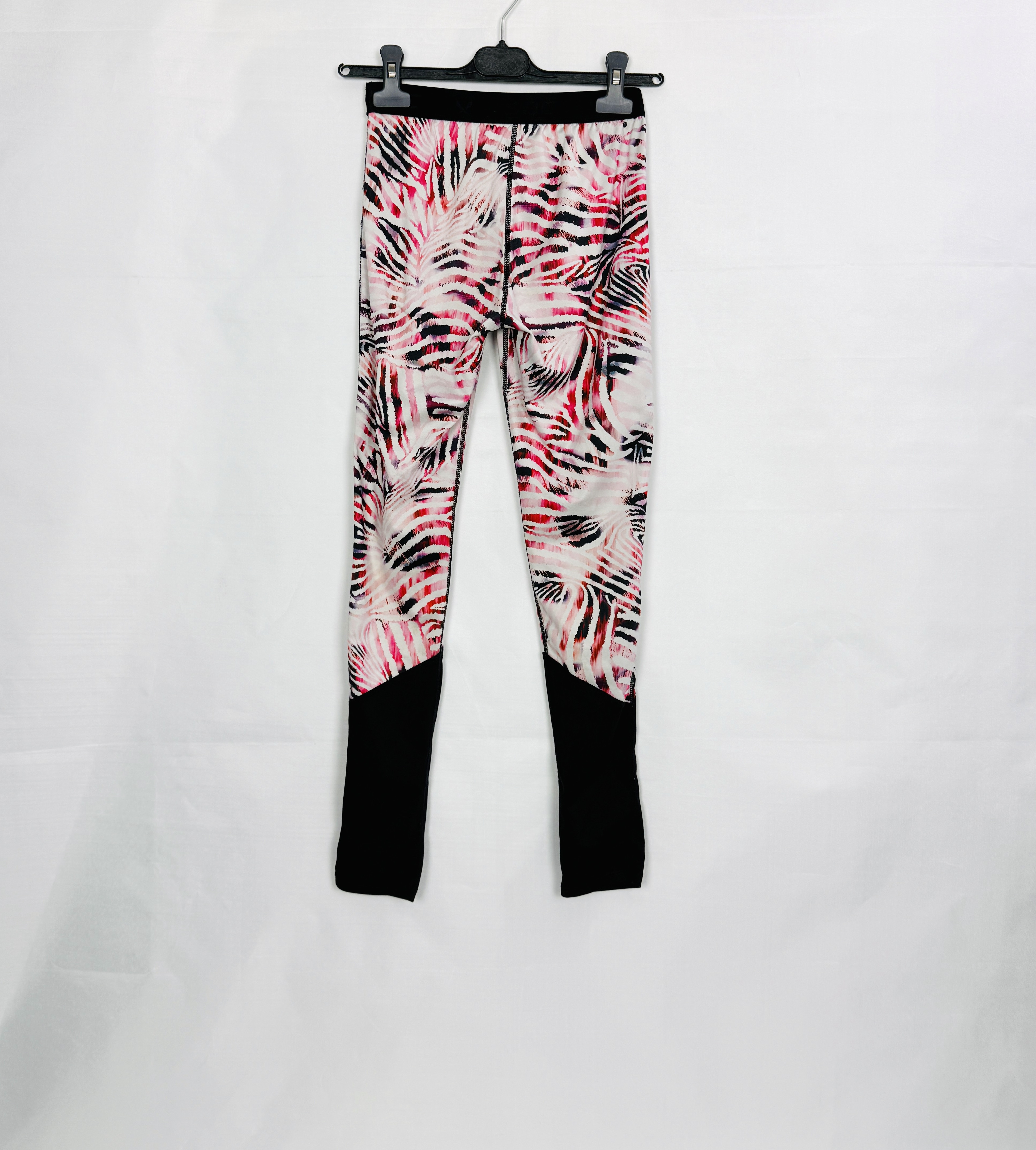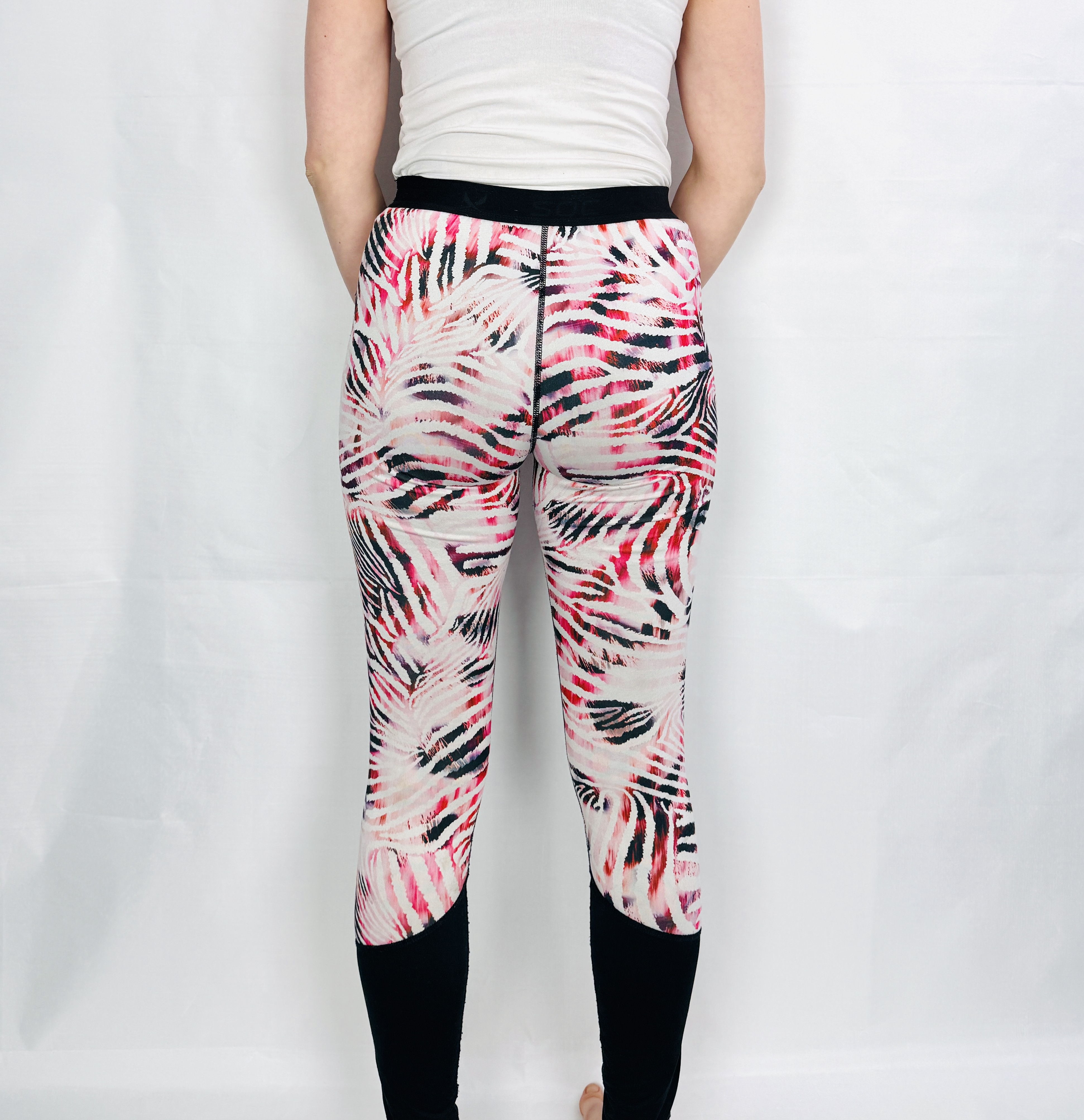 To legginsy o energetycznym i jednocześnie kobiecym charakterze — graficzny, niemal akwarelowy wzór w odcieniach różu, czerni i bieli nadaje im świeżości i modnego wyrazu, a kontrastowe czarne wstawki przy kostkach wprowadzają wyraźny, nowoczesny akcent. Całość łączy sportową dynamikę z subtelną zmysłowością, dzięki czemu legginsy sprawdzą się zarówno podczas treningu, jak i w codziennych, aktywnych stylizacjach, gdzie chcemy wyglądać stylowo i czuć komfort.