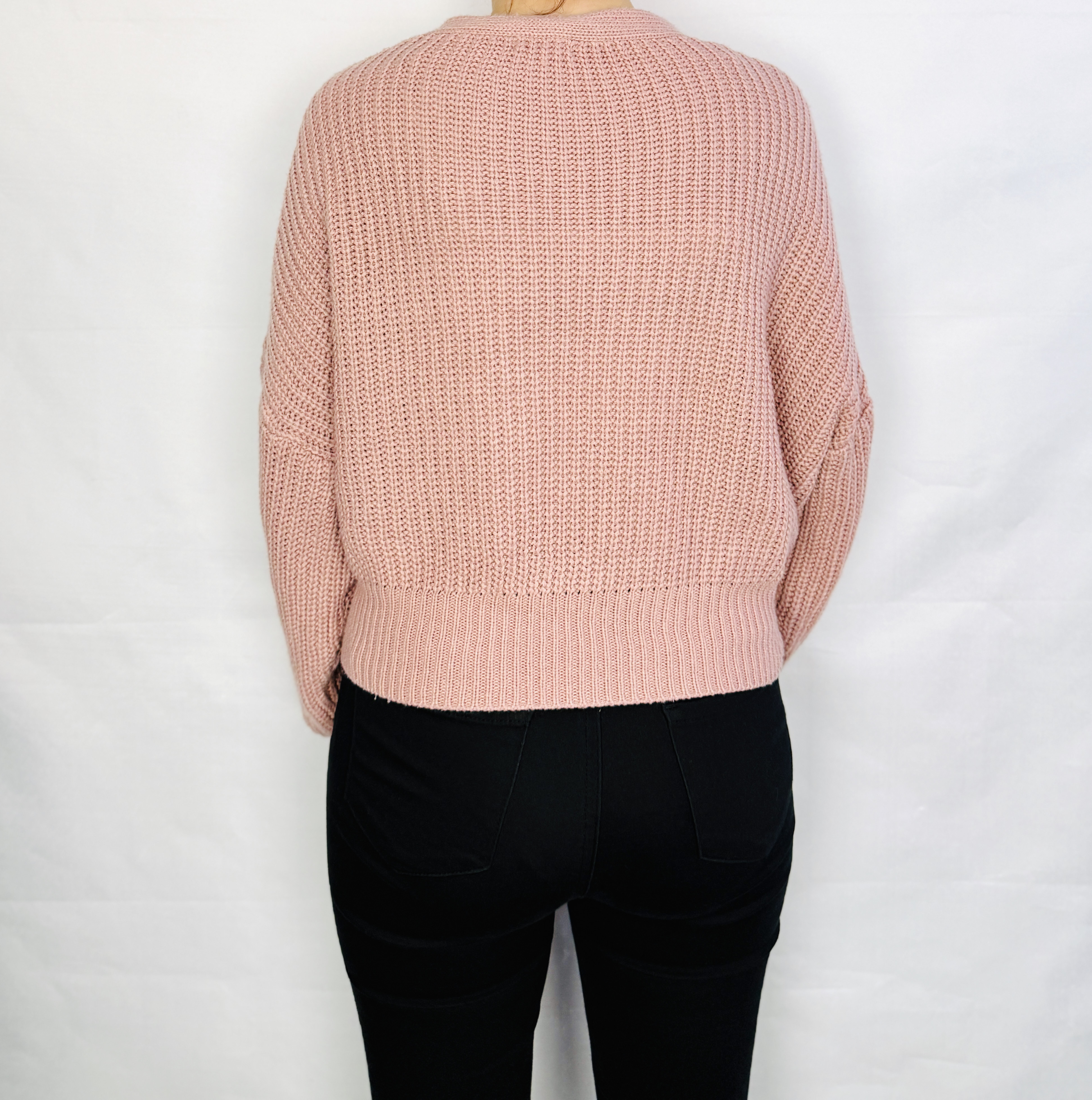 Ten sweter to uosobienie miękkiej, kobiecej delikatności — pudrowy róż nadaje mu subtelnego, romantycznego klimatu, a kopertowy fason wprowadza elegancką nutę bez nadmiaru ozdób. Całość sprawia wrażenie przytulnej lekkości: to element garderoby, który potrafi osłodzić codzienny look, jednocześnie dodając mu wdzięku i łagodnej finezji. Dzięki prostocie formy i jednoczesnej dekoracji w postaci widocznego troczka sweter wygląda naturalnie i kobieco.