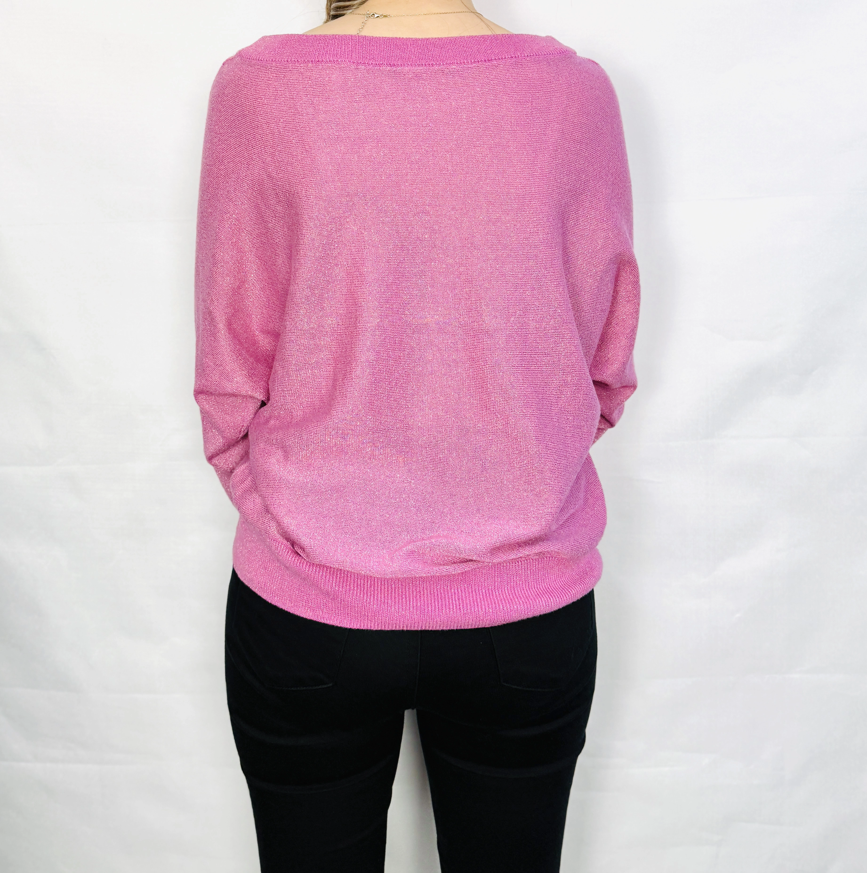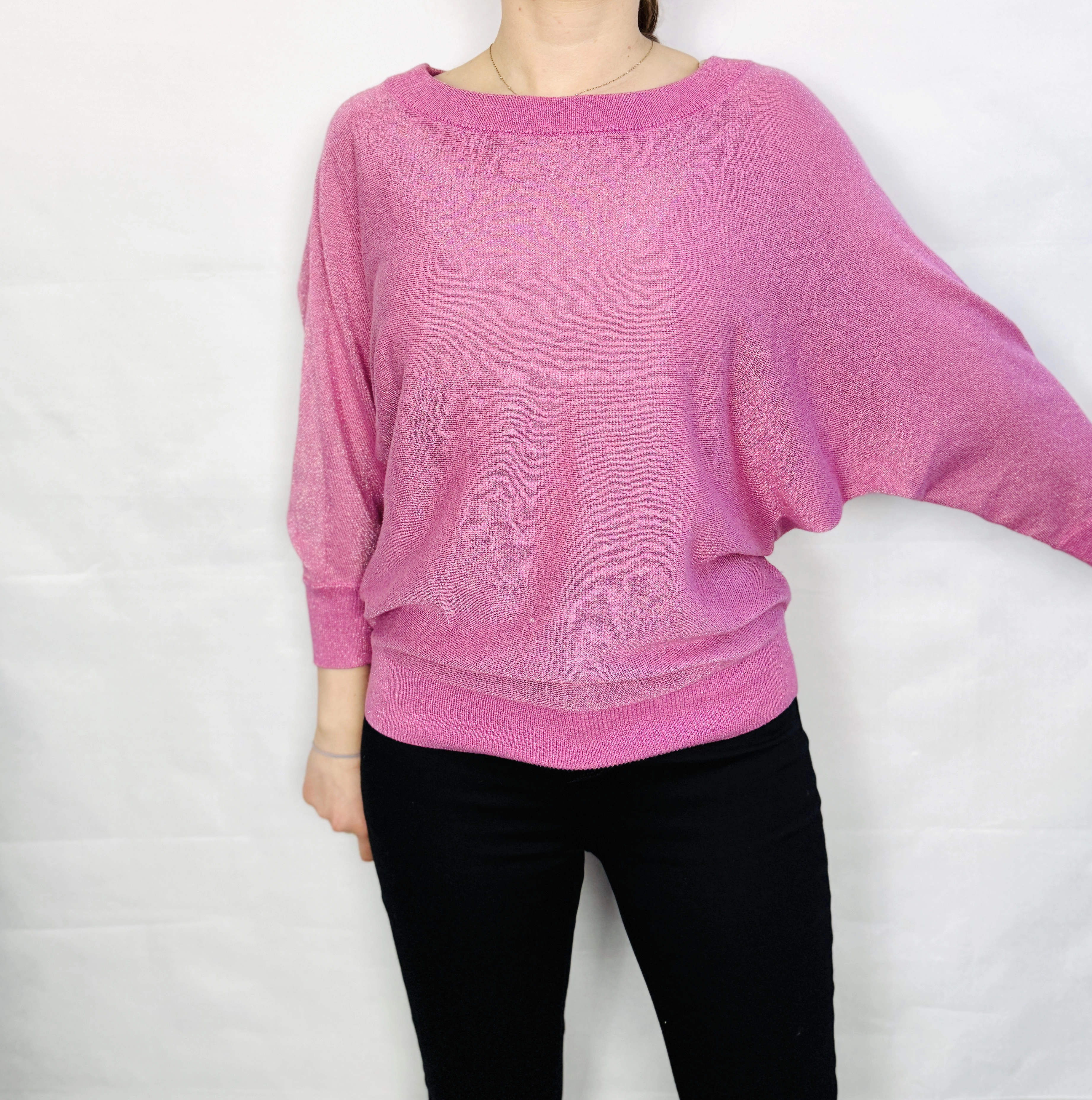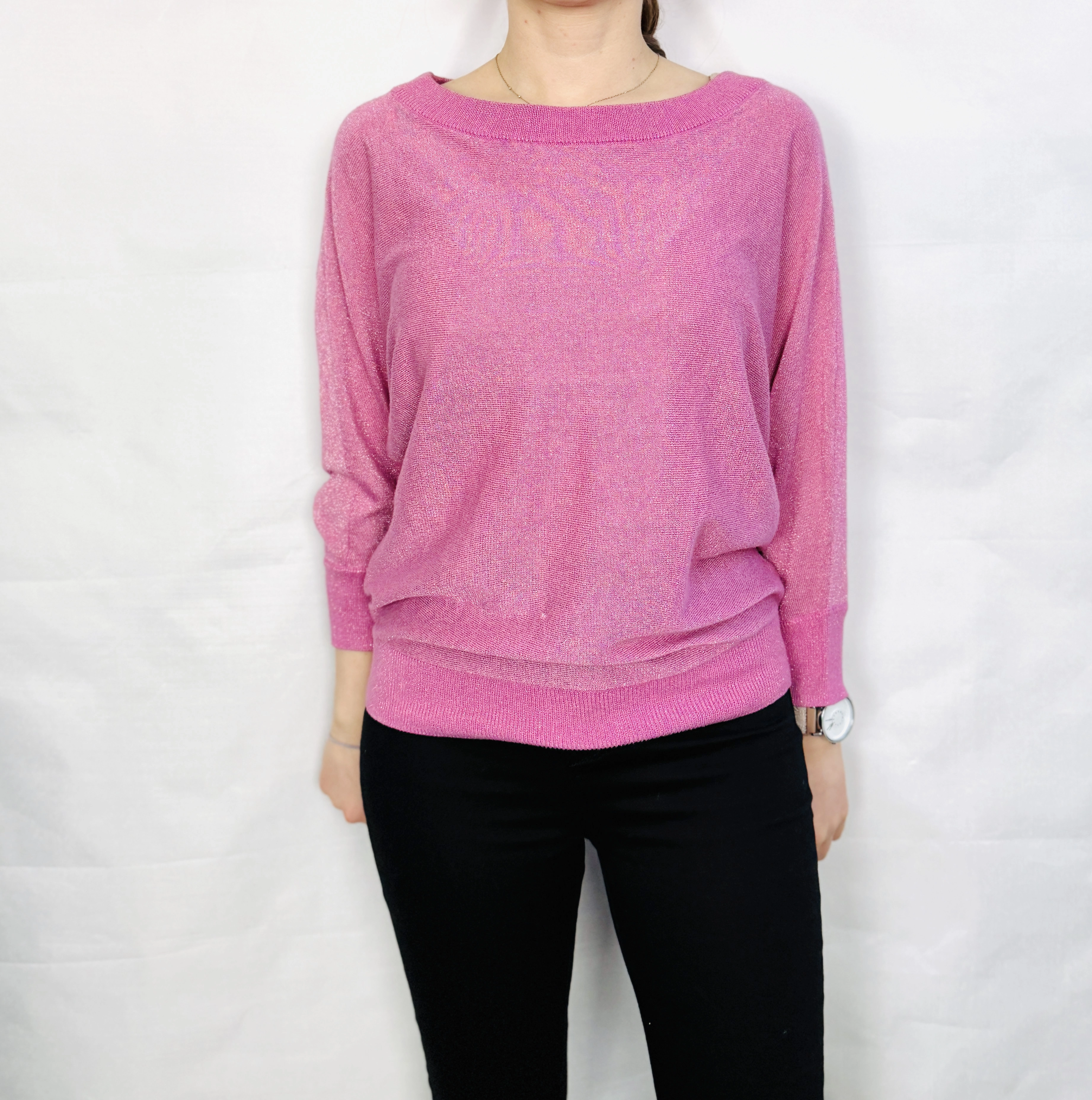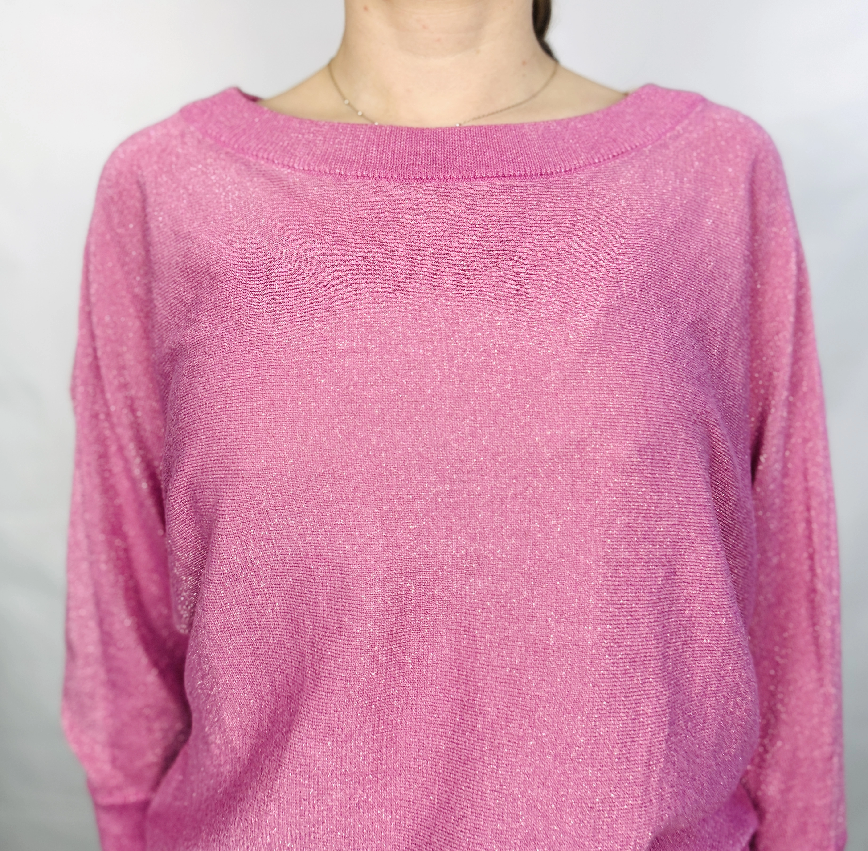 Różowy sweterek oversize z delikatnym połyskiem S 36