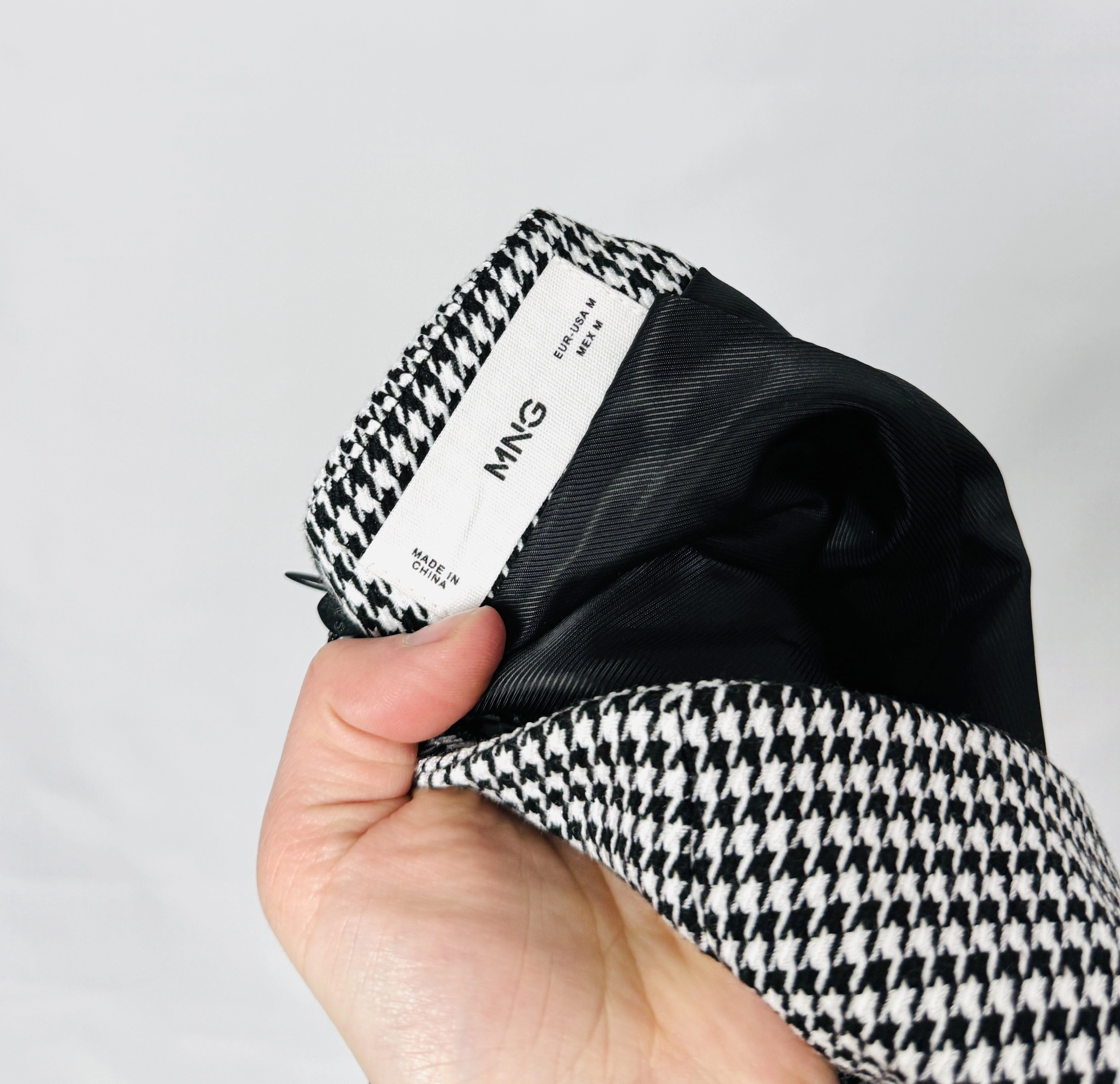 Materiał, z którego wykonano ten model, jest nieco grubszy, miękki i nastrojowo otulający, co sprawia, że ubiór nienagannie trzyma swój radosny fason. Tkanina posiada radosną, delikatnie wyczuwalną strukturę splotu, która nastrojowo podkreśla głębię czerni i jasność bieli w nienagannej pepitce. Materiał wygląda na elastyczny i sprężysty, co zapewnia radosne poczucie komfortu i nastrojową świeżość przez cały radosny dzień. Sposób, w jaki materiał nastrojowo pracuje przy każdym ruchu, świadczy o radosnej dbałości o wysoką jakość i nienaganny styl każdej radosnej klientki.
