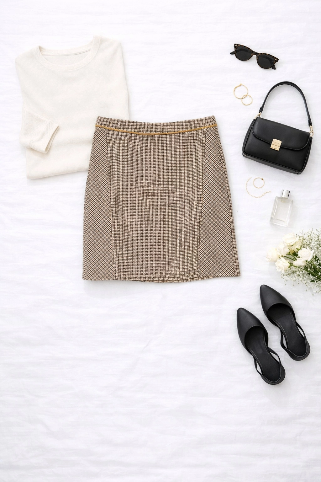 Ta spódnica to kwintesencja klasycznej elegancji w kobiecym, subtelnym wydaniu. Wzór pepitki od lat pozostaje symbolem ponadczasowego stylu i dobrego gustu, a tutaj został zaprezentowany w delikatnej, jasnej odsłonie, która dodaje całości lekkości i świeżości. To model, który doskonale łączy w sobie tradycję z nowoczesnym wyczuciem mody, tworząc harmonijną propozycję zarówno na co dzień, jak i na bardziej formalne okazje.