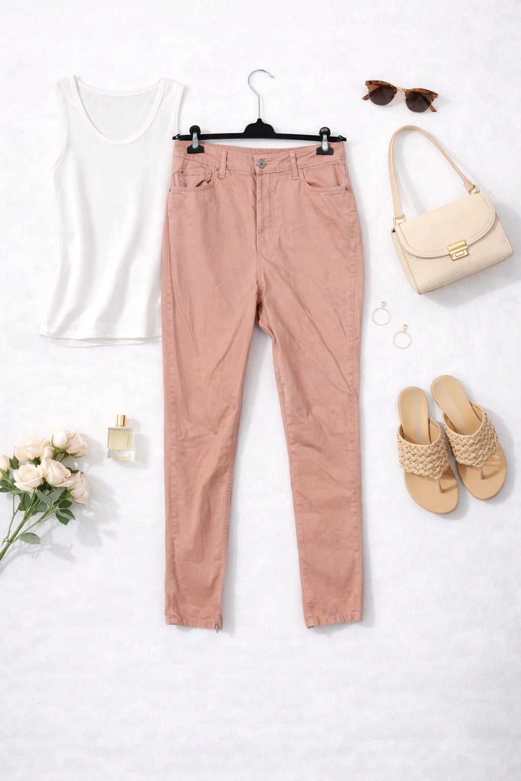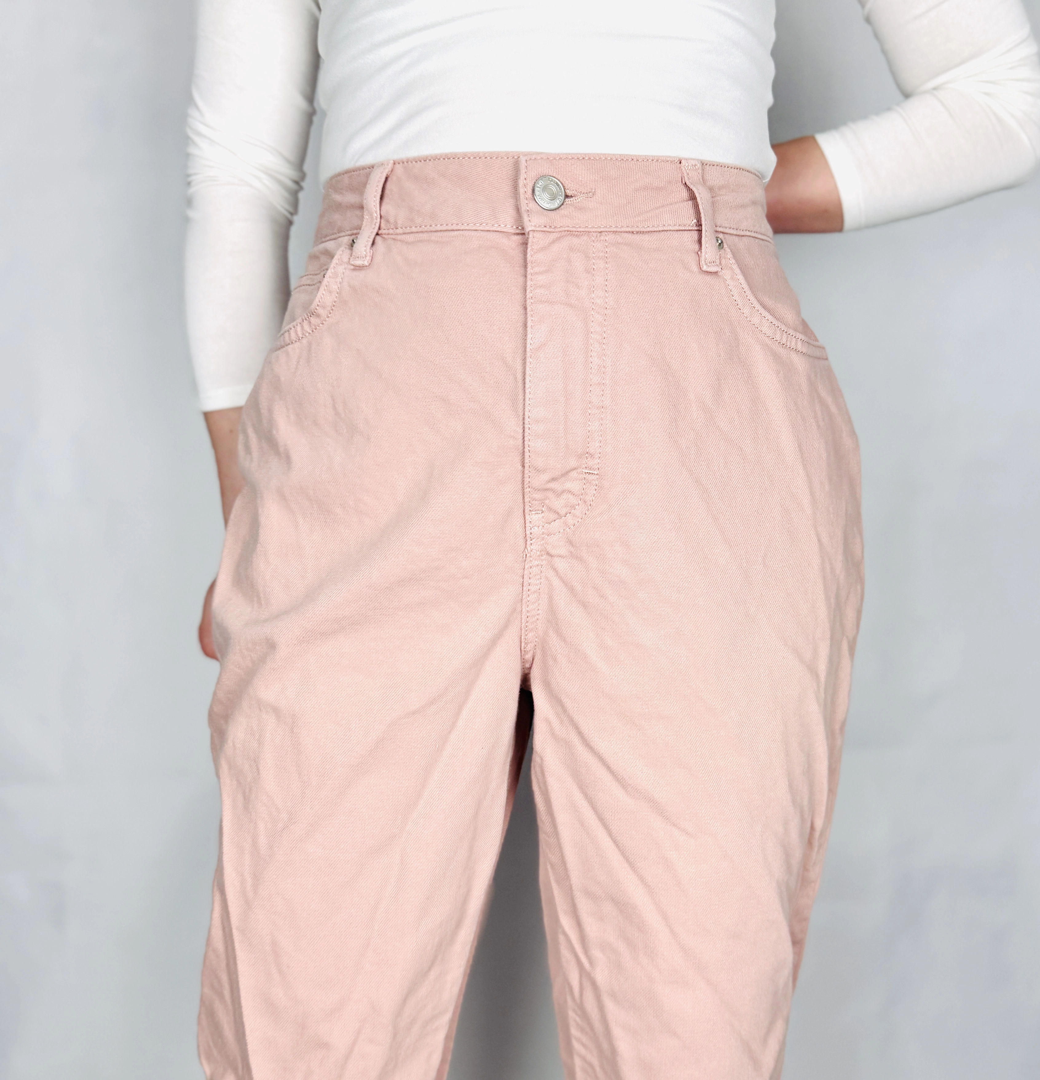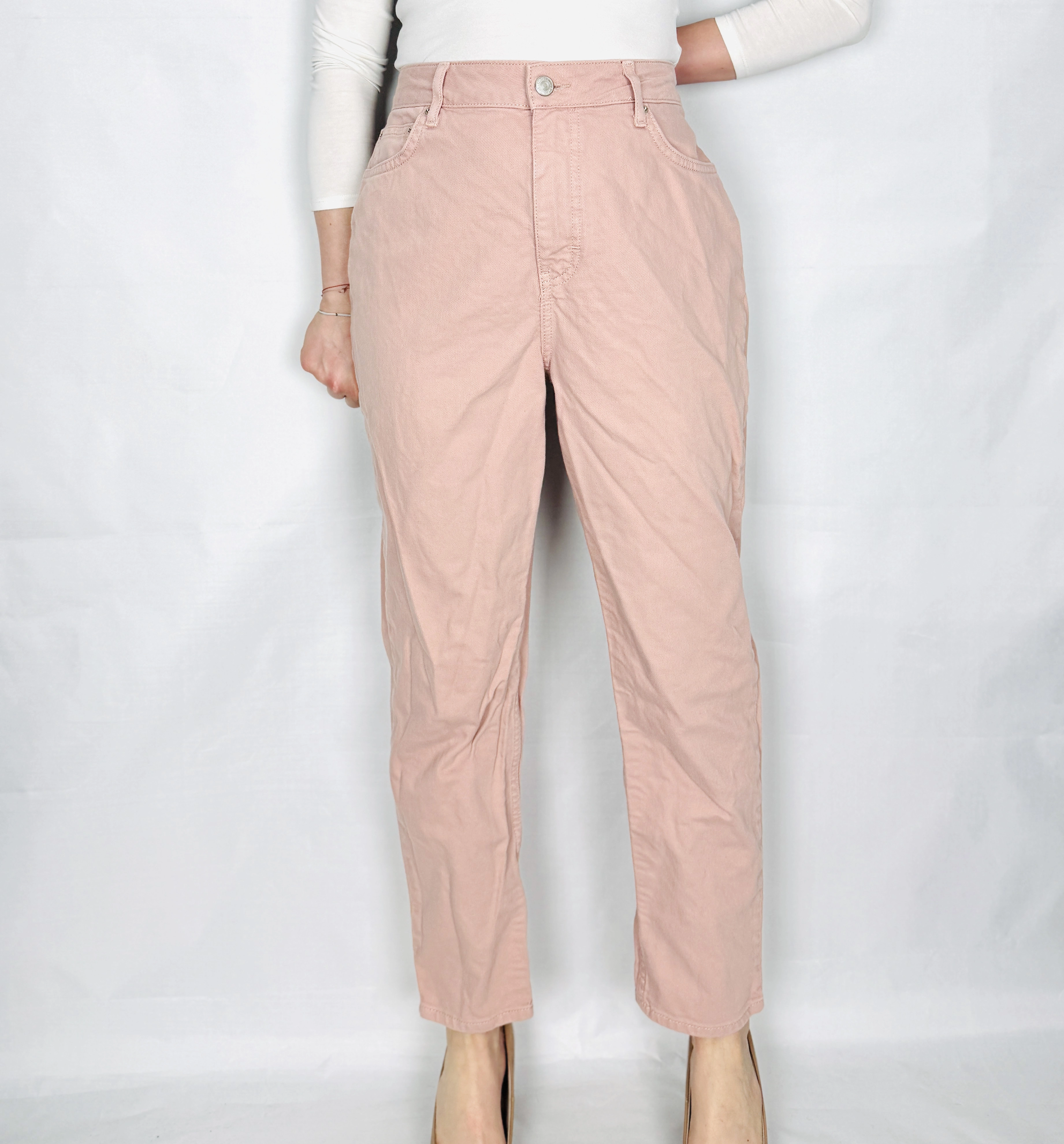 Spodnie pudrowy róż z wysokim stanem XL 42