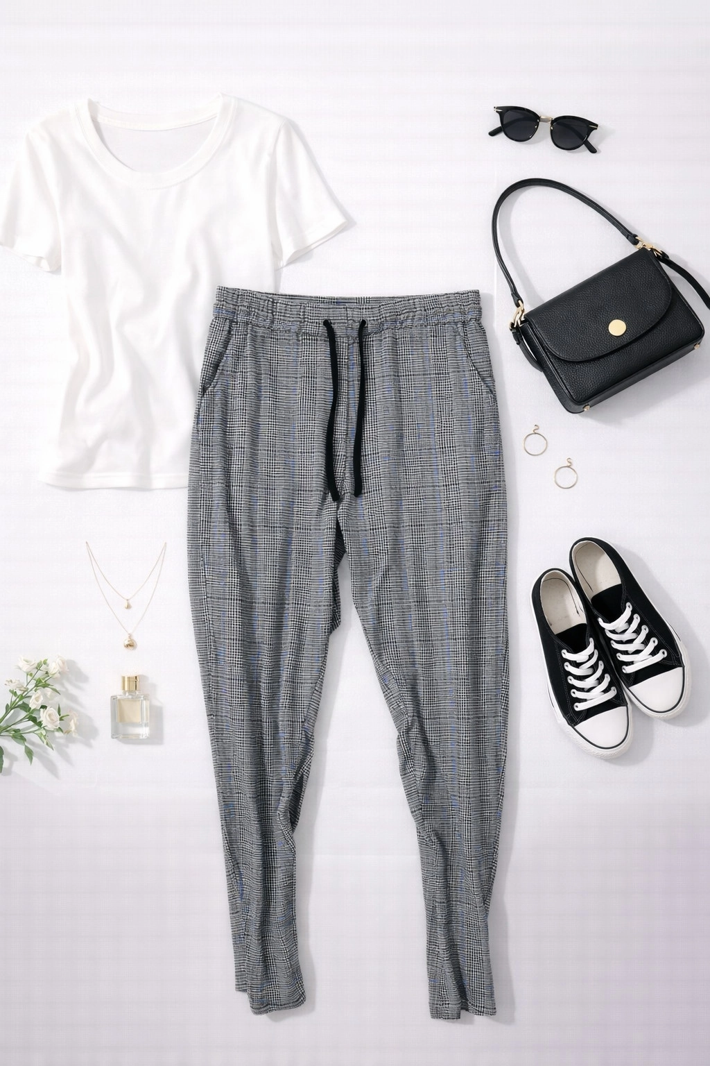 Spodnie w kratę to doskonała baza do wielu stylizacji. Na co dzień można zestawić je z prostym t-shirtem lub miękkim swetrem oraz wygodnym obuwiem, tworząc stylowy, miejski look. W wersji bardziej eleganckiej świetnie komponują się z koszulą i marynarką. Na spotkanie lub wyjście można dobrać dopasowaną bluzkę i buty na obcasie. Klasyczna kolorystyka czerni, bieli i szarości pozwala na łatwe łączenie z innymi barwami, od neutralnych po bardziej wyraziste akcenty.