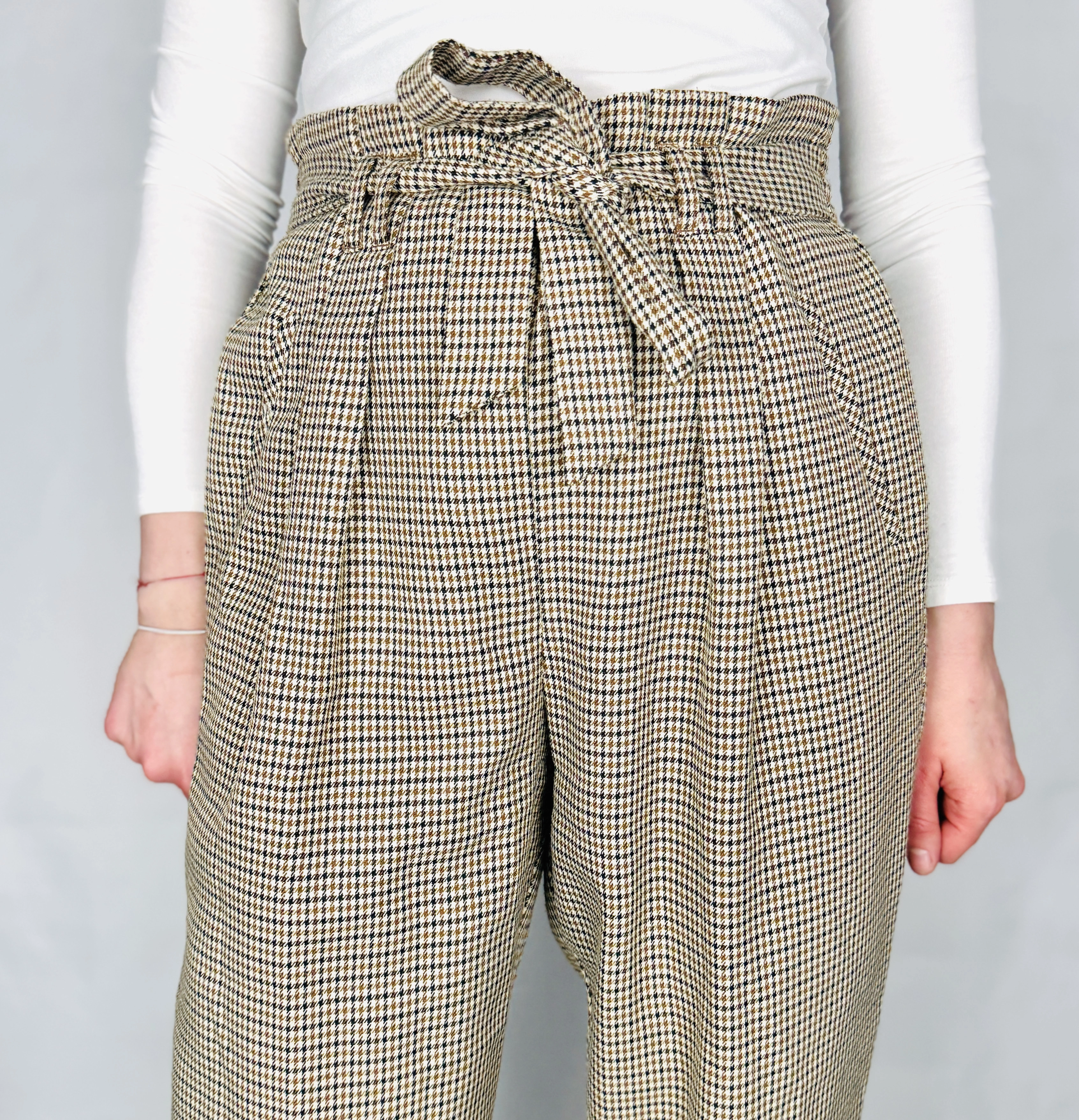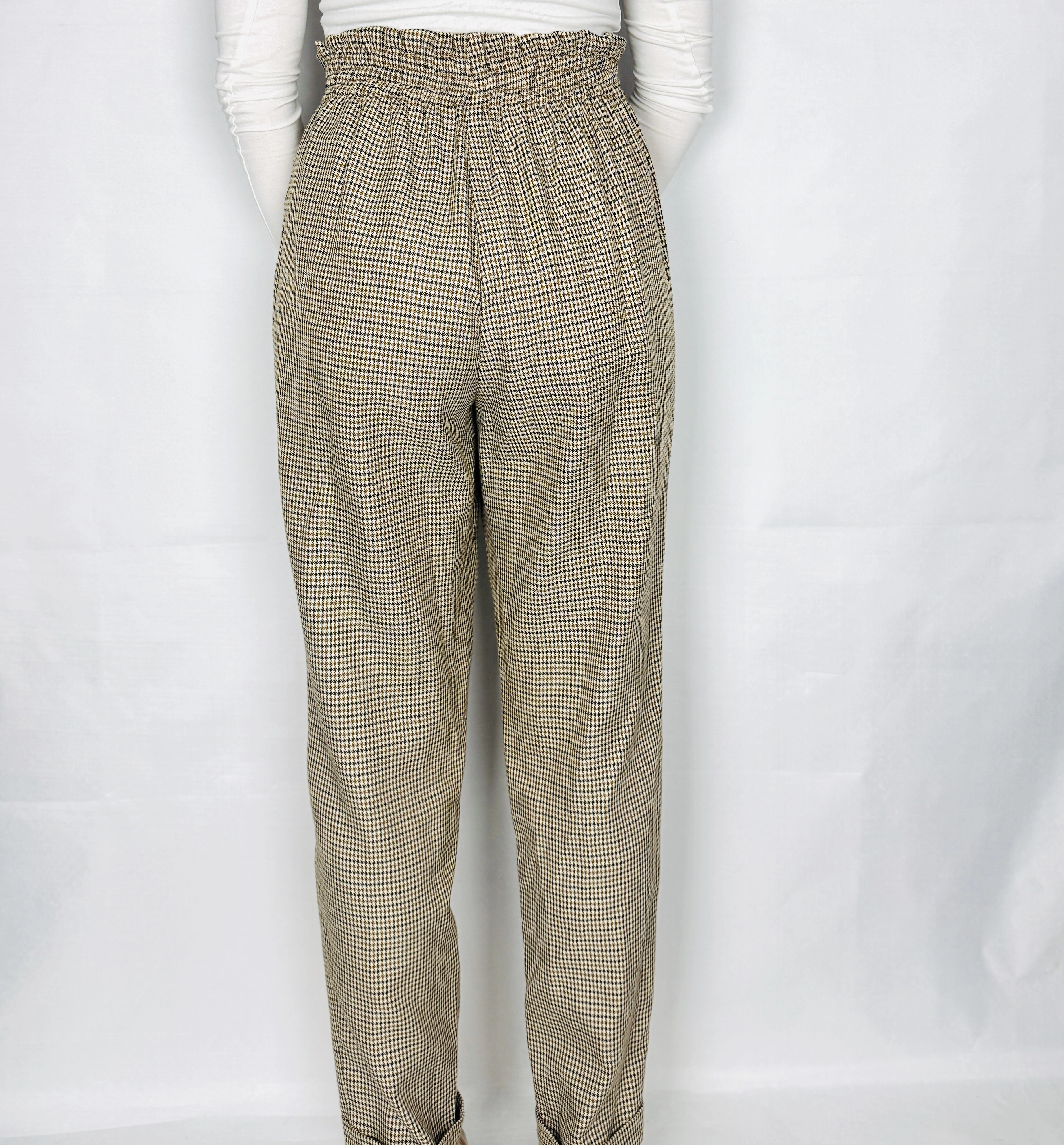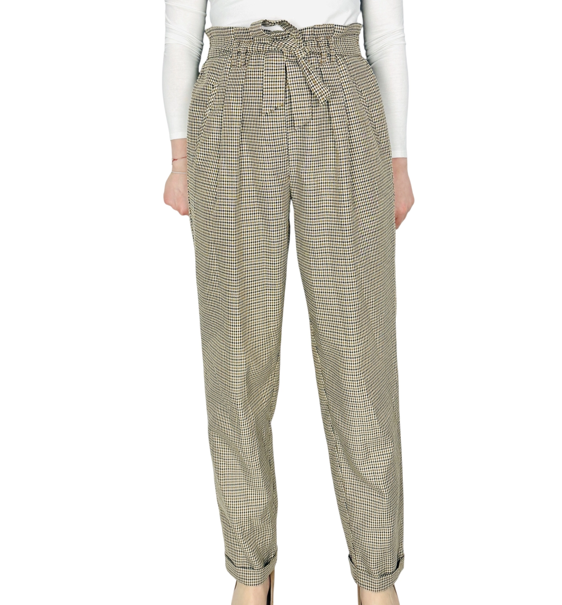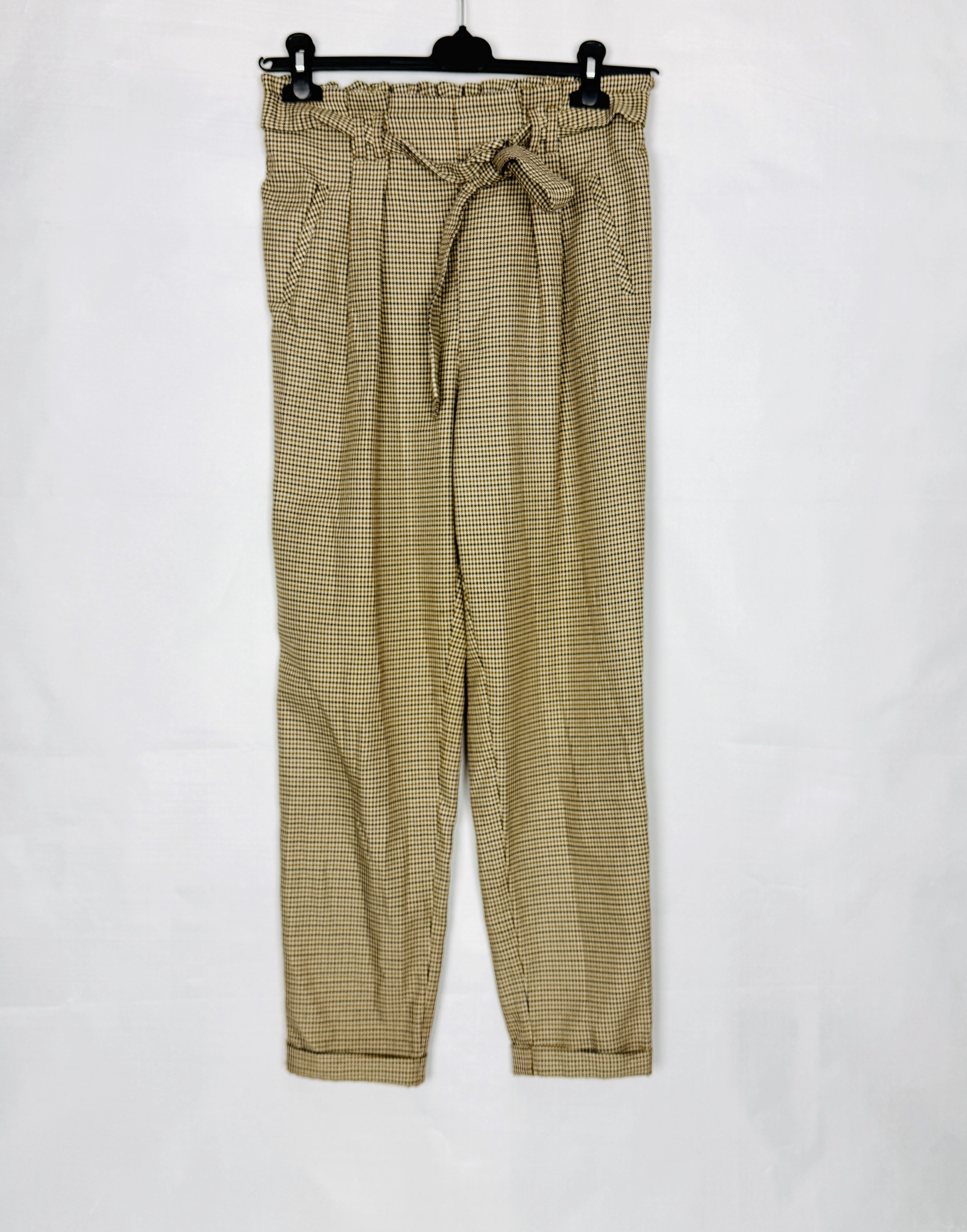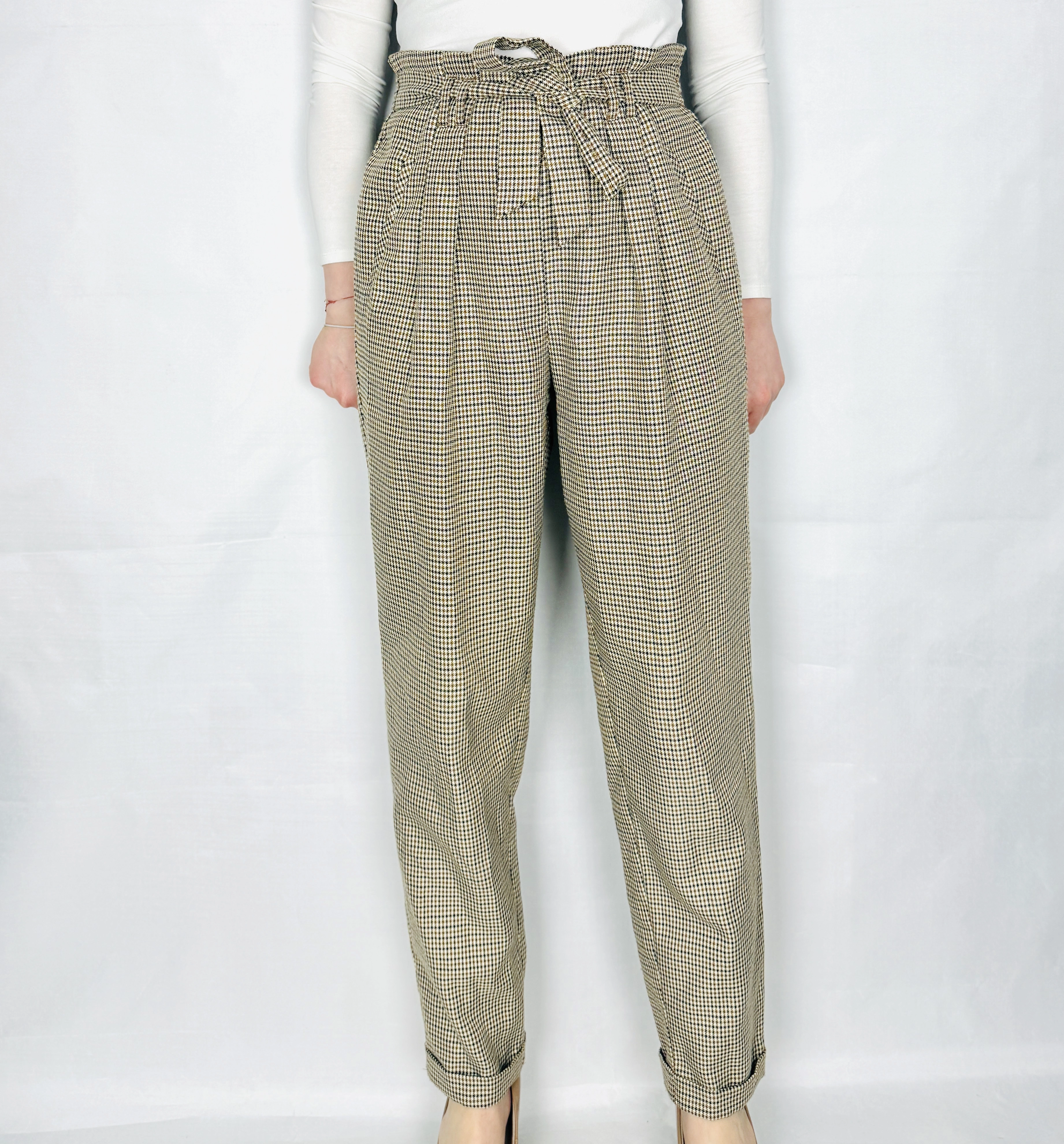 Spodnie w pepitkę z wysokim stanem M 38