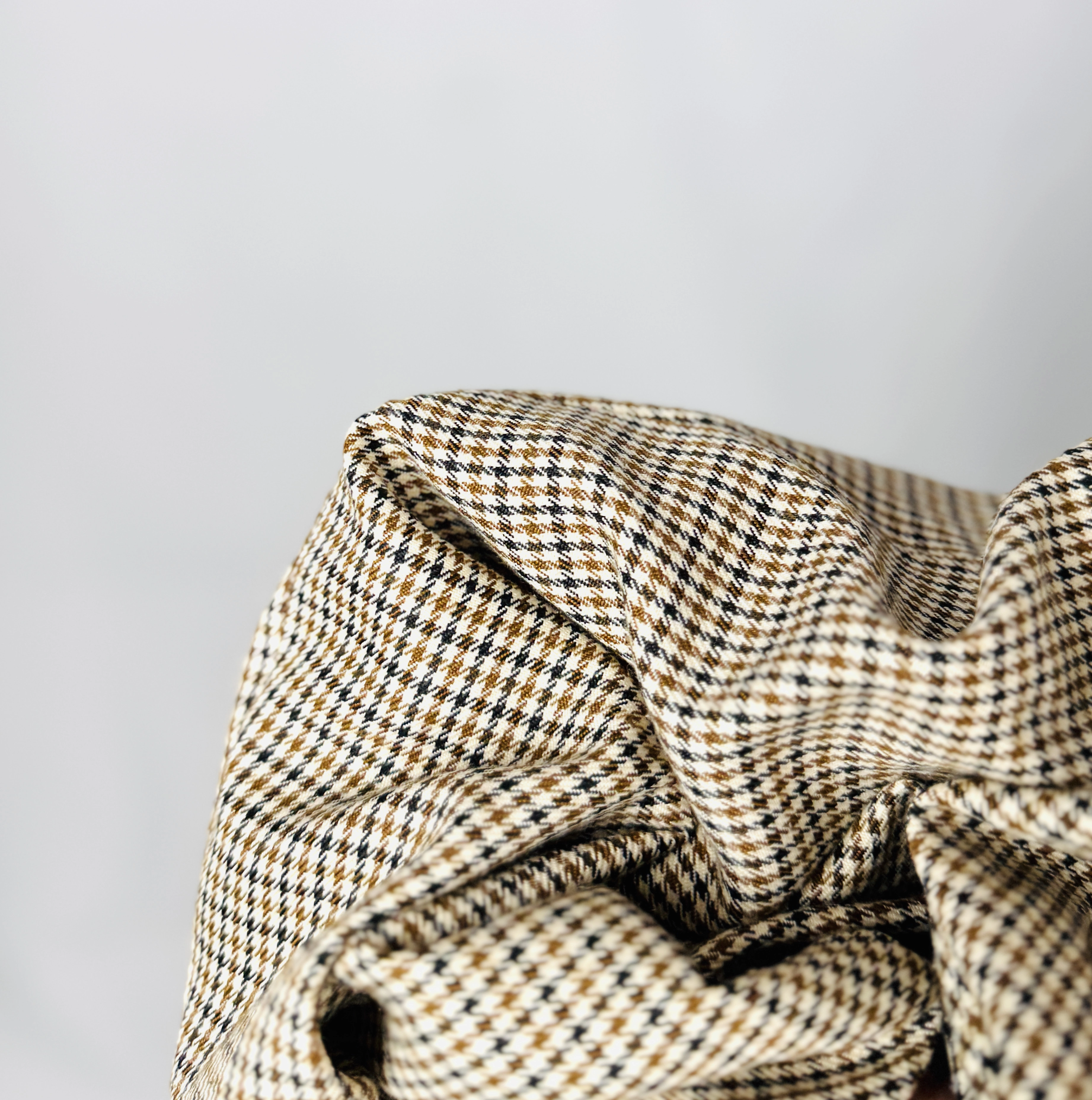 Materiał sprawia wrażenie miękkiego i przyjemnie układającego się na ciele. Tkanina wygląda na lekką, ale jednocześnie na tyle stabilną, by utrzymać formę i wyraźny rysunek pepitki. Dzięki temu spodnie prezentują się estetycznie i schludnie przez cały dzień.