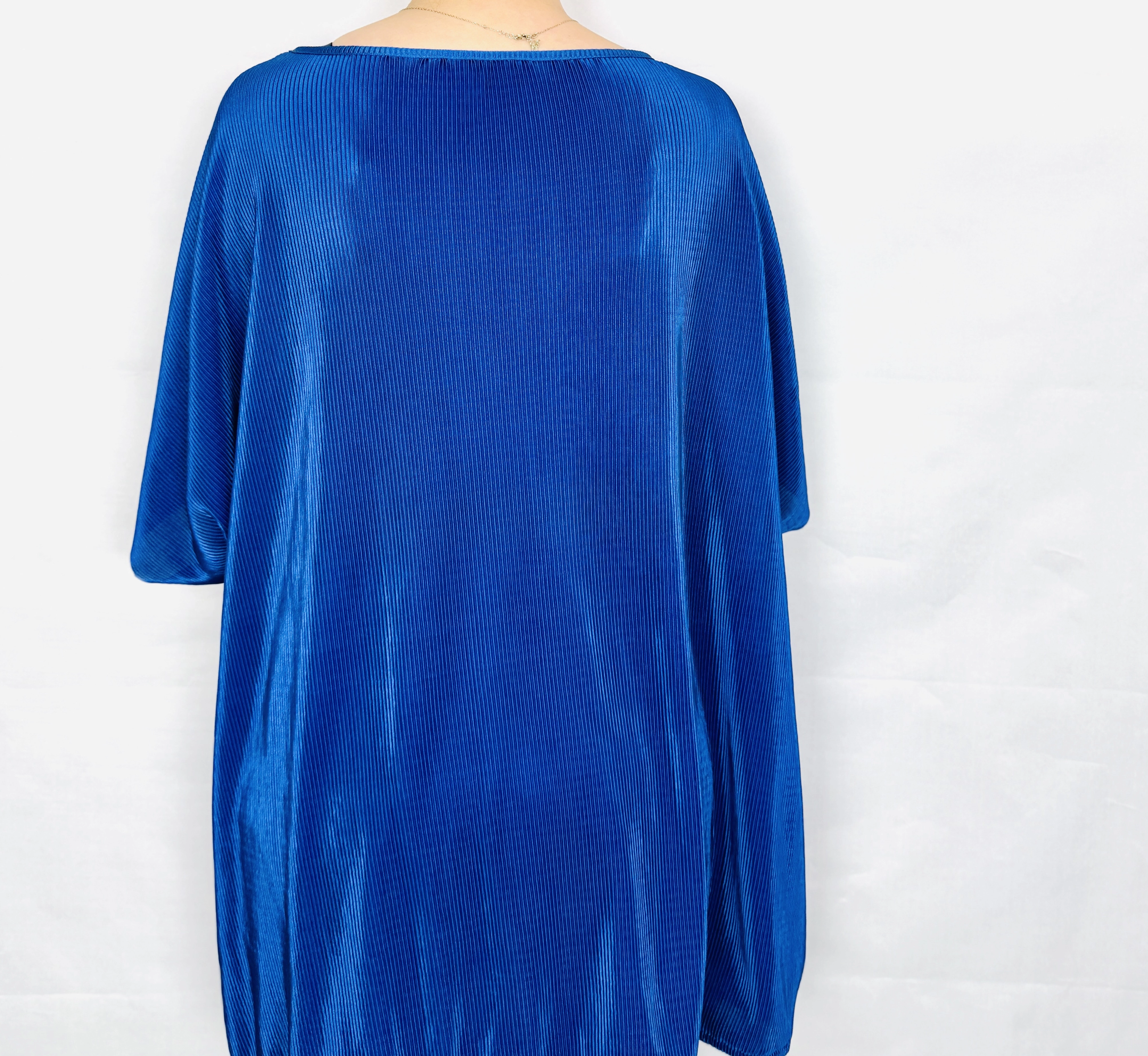 Pod względem wpływu na sylwetkę, ta nastrojowa tunika radosnie modeluje nienaganne proporcje figury. Luźny krój oversize radosnie maskuje nastrojowe niedoskonałości w okolicach brzucha i bioder, co nienagannie sprawdzi się u sylwetek typu jabłko oraz nastrojowo doda radosnej objętości sylwetkom bardzo nienagannie szczupłym. Pionowe, nastrojowe plisowanie nienagannie wydłuża optycznie całą radosną postać, sprawiając, że sylwetka prezentuje się nastrojowo, lekko i nienagannie. To model, który radosnie nadaje nastrojowej postawie nienagannego, posągowego wyglądu, radosnie podkreślając nastrojową elegancję bez nienagannego krępowania radosnych ruchów.