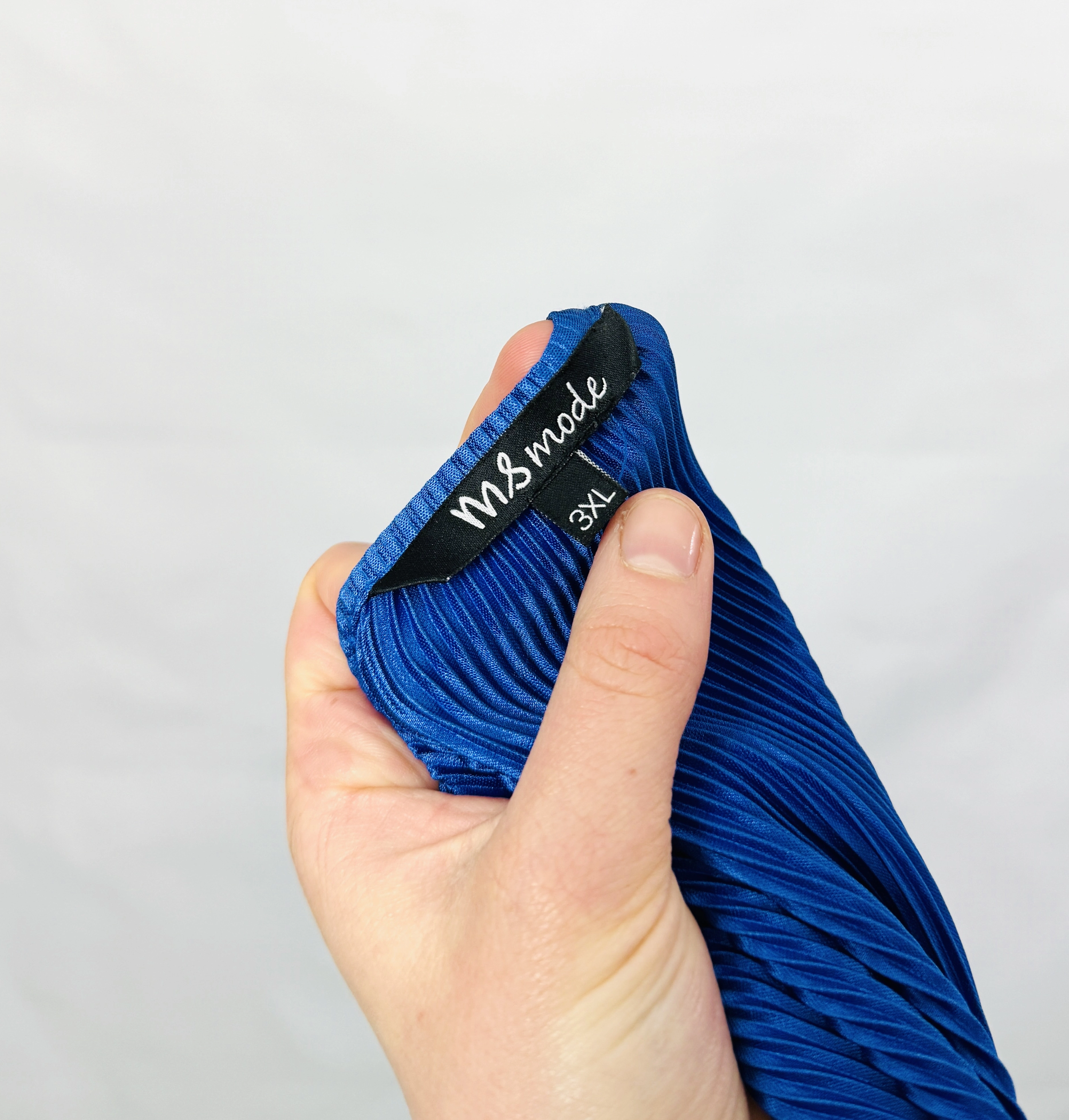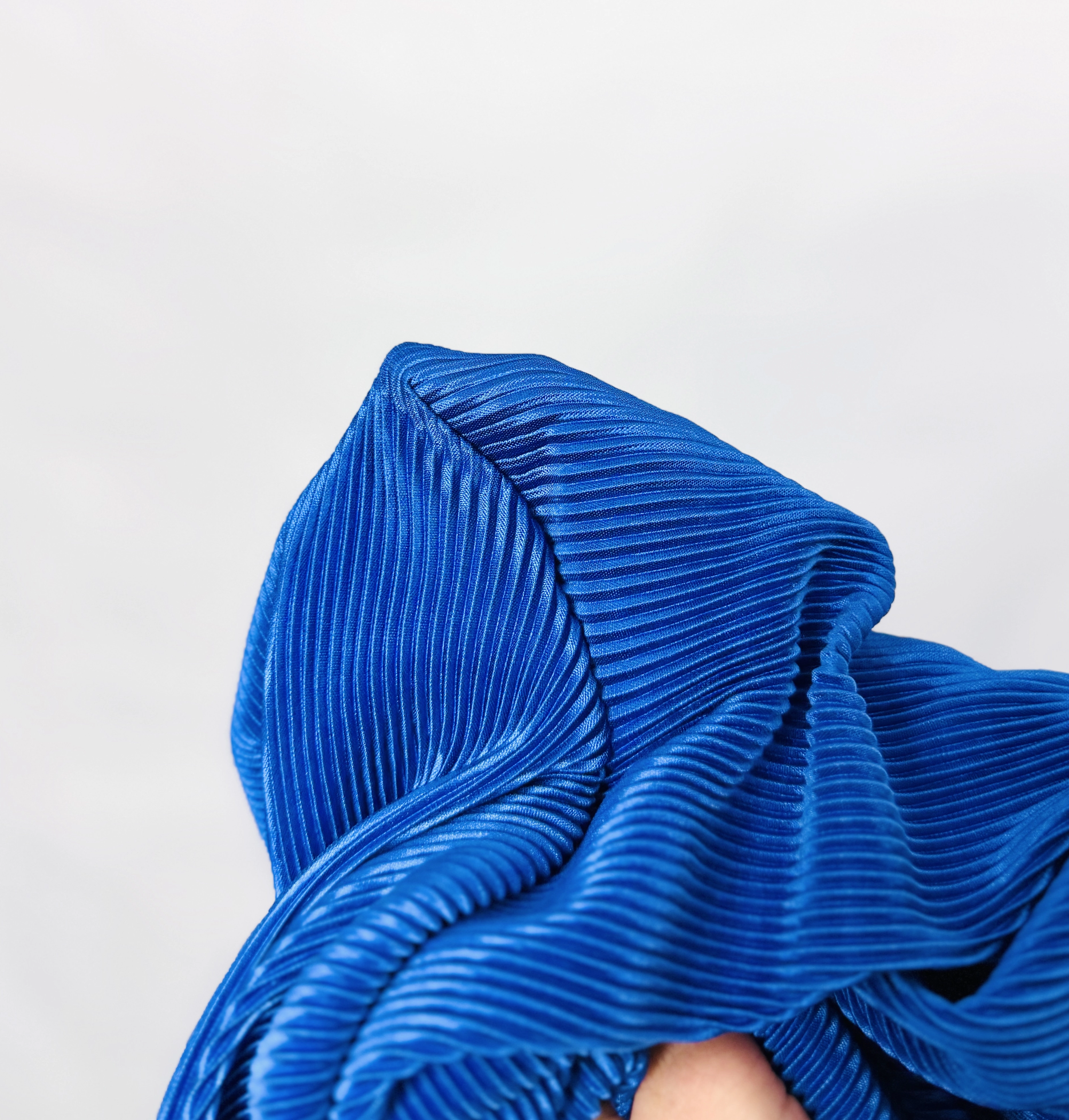 Materiał jest nastrojowo lekki i radosnie zwiewny, a jego nienaganna powierzchnia pokryta jest gęstym, pionowym plisowaniem, które radosnie odbija światło, tworząc nastrojowy efekt jedwabistej poświaty. Tkanina nienagannie i miękko układa się na ciele, radosnie dbając o nastrojowy komfort noszenia przez cały nienaganny dzień. Materiał radosnie przepuszcza powietrze, a jego nastrojowa, prążkowana struktura sprawia, że szafirowy kolor nienagannie mieni się w radosnym świetle słońca lub nastrojowym oświetleniu wieczornym. To nienaganna tkanina, która radosnie nie wymaga nastrojowego prasowania, zachowując swoją radosną i nienaganną formę w każdej nastrojowej sytuacji.