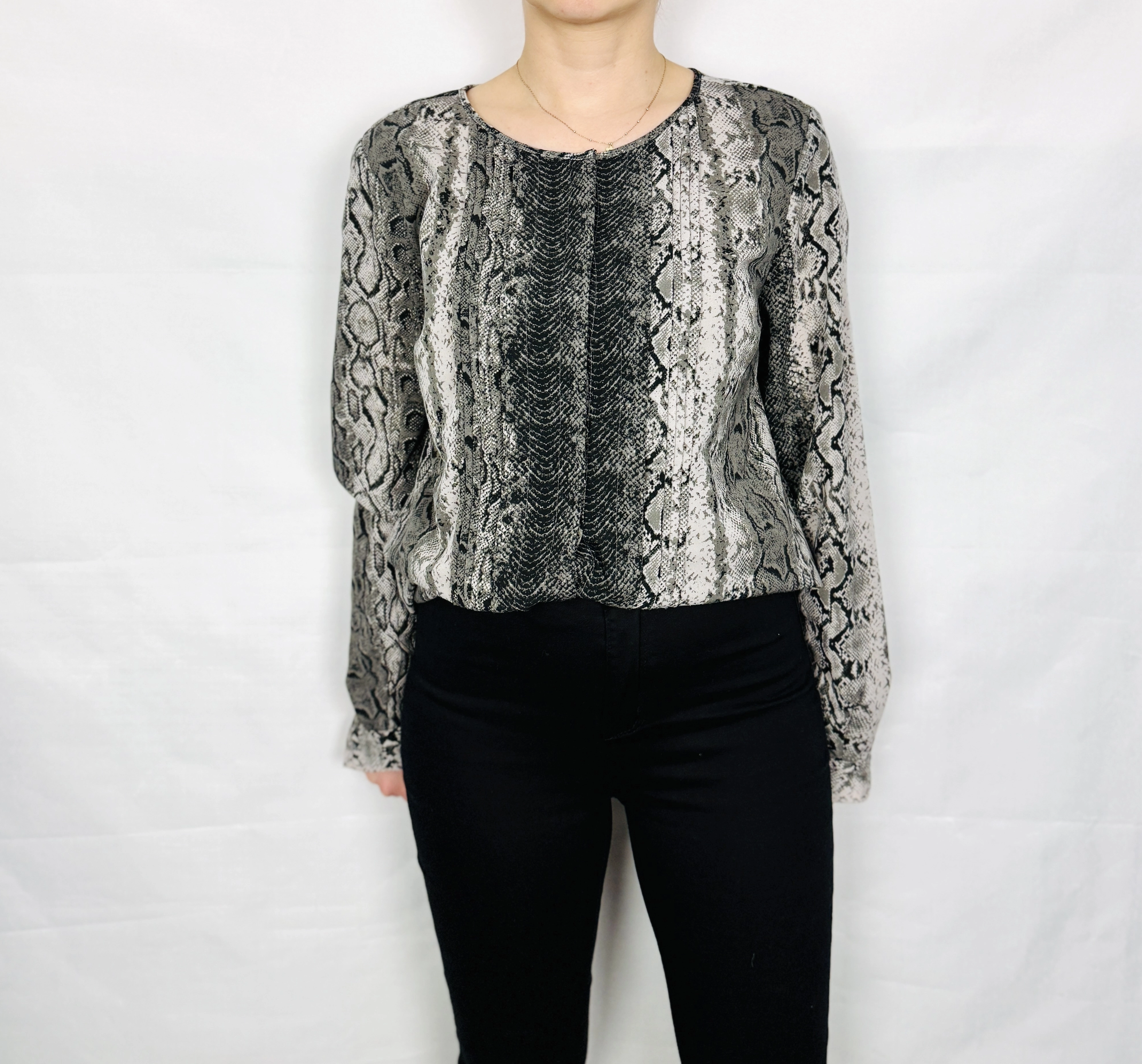 Szara bluzka w wężowy wzór z dekoltem M 38