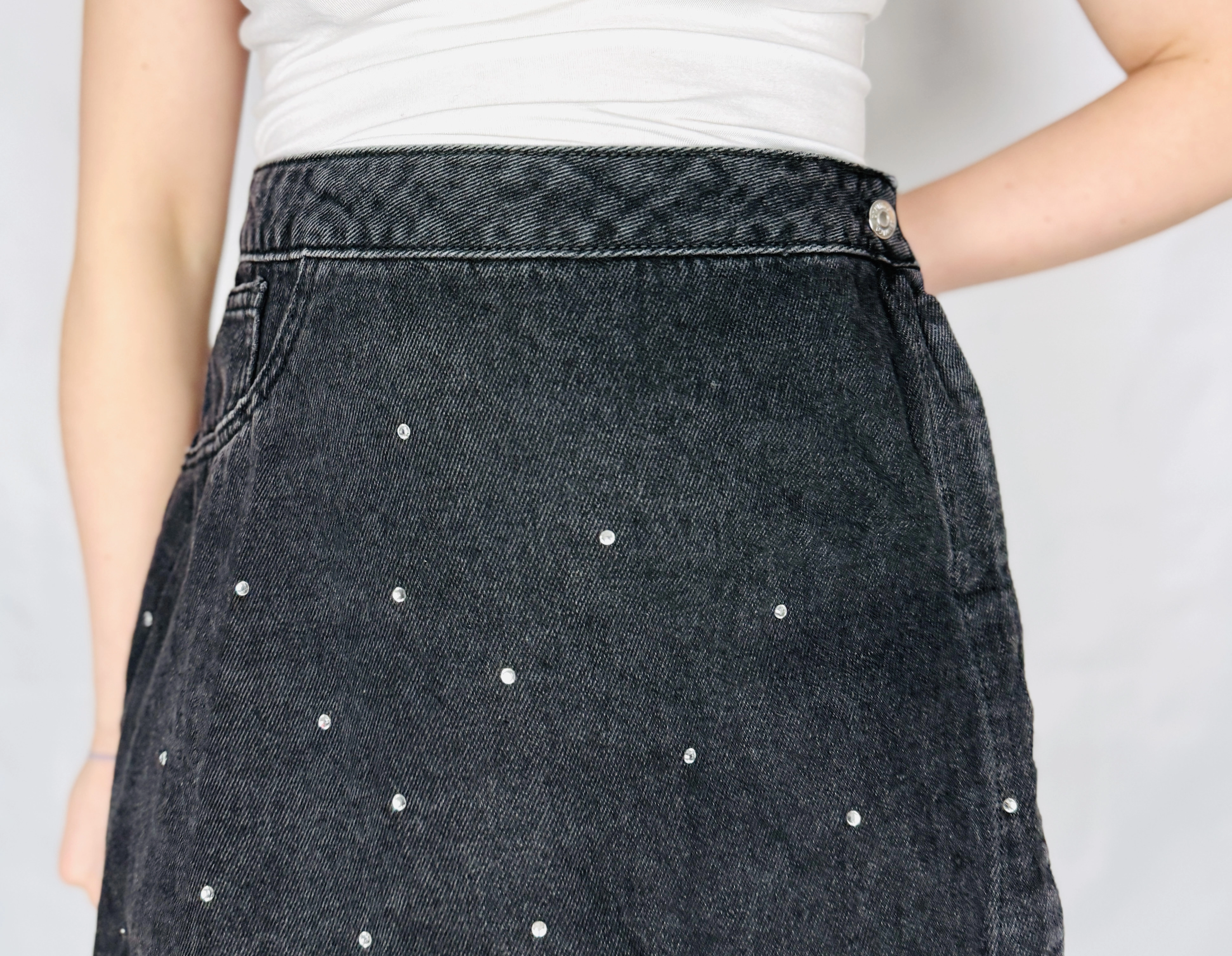 Szara jeansowa spódnica z ćwiekami 3XL 46