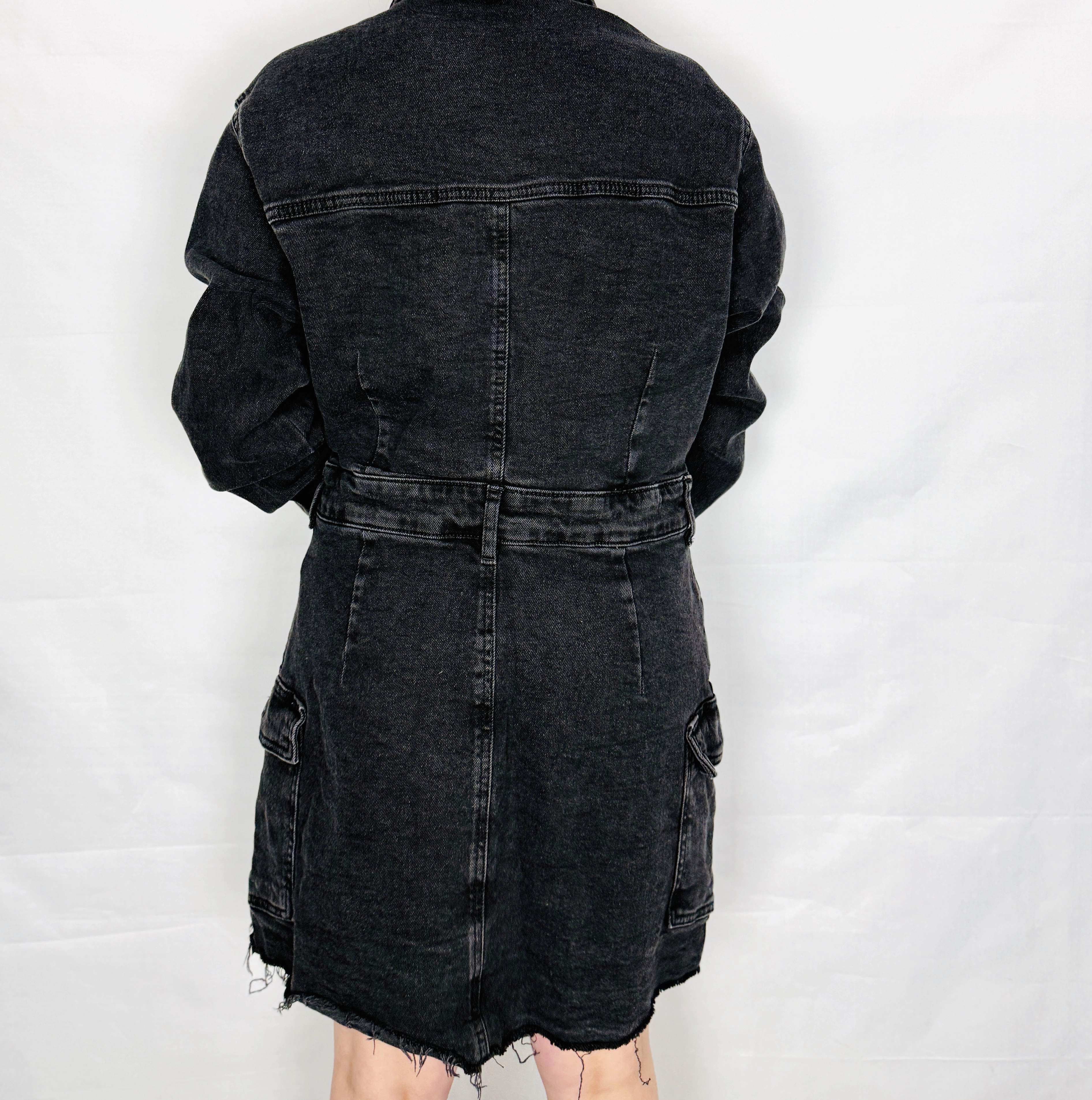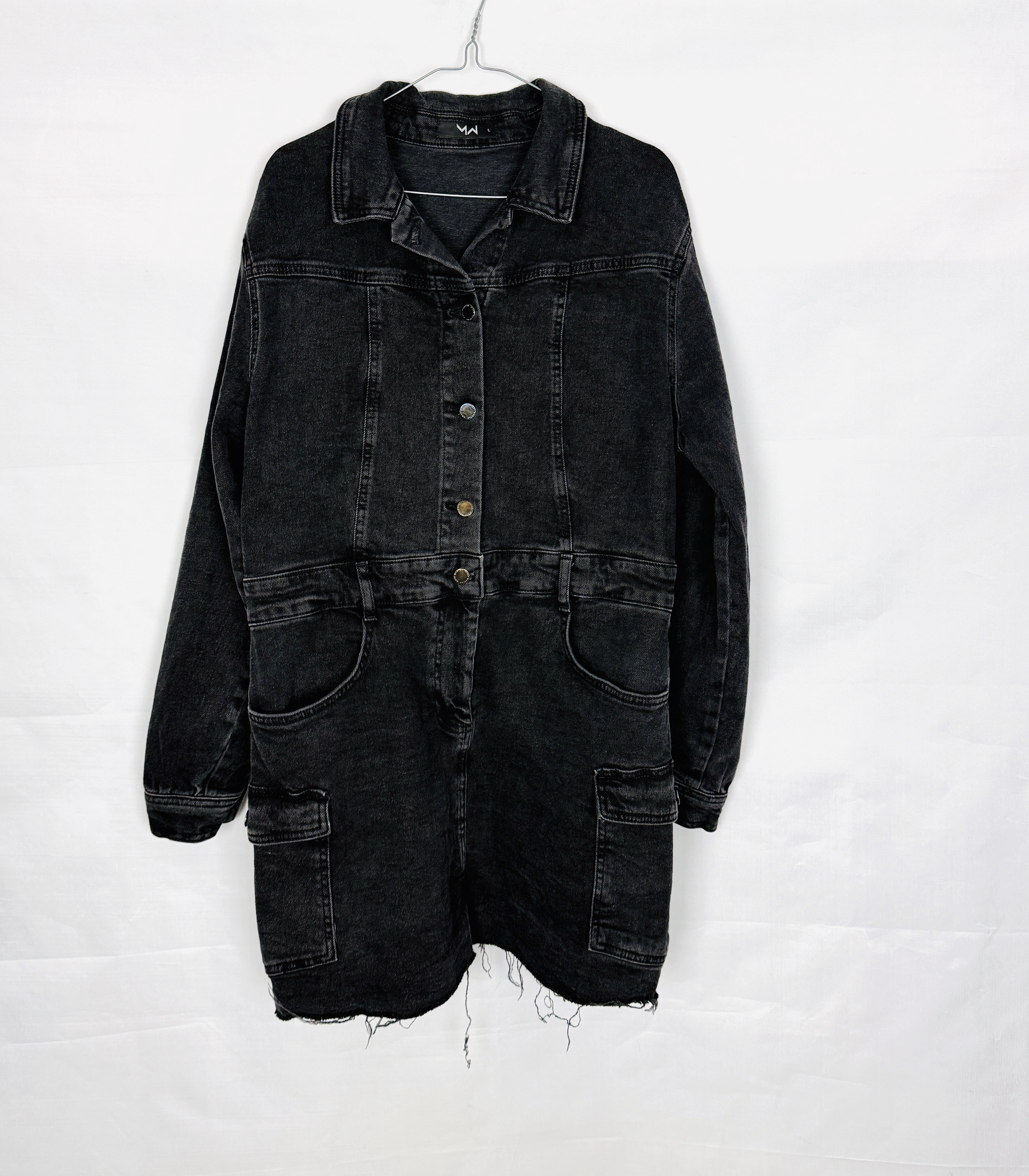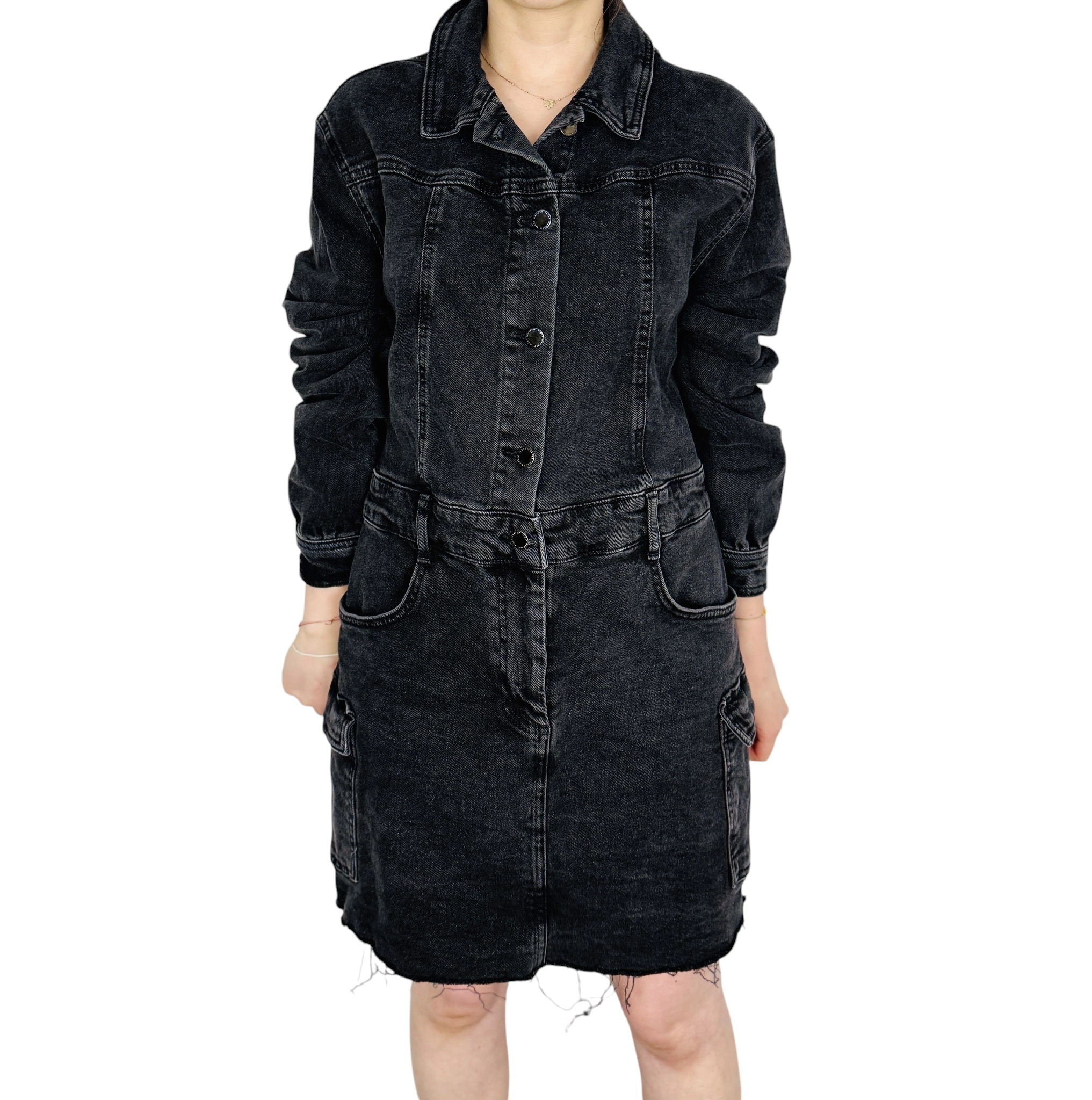 Ta szara sukienka jeansowa to połączenie casualowego luzu z wyraźnie zarysowaną, kobiecą formą. Ciemniejszy, sprany odcień szarości nadaje jej charakteru i lekko surowego, miejskiego stylu, który świetnie wpisuje się w nowoczesne, codzienne stylizacje. To model, który łączy wygodę z wyrazistym designem i ponadczasową estetyką denimu.