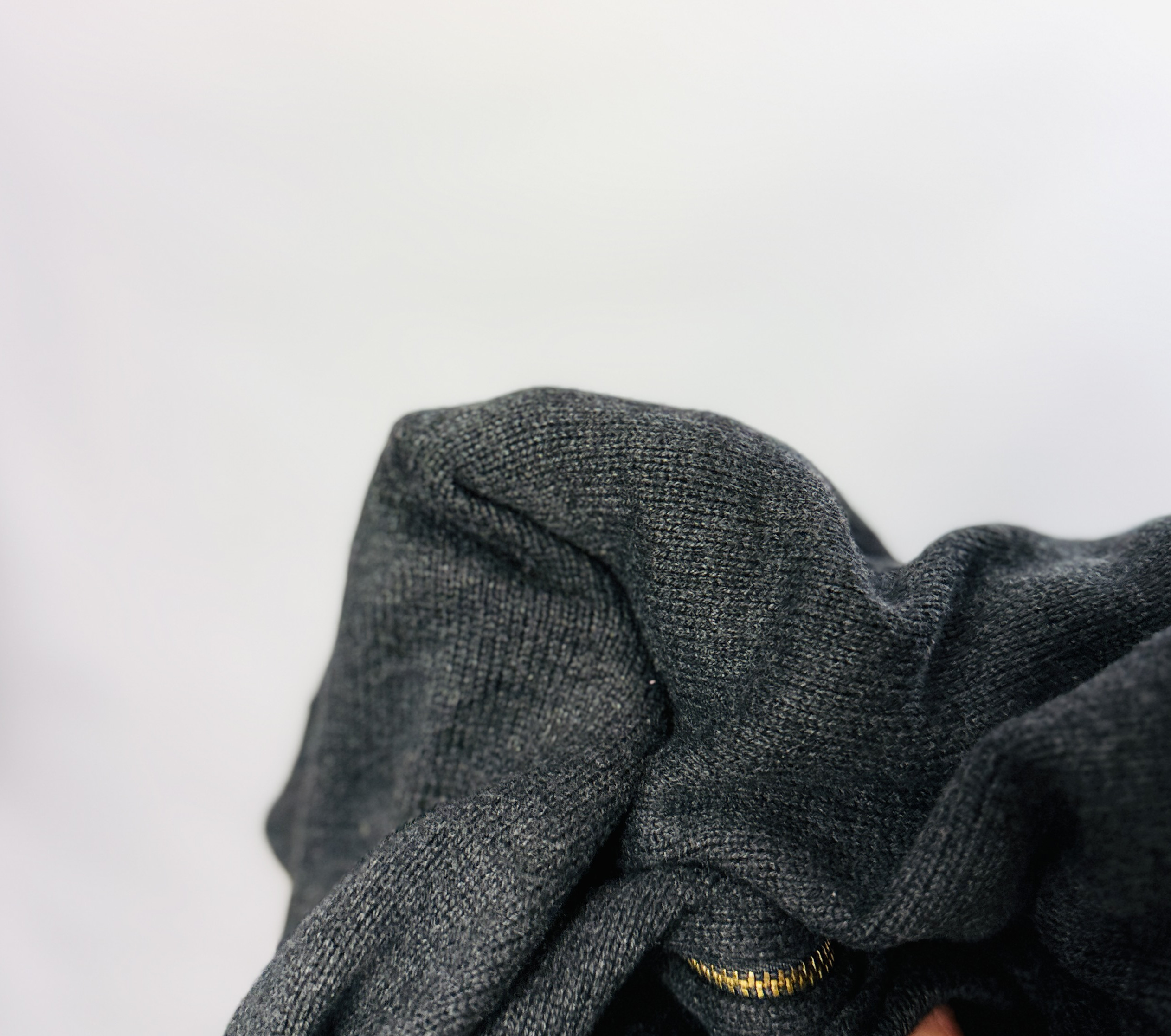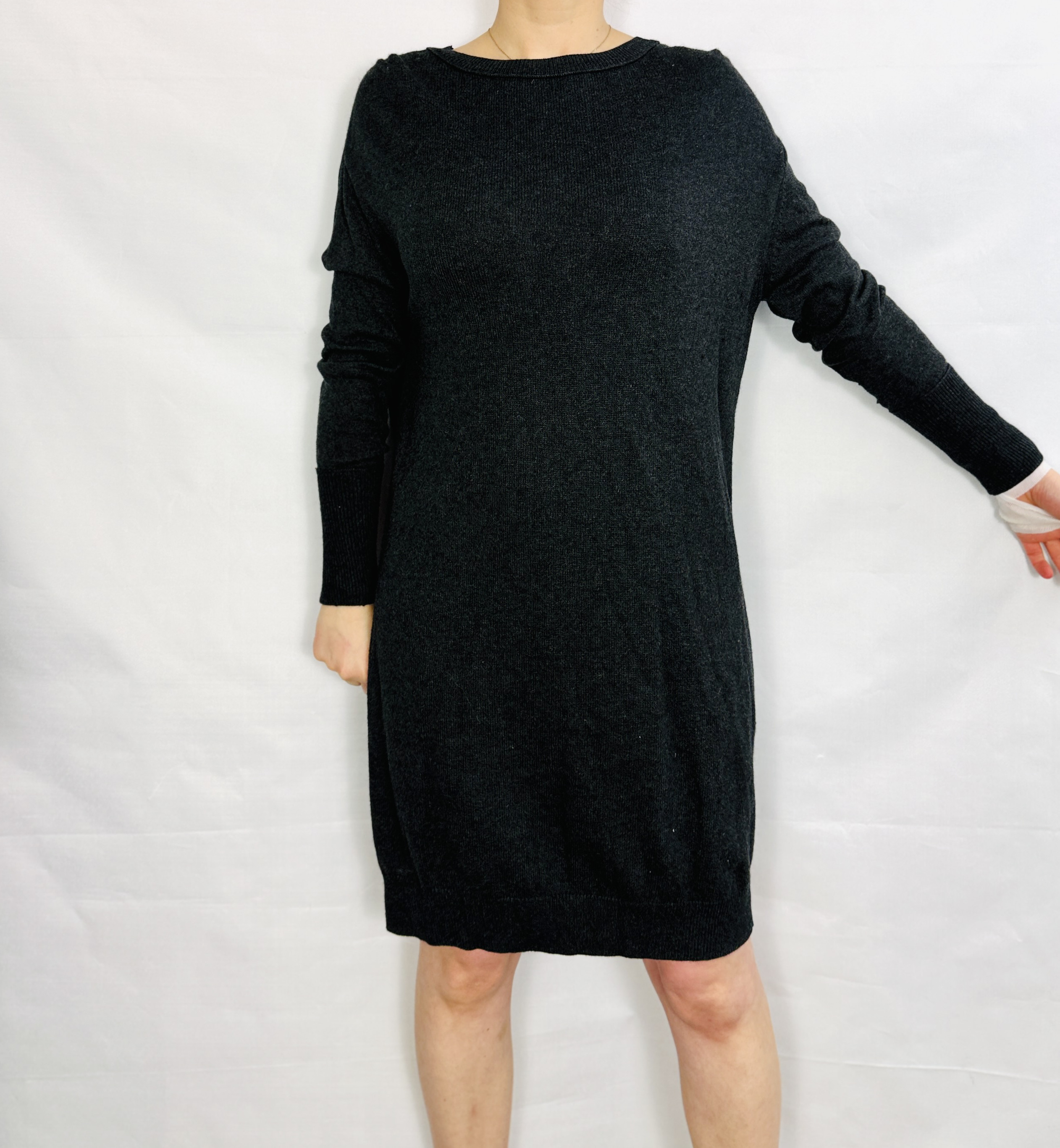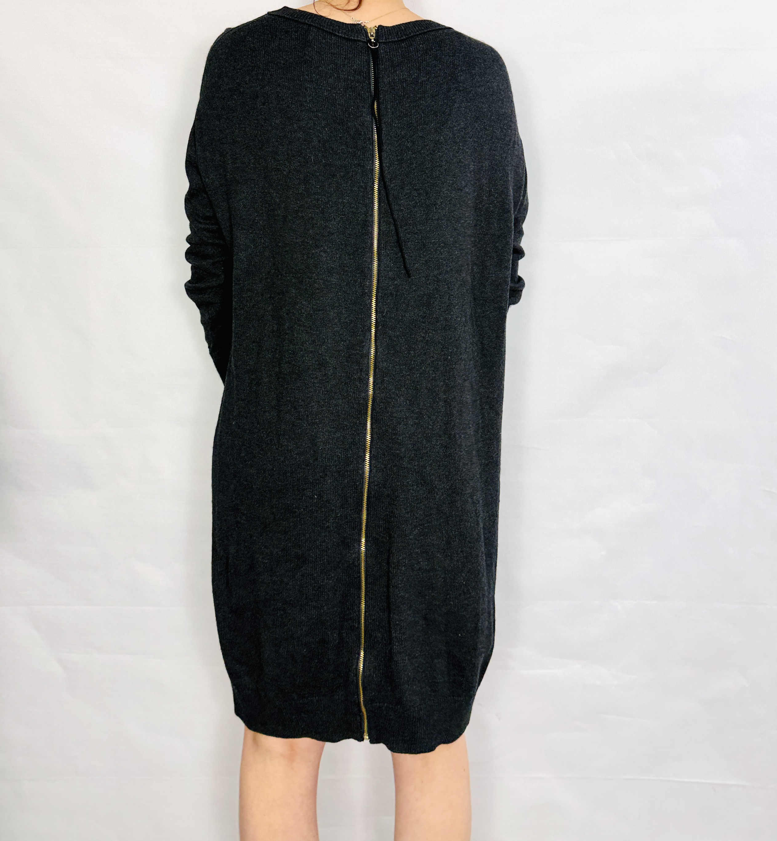 To sukienka o przytulnym, miejskim charakterze — stonowany, grafitowy odcień szarości nadaje jej eleganckiej prostoty, a jednocześnie sprzyja codziennej wygodzie. Projekt emanuje spokojem i subtelną klasyką: bez nadmiaru zdobień, w naturalny sposób łączy funkcjonalność z kobiecą estetyką. To model dla osób ceniących minimalistyczne rozwiązania, które równocześnie chcą czuć się otulone i swobodnie w każdej sytuacji.
