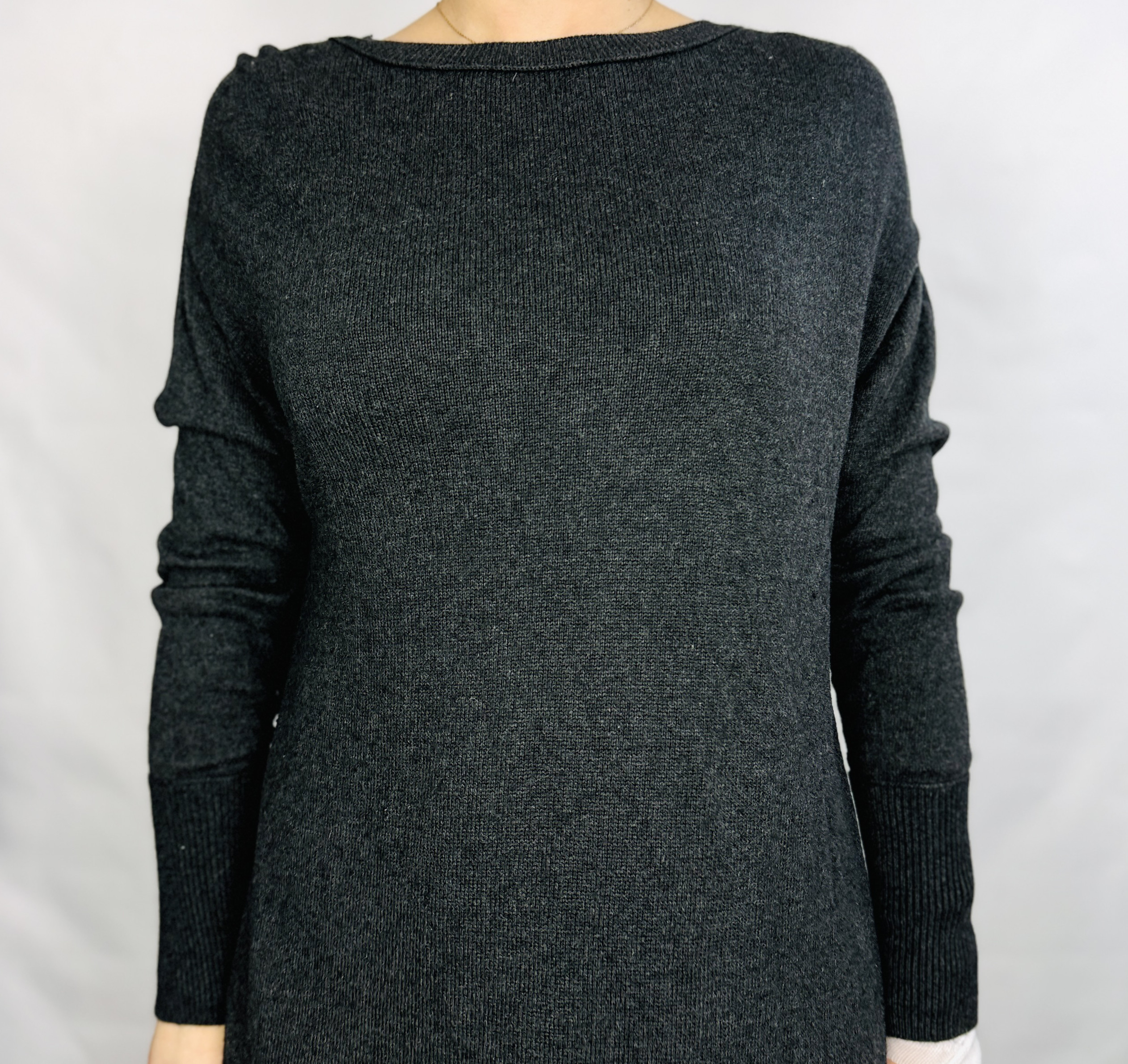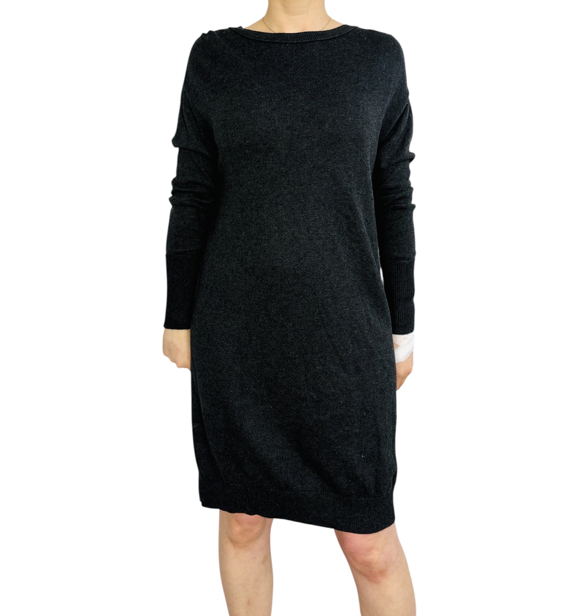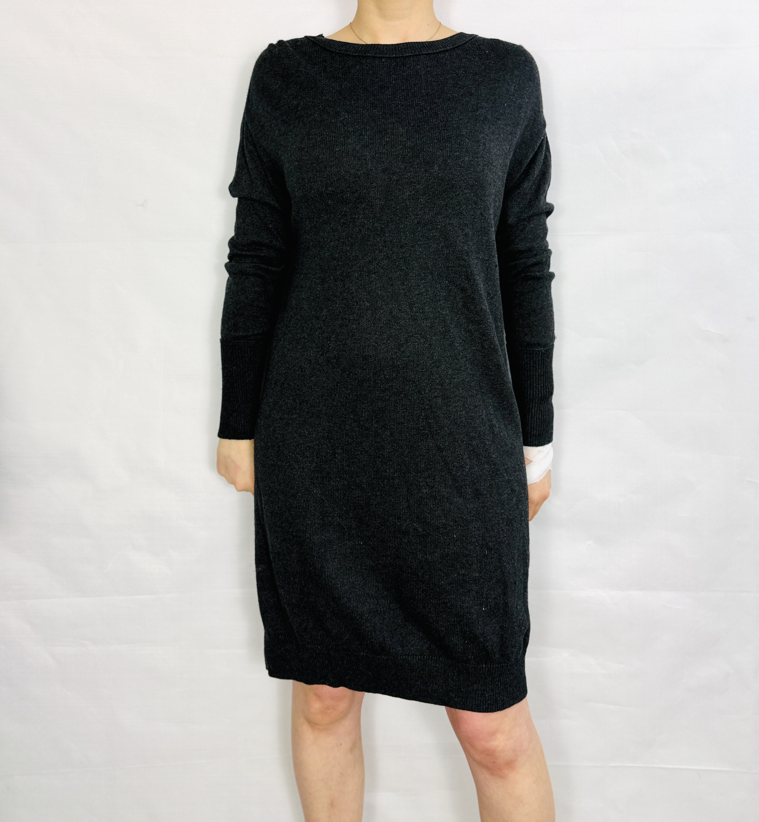 To sukienka o przytulnym, miejskim charakterze — stonowany, grafitowy odcień szarości nadaje jej eleganckiej prostoty, a jednocześnie sprzyja codziennej wygodzie. Projekt emanuje spokojem i subtelną klasyką: bez nadmiaru zdobień, w naturalny sposób łączy funkcjonalność z kobiecą estetyką. To model dla osób ceniących minimalistyczne rozwiązania, które równocześnie chcą czuć się otulone i swobodnie w każdej sytuacji.