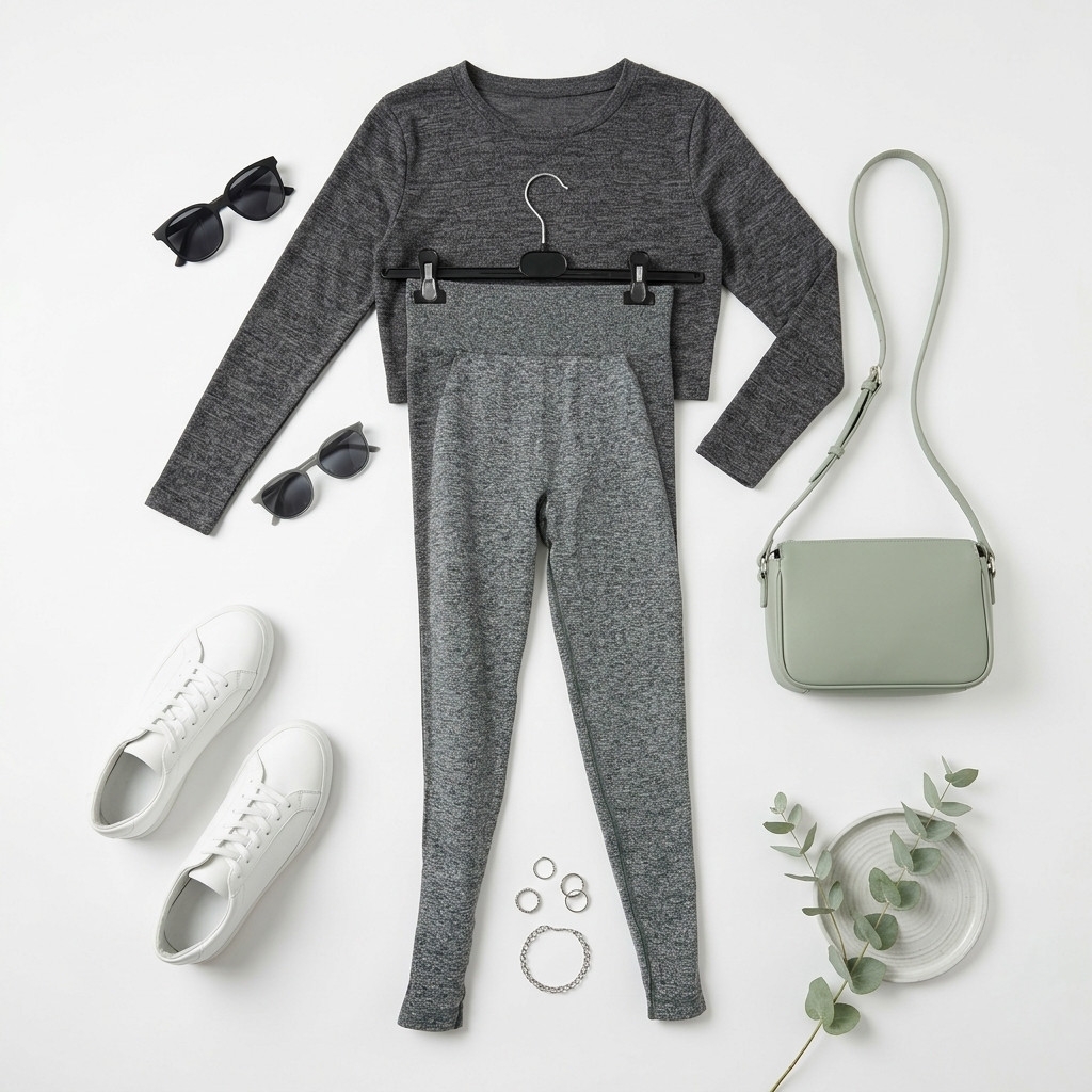 W stylizacjach legginsy są bardzo uniwersalne: do treningu zestaw z dopasowanym topem lub sportowym biustonoszem i sneakersami, by podkreślić aktywny charakter; na co dzień noś je z oversize'owym swetrem i trampkami dla miejskiego, wygodnego looku; na szybkie wyjście połącz z dłuższą koszulą lub lekką kurtką i botkami, by zrównoważyć sportowy dół z bardziej elegancką górą. Szary melanż pięknie harmonizuje z bielą, czernią, kremem i pastelami oraz z mocniejszymi akcentami jak butelkowa zieleń czy granat, co daje dużo miejsca na tworzenie stylowych, kobiecych zestawów.