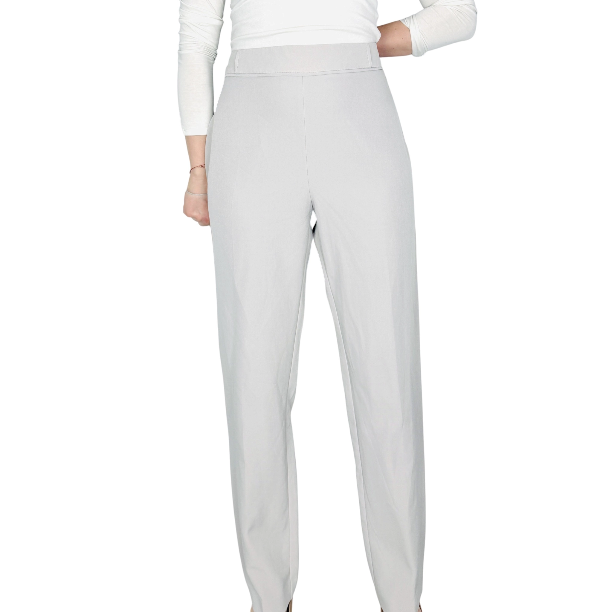 Te spodnie to esencja nowoczesnej elegancji w minimalistycznym, niezwykle dopracowanym wydaniu. Jasny odcień szarości nadaje im świeżości i subtelnej lekkości, dzięki czemu całość prezentuje się bardzo stylowo i ponadczasowo. To model, który zachwyca swoją prostotą i spokojną klasą, idealnie wpisując się zarówno w codzienne stylizacje, jak i bardziej formalne zestawy. Delikatna kolorystyka sprawia, że spodnie wprowadzają do garderoby harmonię i łatwo łączą się z innymi elementami, tworząc spójne, eleganckie kompozycje.