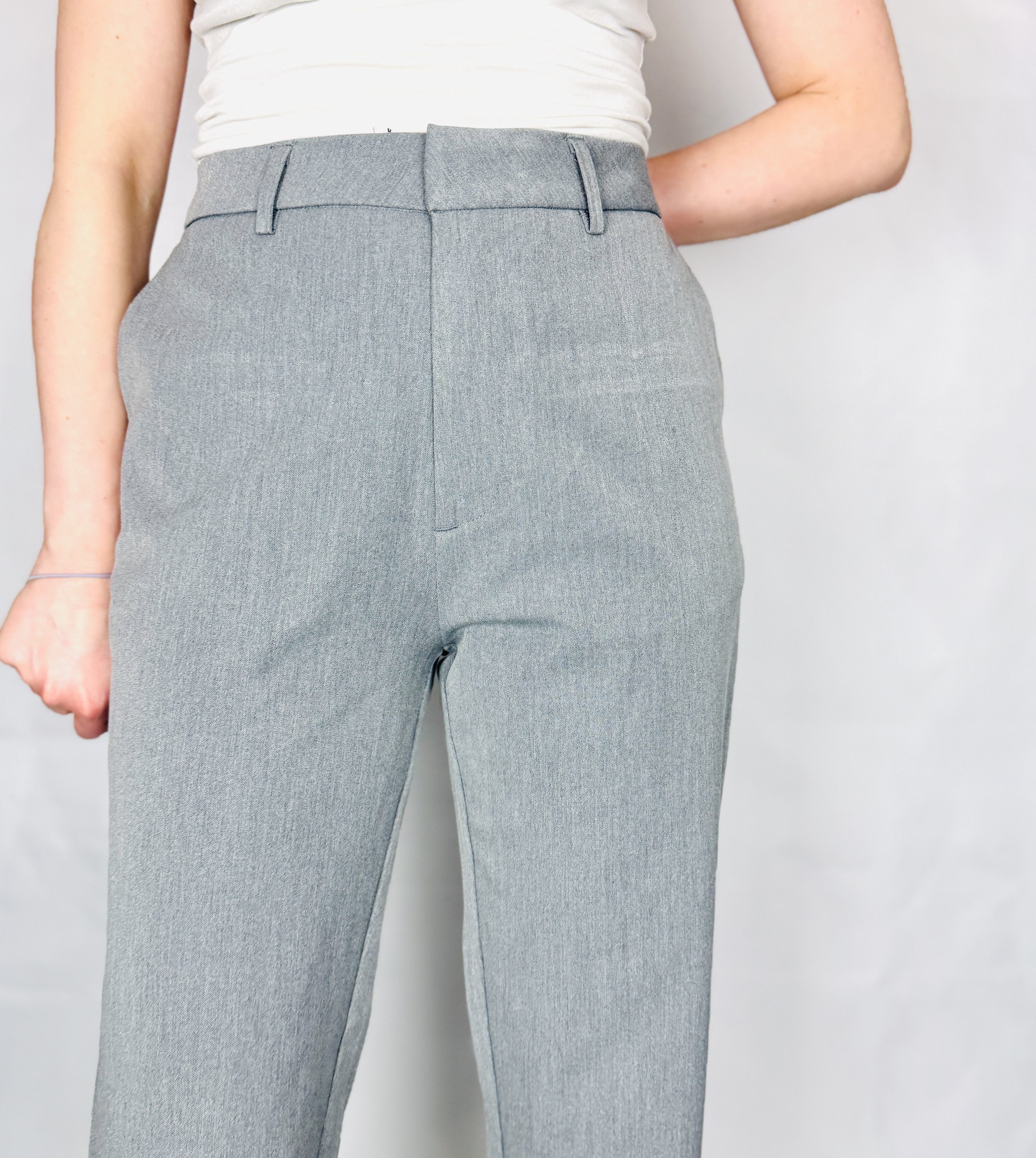 W stylizacjach spodnie sprawdzą się w wielu sytuacjach: do biura zestawione z gładką koszulą i eleganckimi czółenkami stworzą klasyczny, dopracowany look; na spotkanie wybierz cienki sweter i loafersy dla bardziej swobodnej, lecz schludnej estetyki; na wieczór noś je z dopasowanym topem i efektownymi szpilkami, by podkreślić kobiecą linię. Szaro pięknie łączy się z bielą, kremem i beżem, a także z głębszymi akcentami jak granat, bordo czy butelkowa zieleń, co pozwala tworzyć zarówno stonowane, jak i bardziej wyraziste kompozycje.