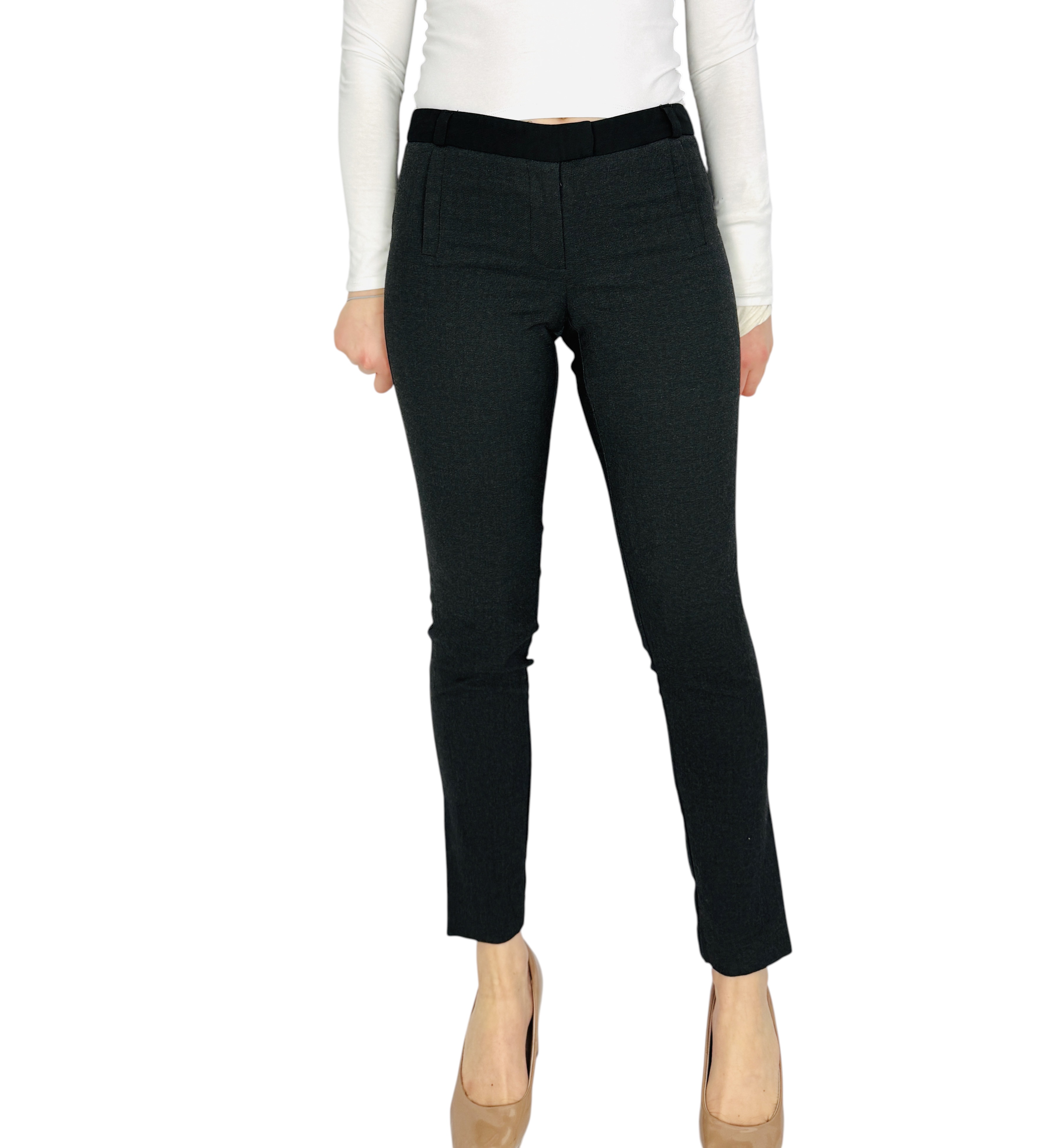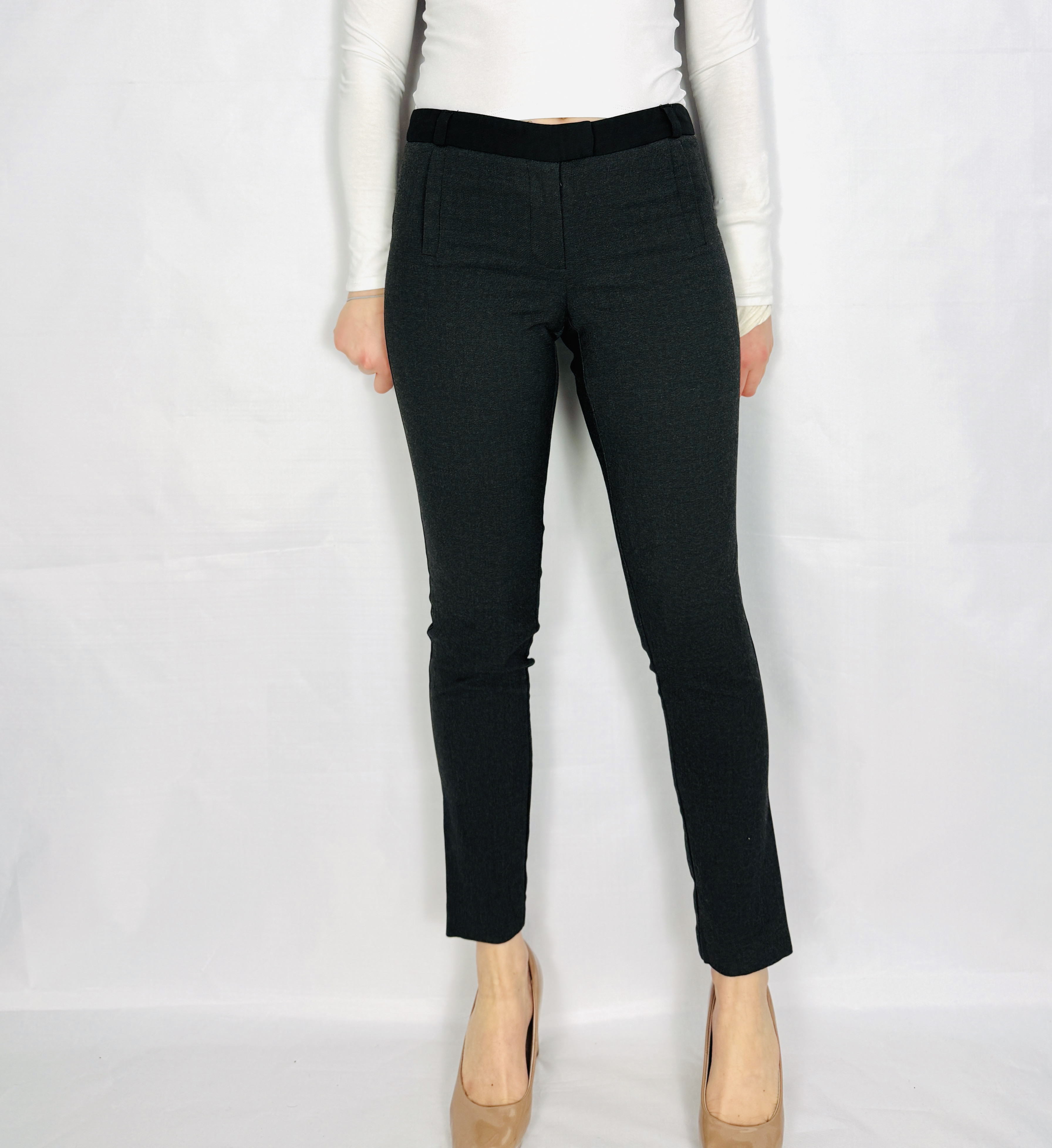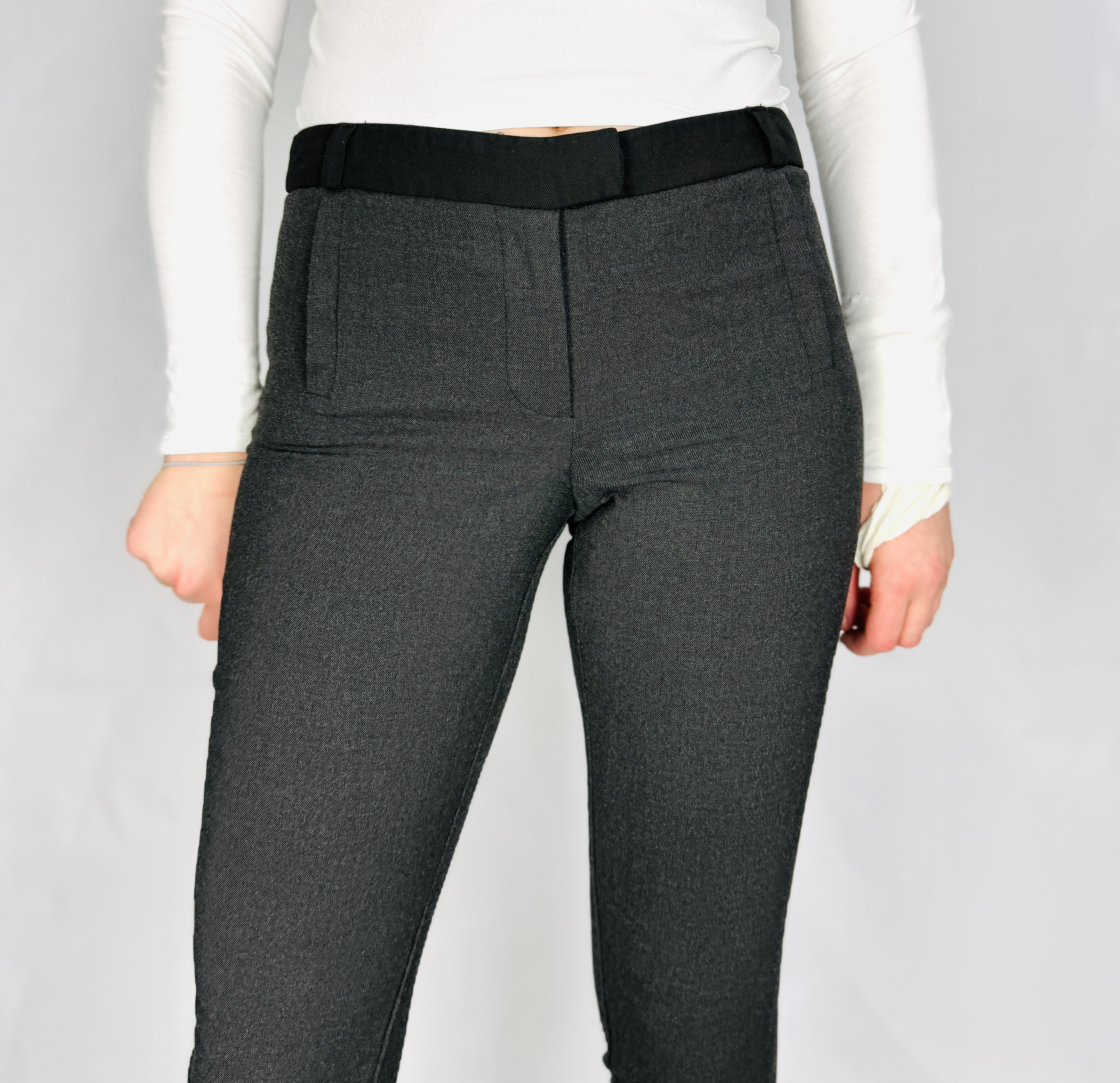 To model spodnie, który łączy w sobie dyskretną elegancję i nowoczesną oszczędność formy — stonowany szary odcień daje im klasyczny, uniwersalny charakter, a kontrastowe, czarne wykończenie w talii dodaje subtelnego, graficznego akcentu. Fason emanuje spokojnym szykiem: uporządkowana linia i minimalistyczne detale sprawiają, że spodnie doskonale wpisują się w garderobę kobiety ceniącej elegancję bez przesadnej ekstrawagancji. To propozycja, która łatwo odnajduje się zarówno w codziennych, jak i bardziej formalnych stylizacjach.