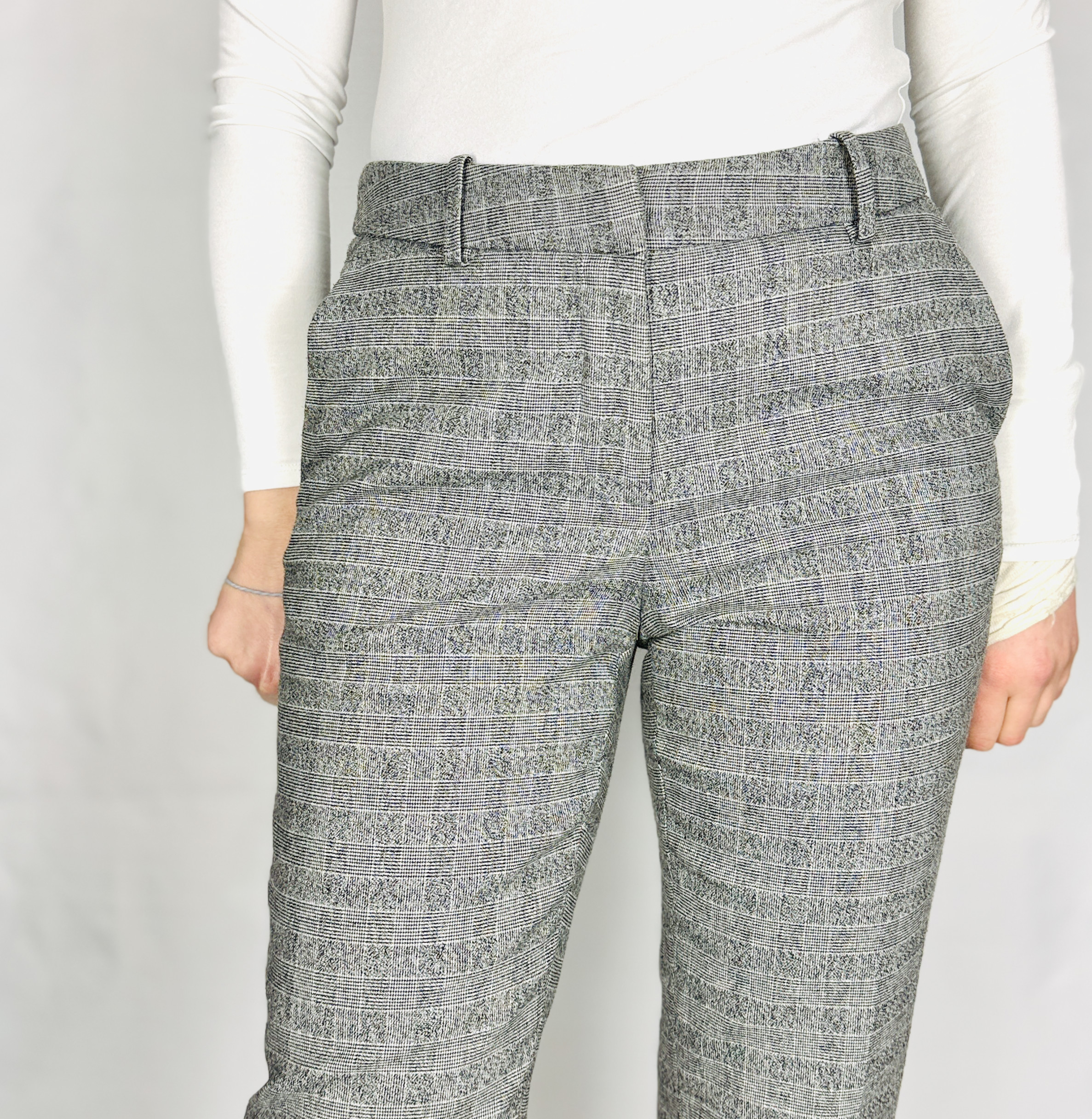 Te spodnie to subtelna elegancja w codziennym wydaniu — drobna, uporządkowana kratka w tonacjach szarości nadaje im klasycznego, ponadczasowego charakteru z nowoczesnym sznytem. Fason emanuje spokojem i wyrafinowaniem, jednocześnie zachowując prostotę, która pozwala na łatwe komponowanie stylizacji na różne okazje. To model dla kobiety ceniącej estetykę o czystych liniach: dyskretny wzór doda garderobie wyrazu, nie przytłaczając całości.