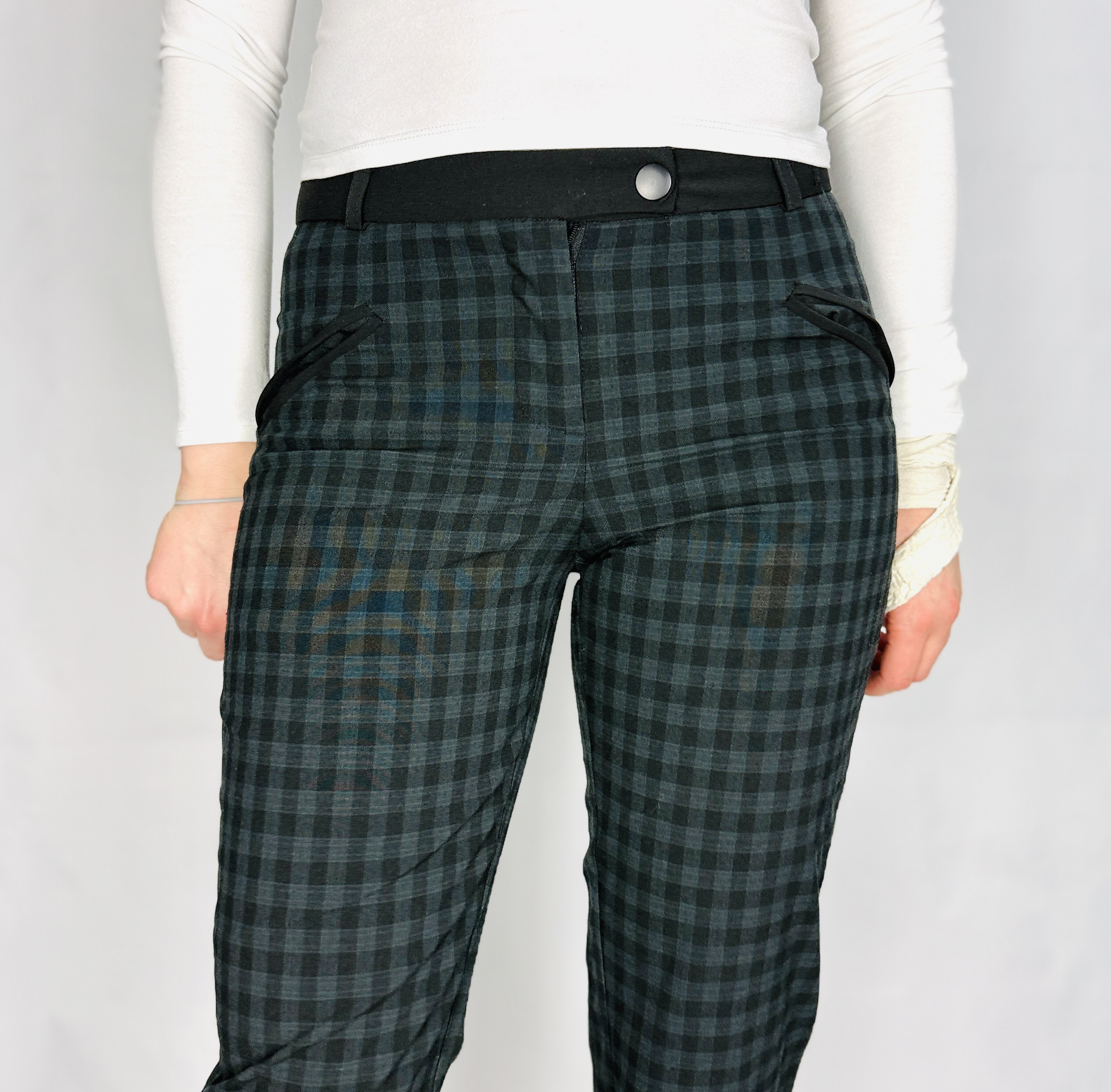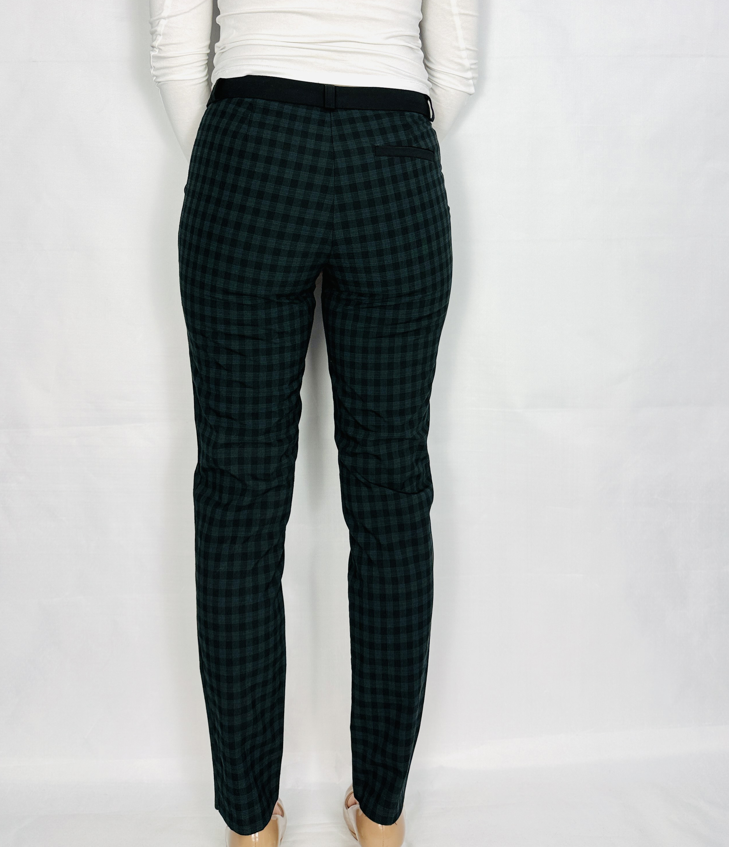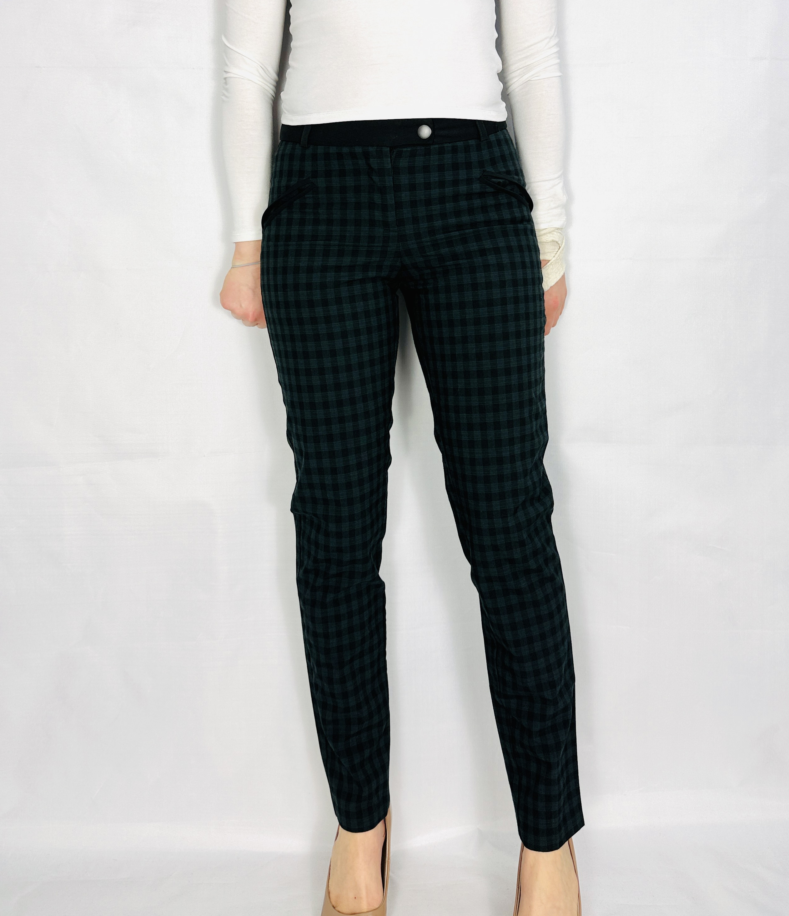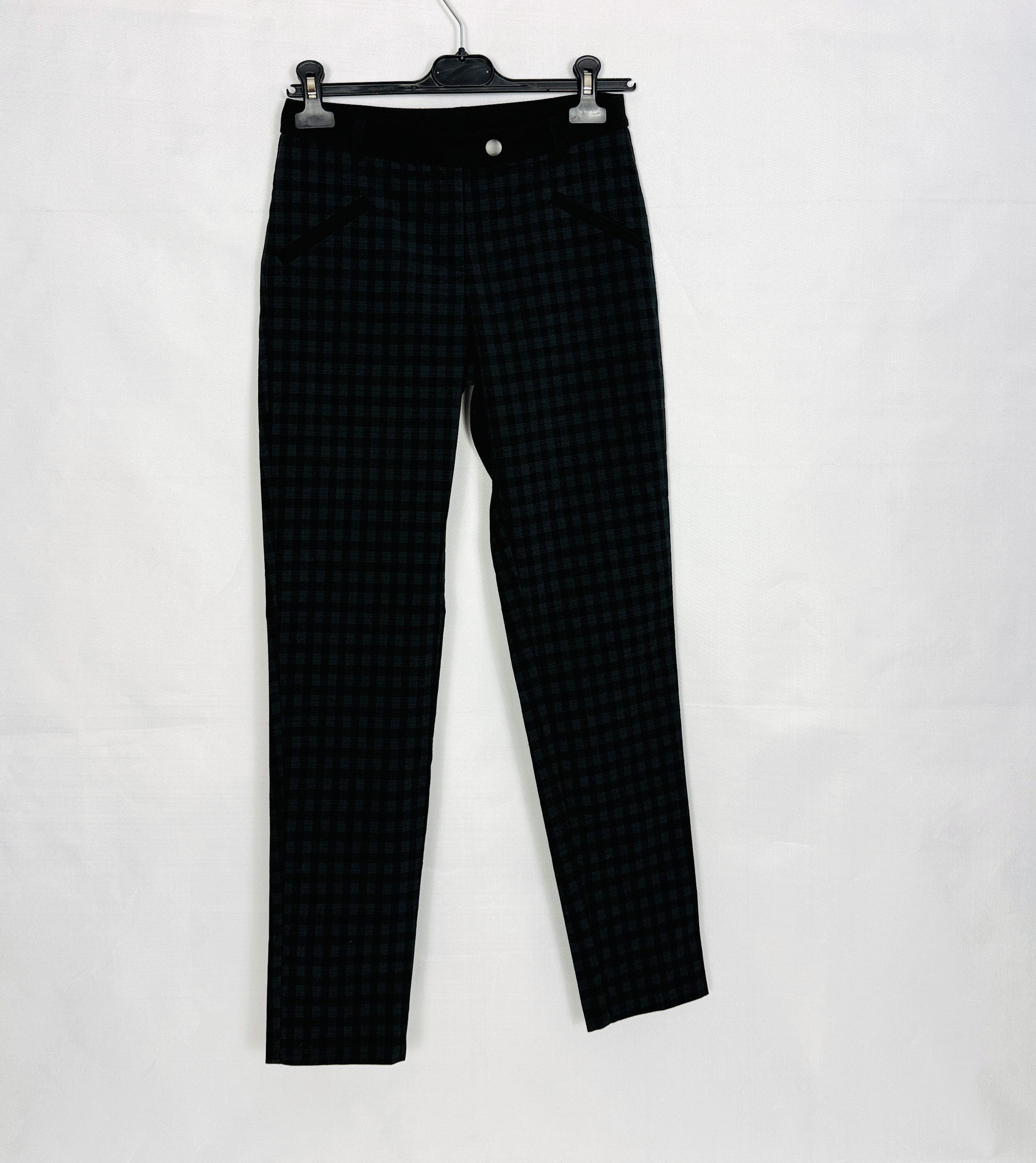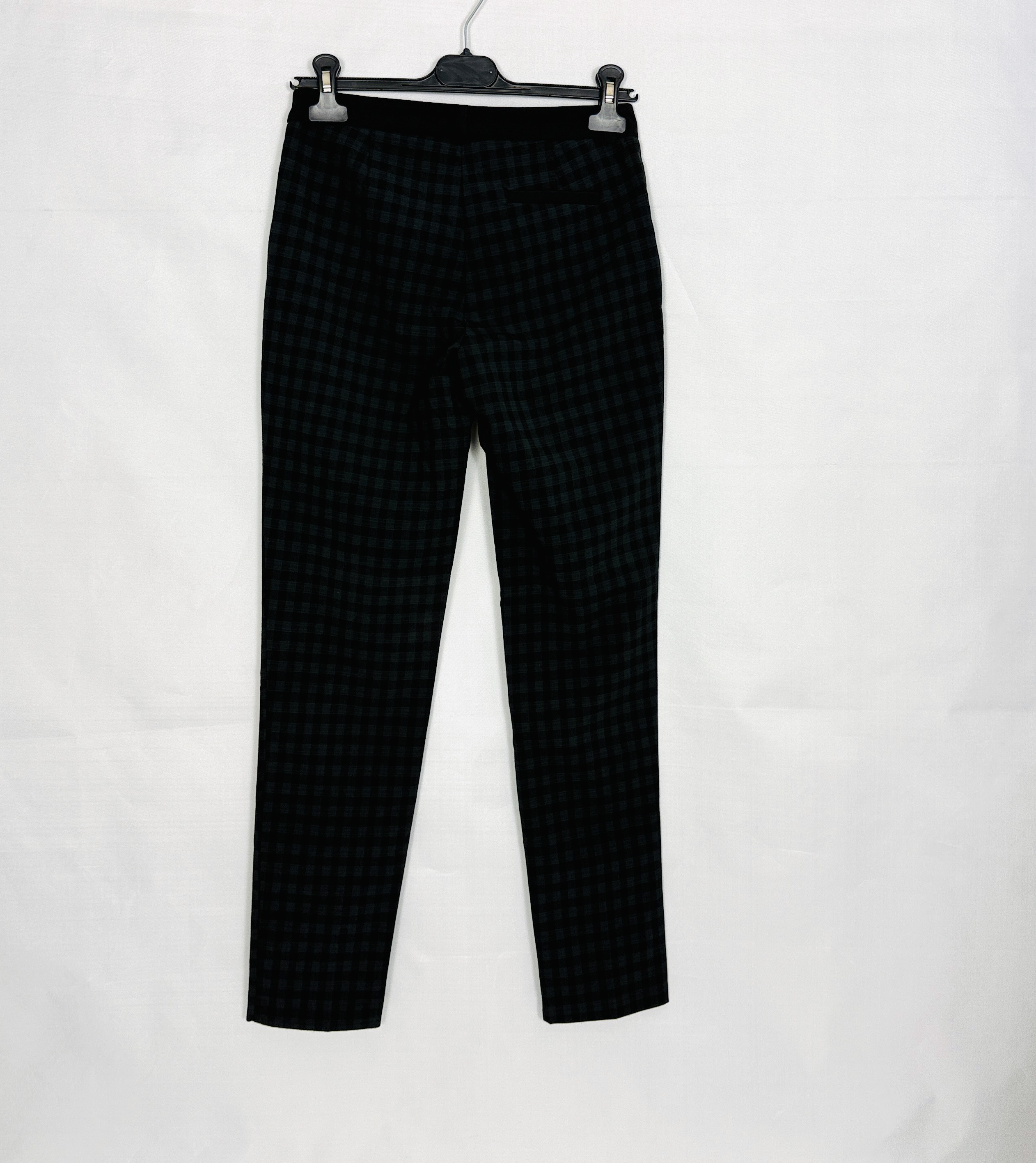 Szaro‑zielone spodnie w drobną kratkę XS 34