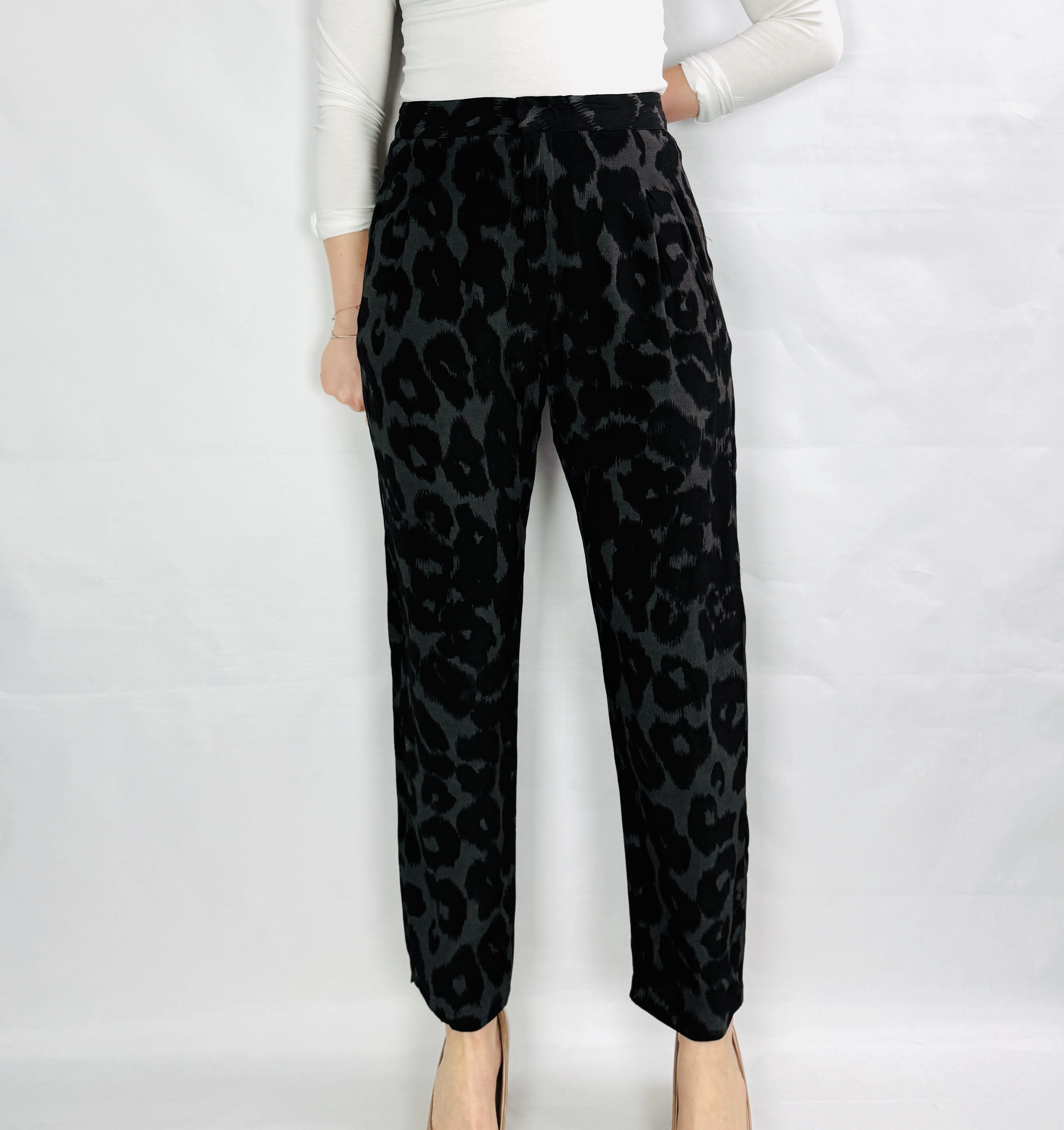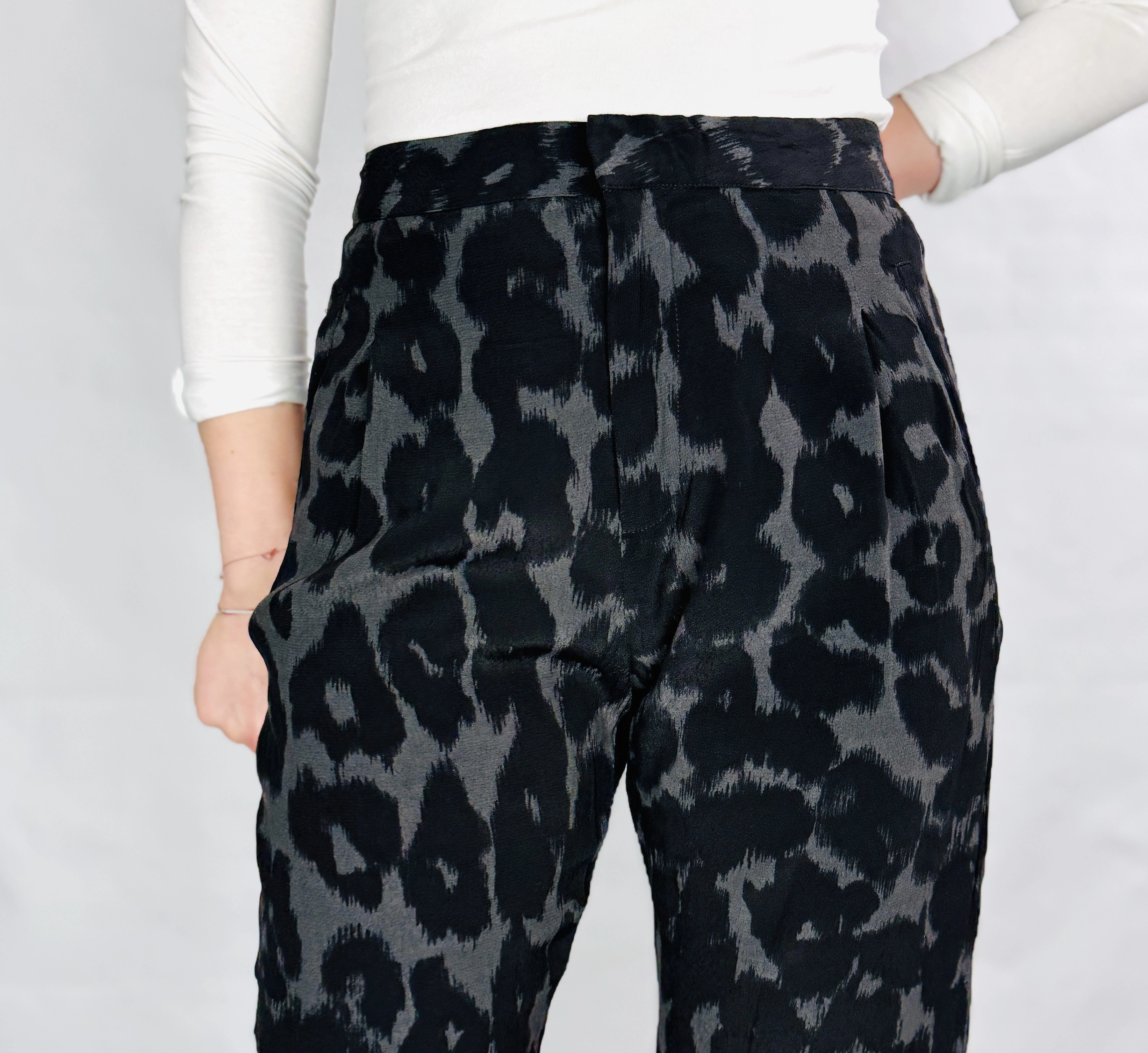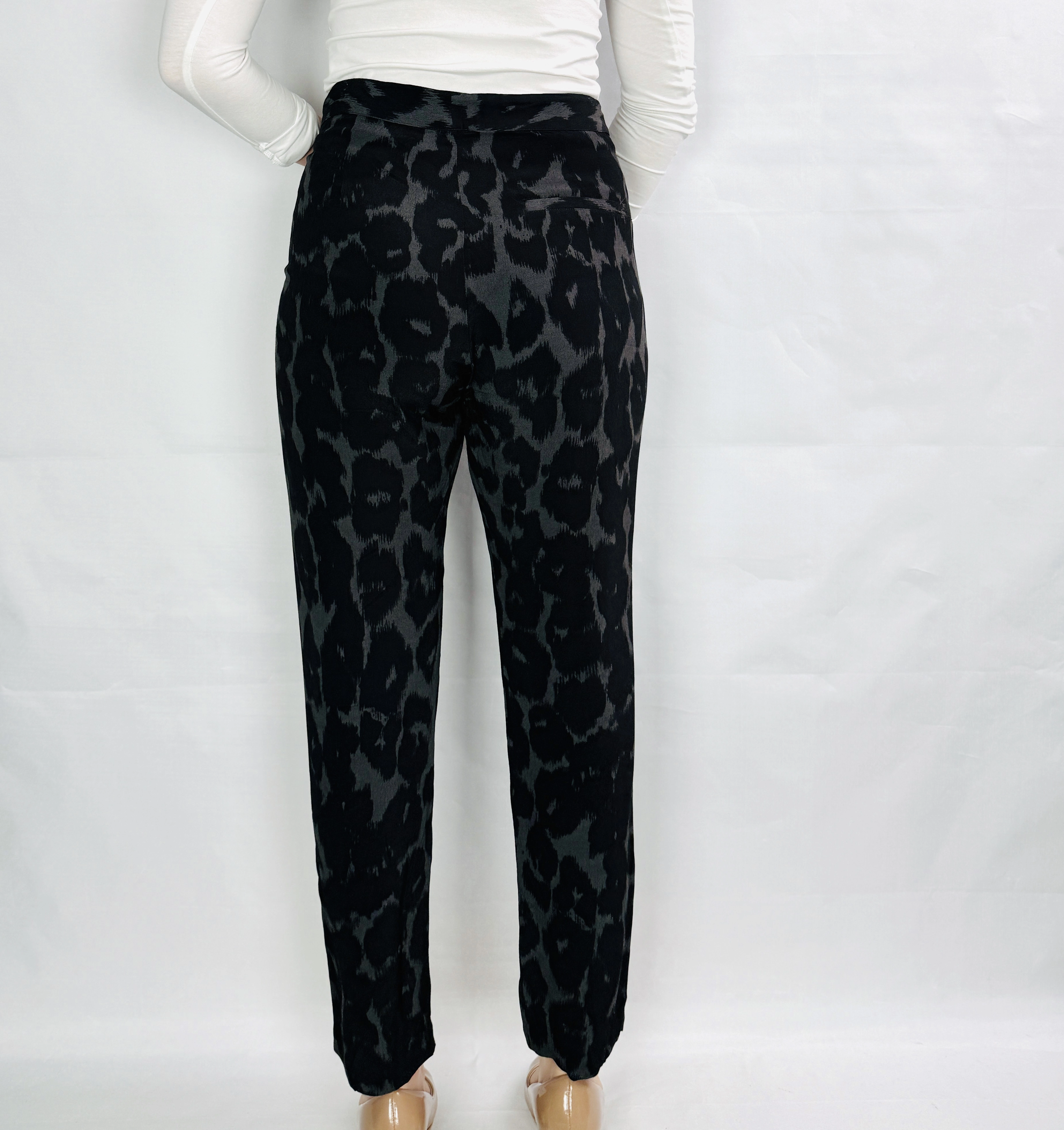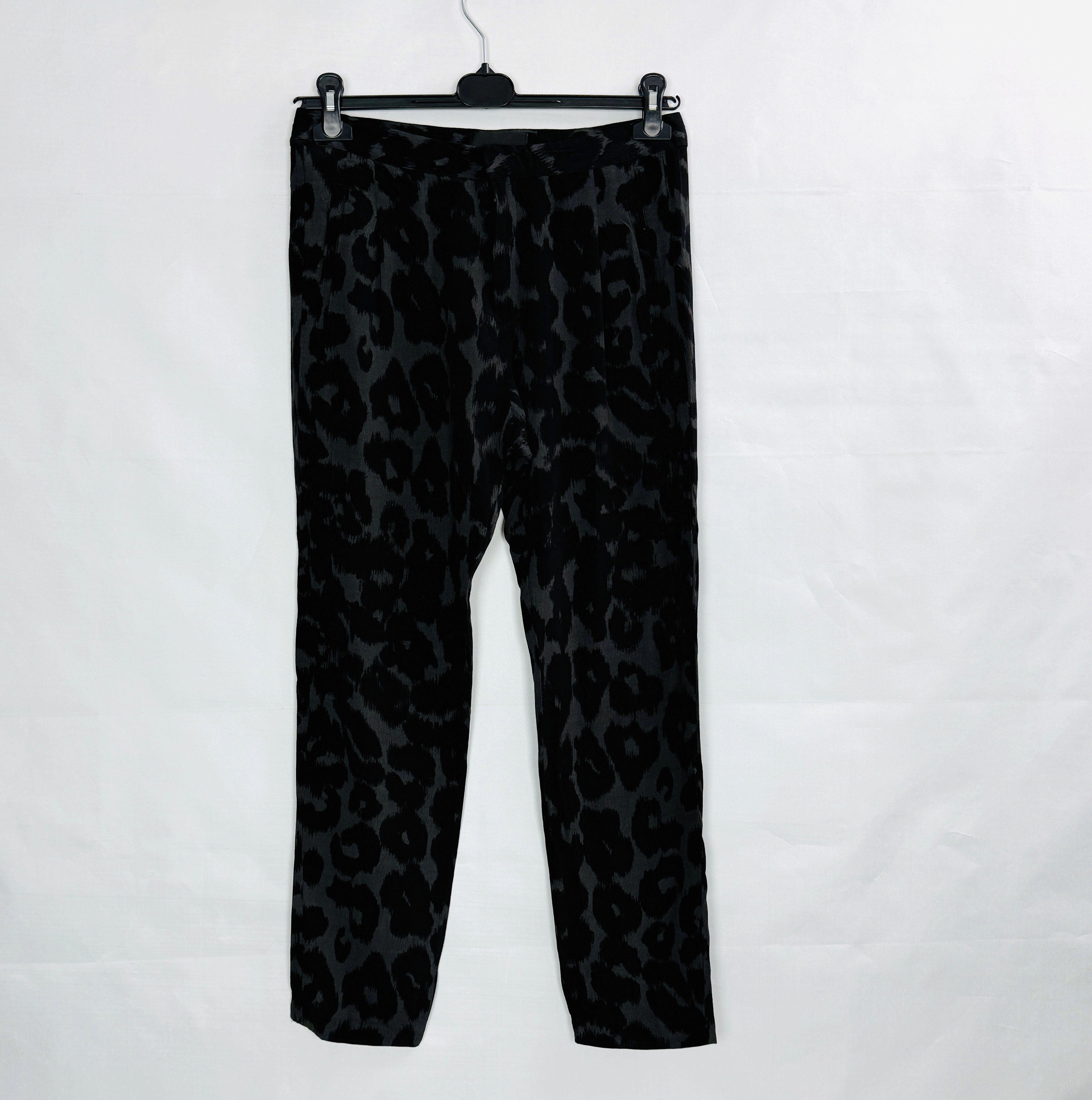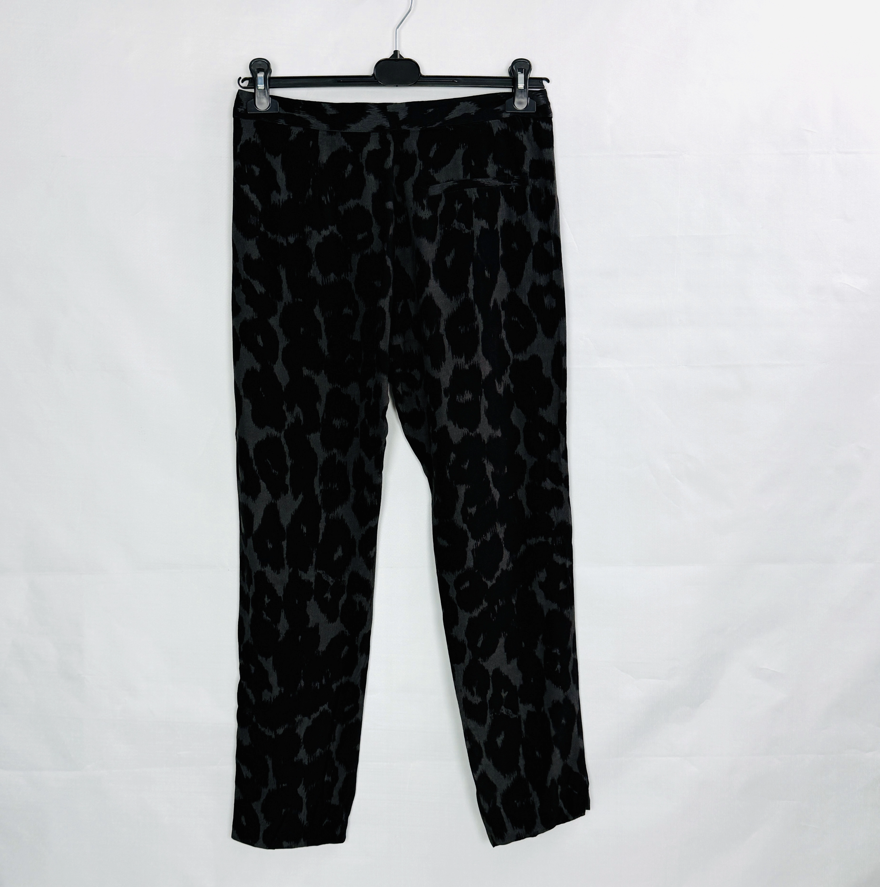 Te spodnie to wyraz nowoczesnej elegancji i subtelnej kobiecości, które łączą w sobie klasyczny fason z delikatnym, luksusowym wykończeniem. Szaro czarny wzór o lekko zwierzęcym charakterze nadaje im wyjątkowego stylu, który sprawia, że są idealnym wyborem dla kobiet ceniących oryginalność i modny wygląd. To propozycja, która doskonale sprawdzi się na różnorodne okazje – od codziennych, przez biznesowe, aż po wieczorne wyjścia.