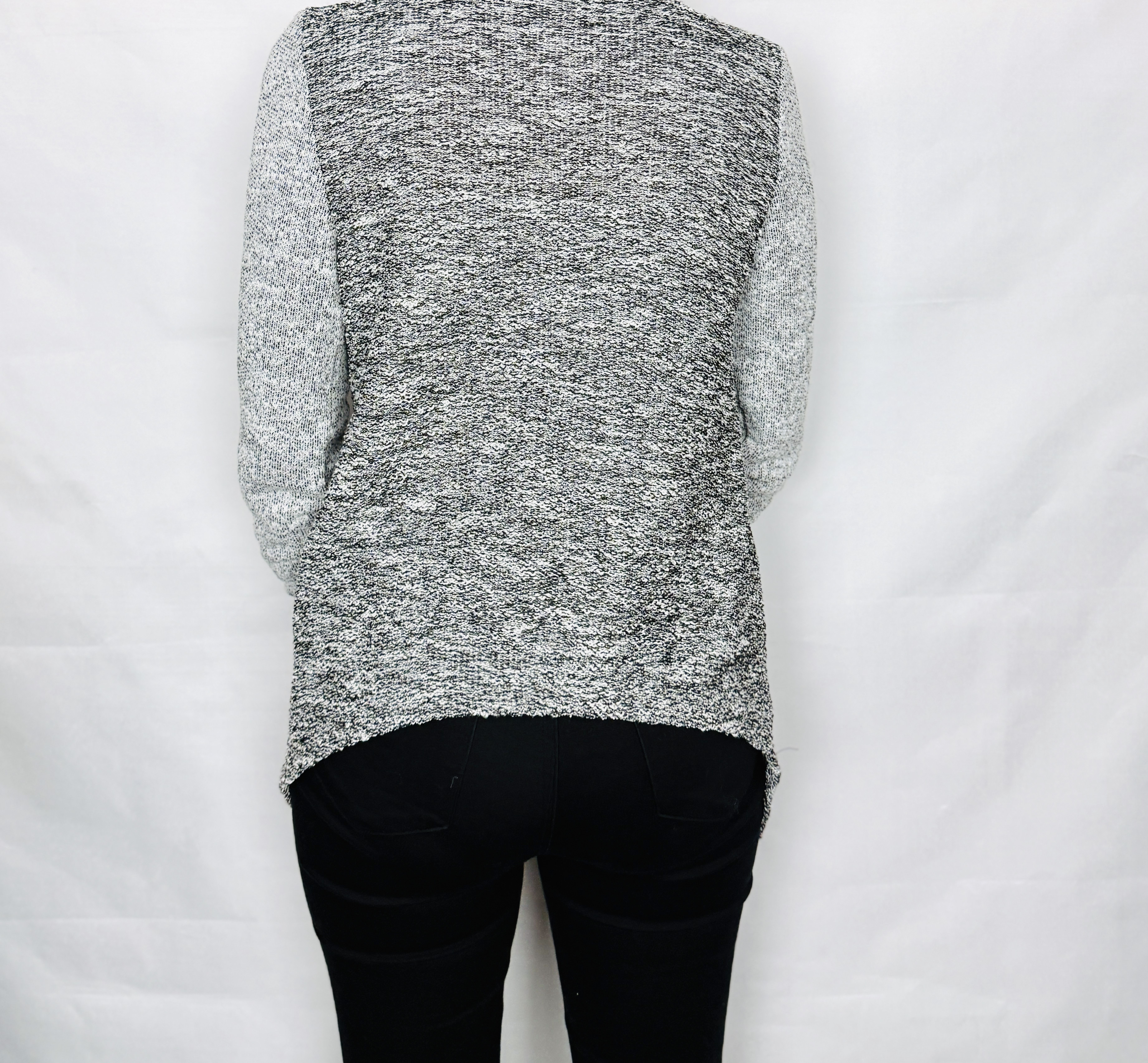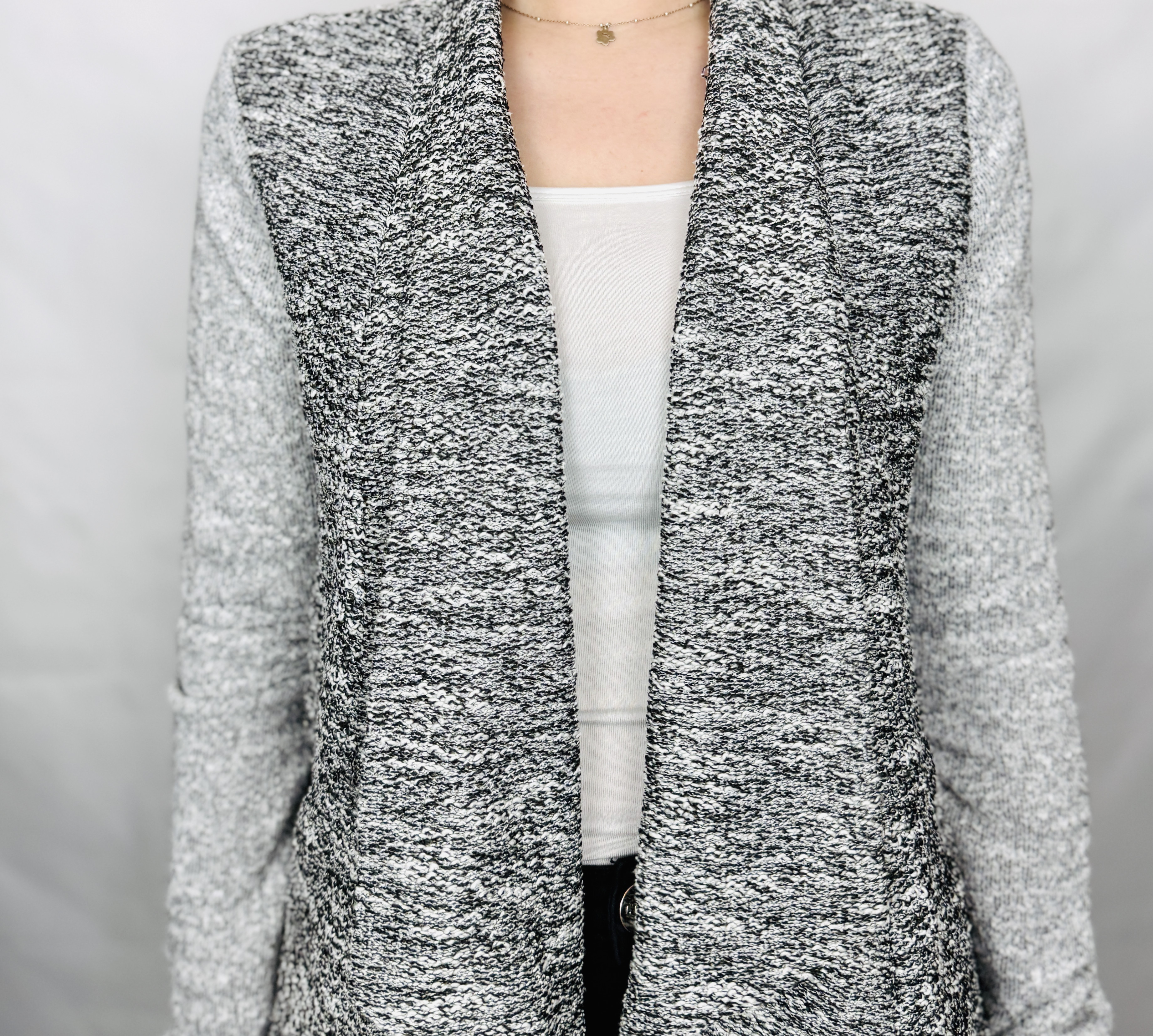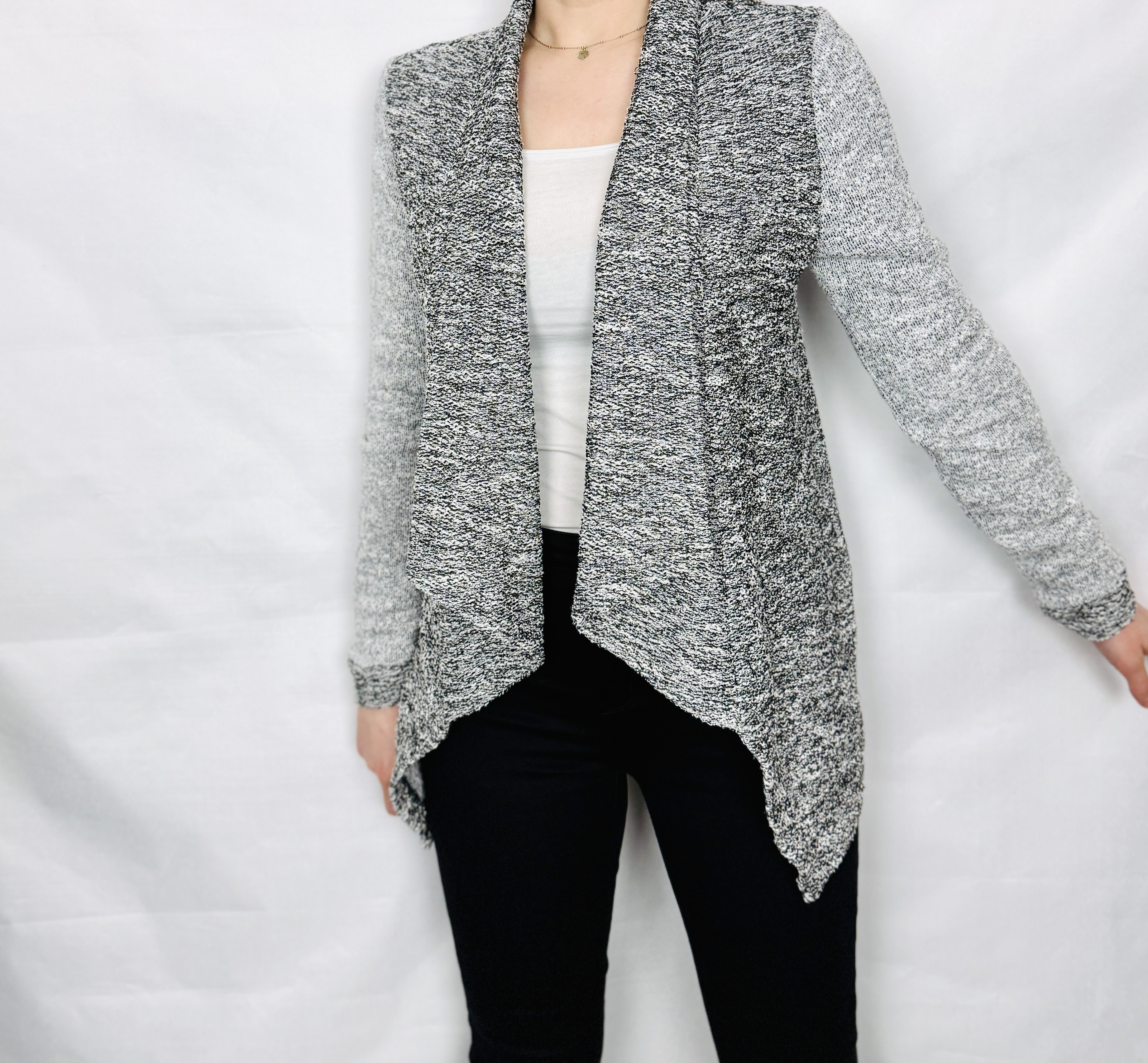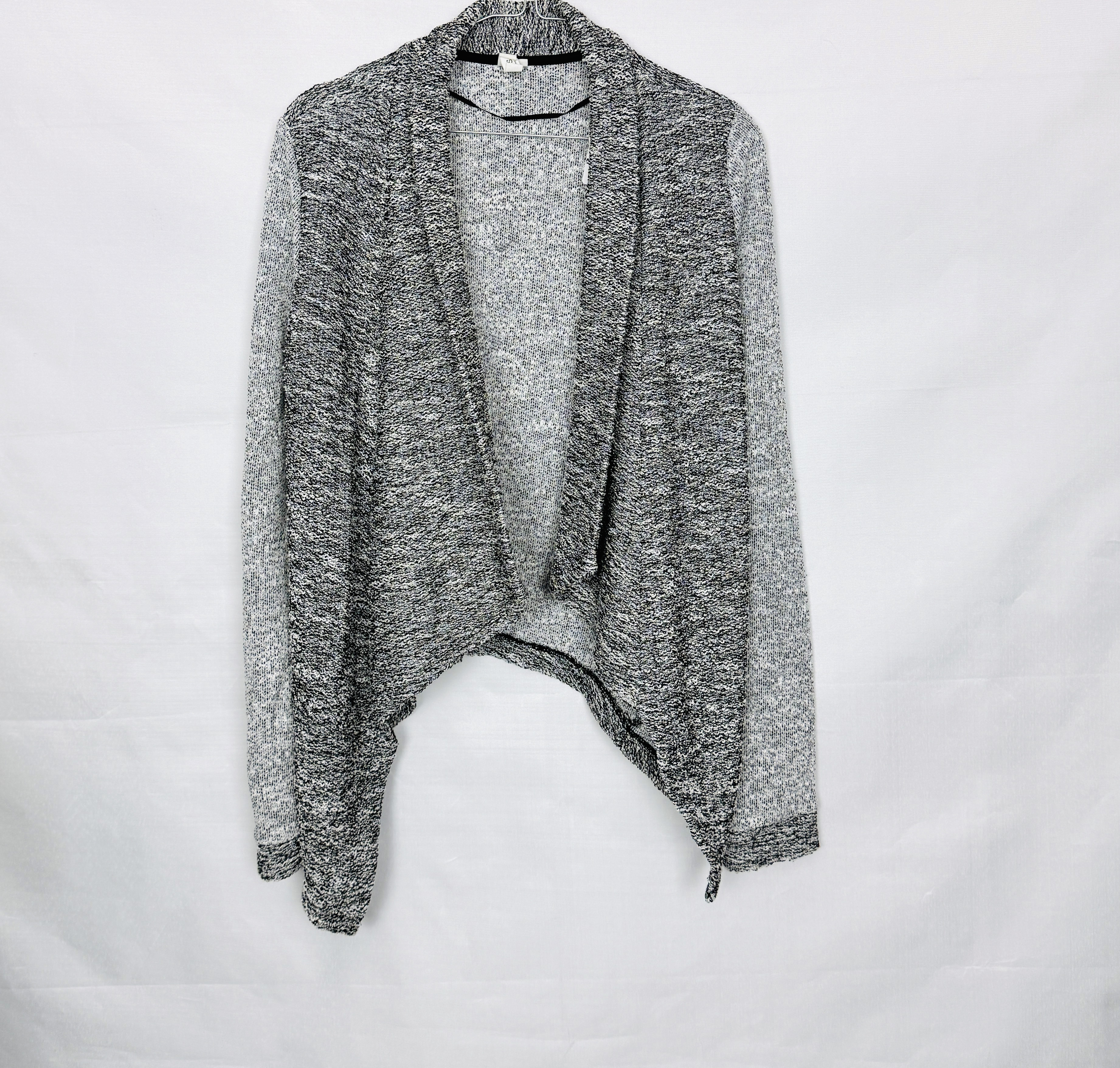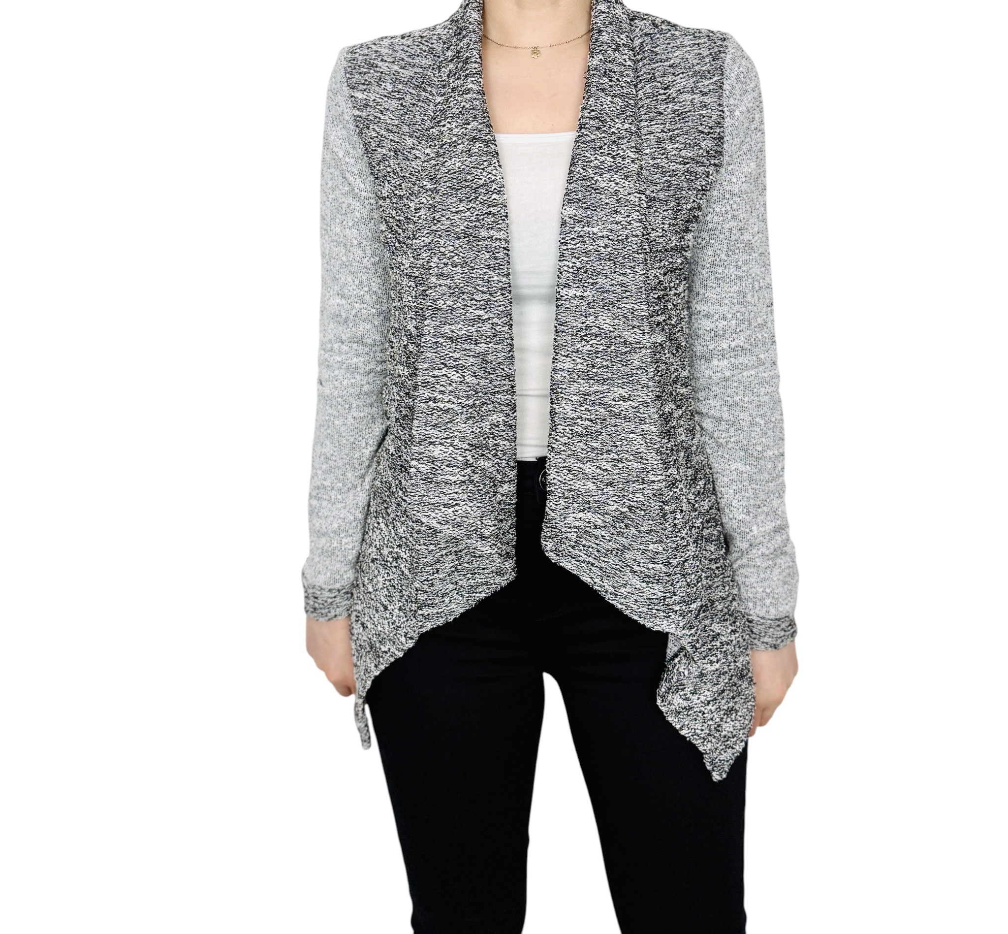 Szary żakiet melanż z wodospadowym przodem S 36