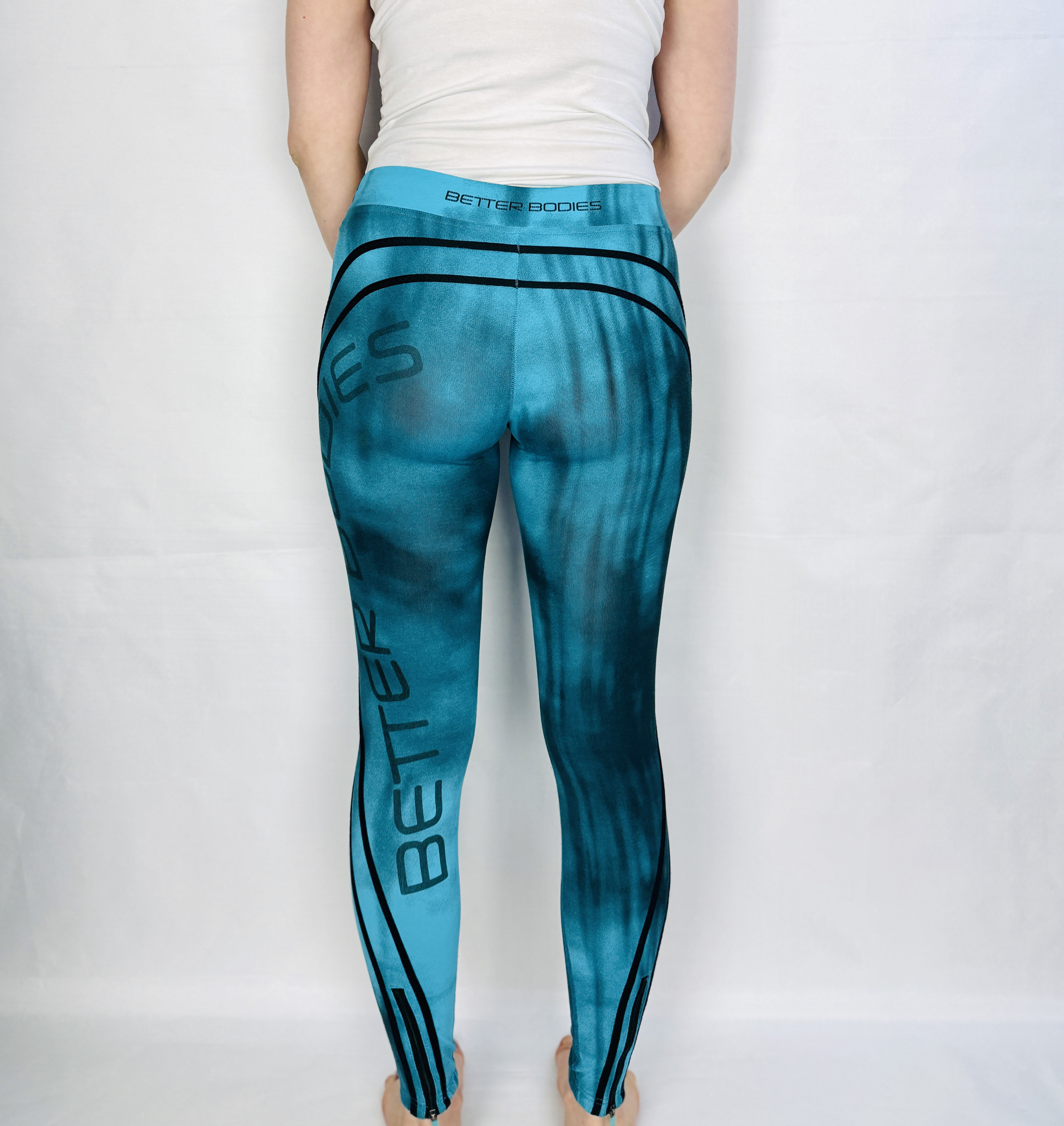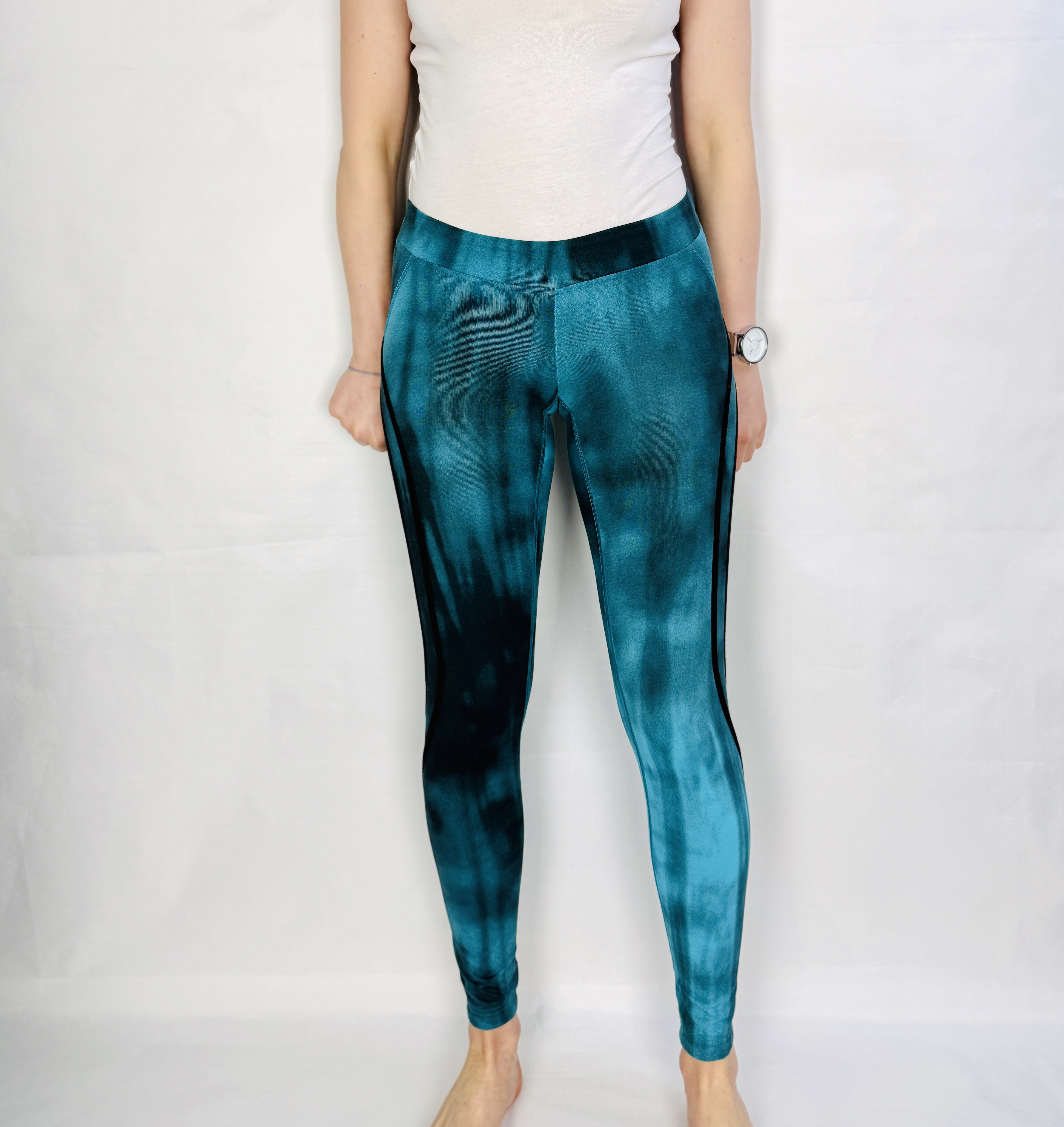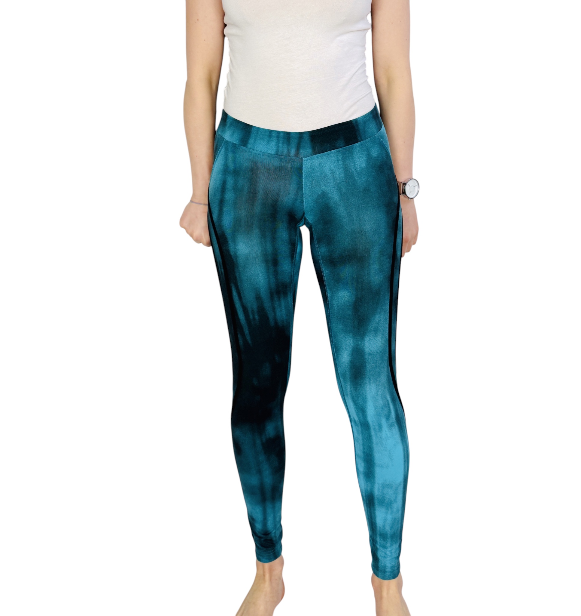 Te legginsy to świeża, energetyczna propozycja, która łączy sportowy charakter z modną, kobiecą estetyką. Intensywny turkus przechodzący w głębsze, ciemniejsze akcenty tworzy efekt przypominający malarskie smugi — całość wygląda lekko artystycznie, a jednocześnie nowocześnie i dynamicznie. Fason emanuje pewnością siebie: to ubranie, które dodaje energii porannemu treningowi, spacerowi i codziennym, miejskim stylizacjom, a przy tym zachowuje kobiecy, dopracowany rys.