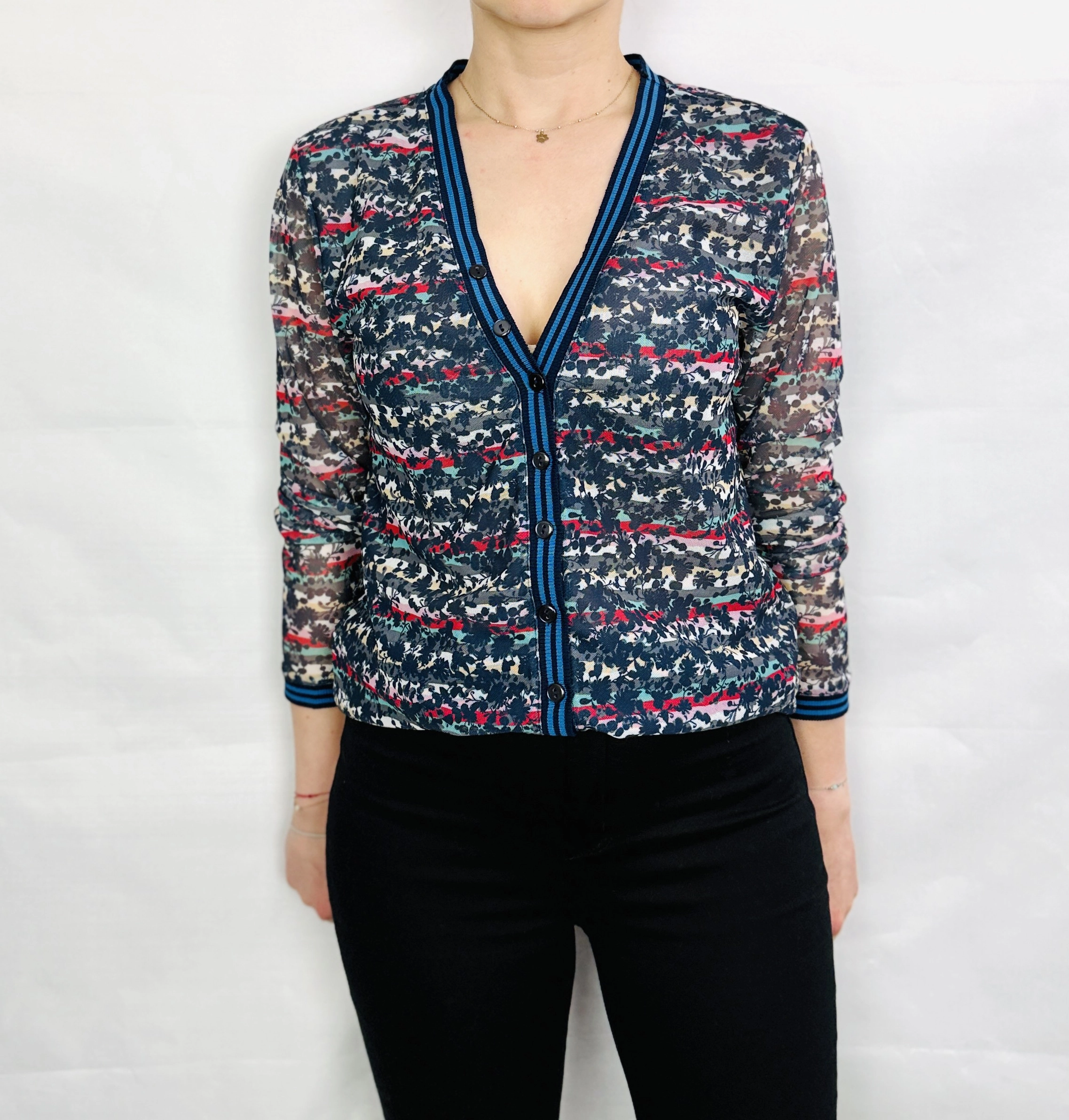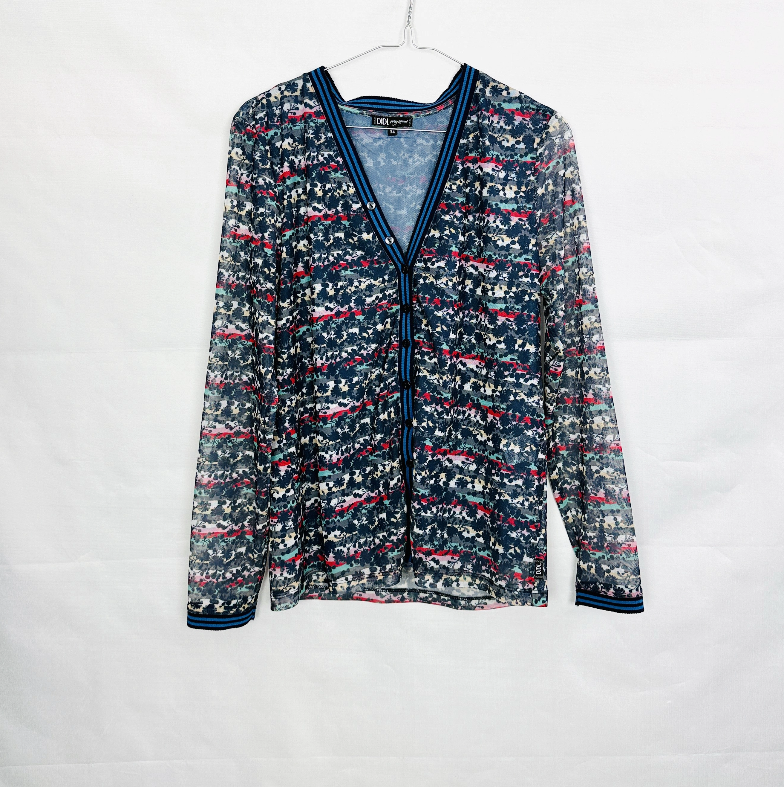 Wielokolorowa bluzka w kwiaty z guzikami XS 34
