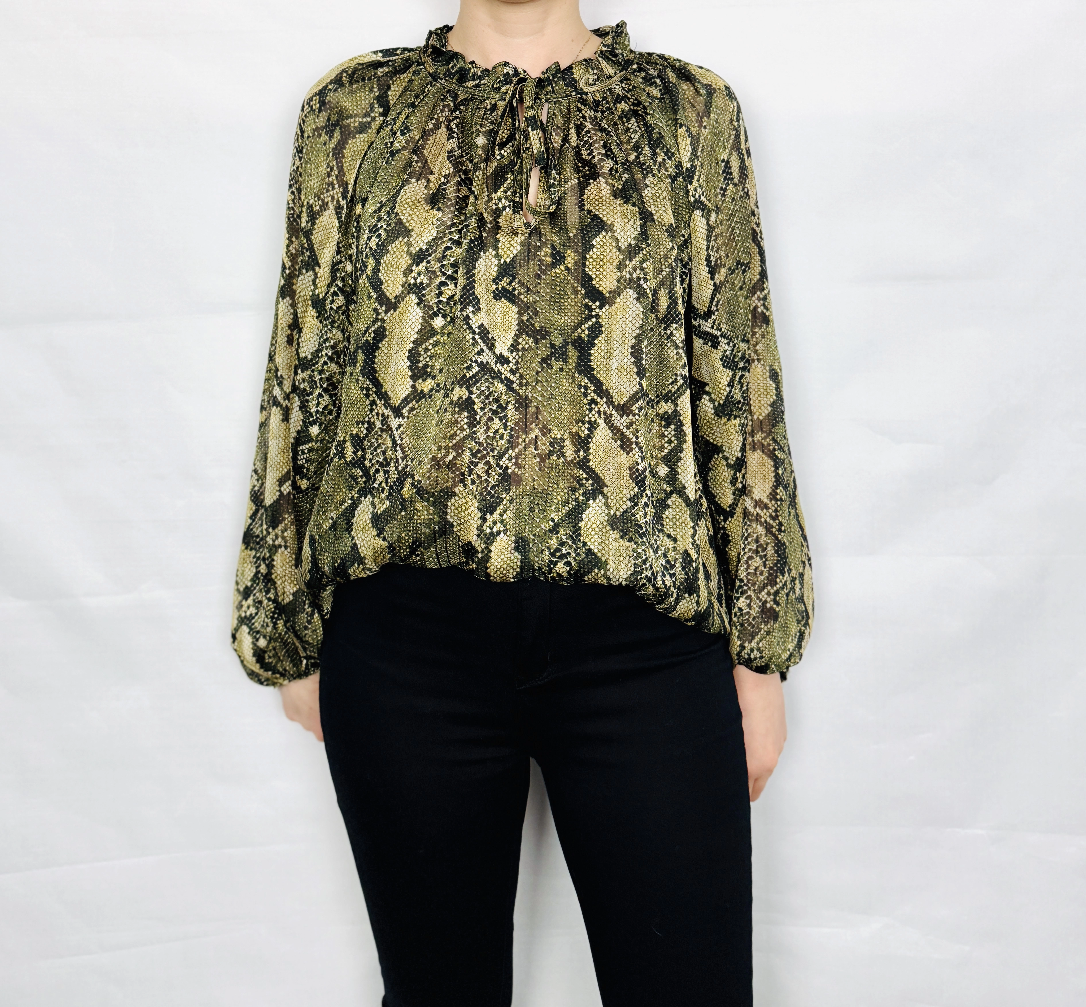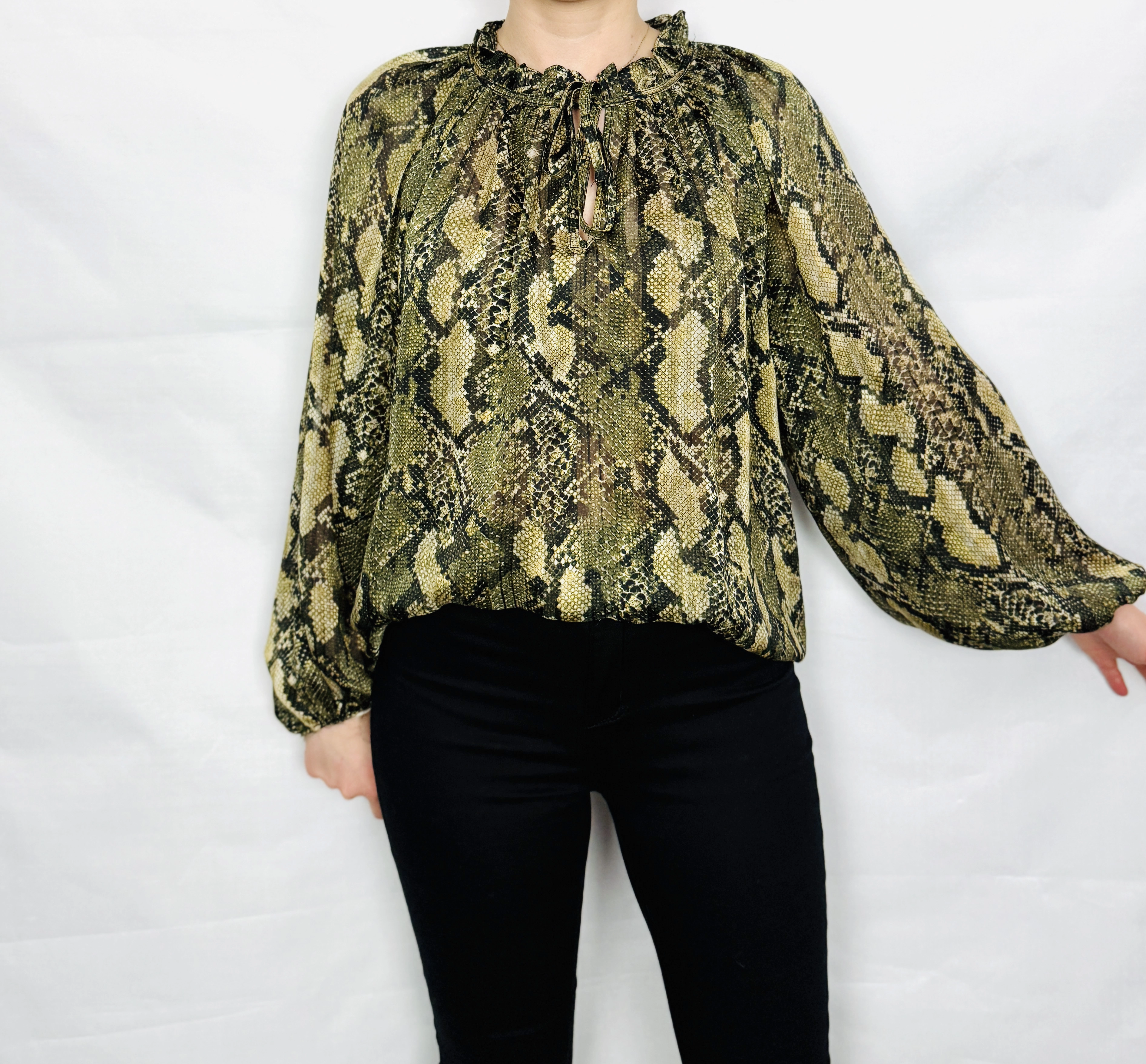 Wzorzysta bluzka z motywem wężowej skóry M 38