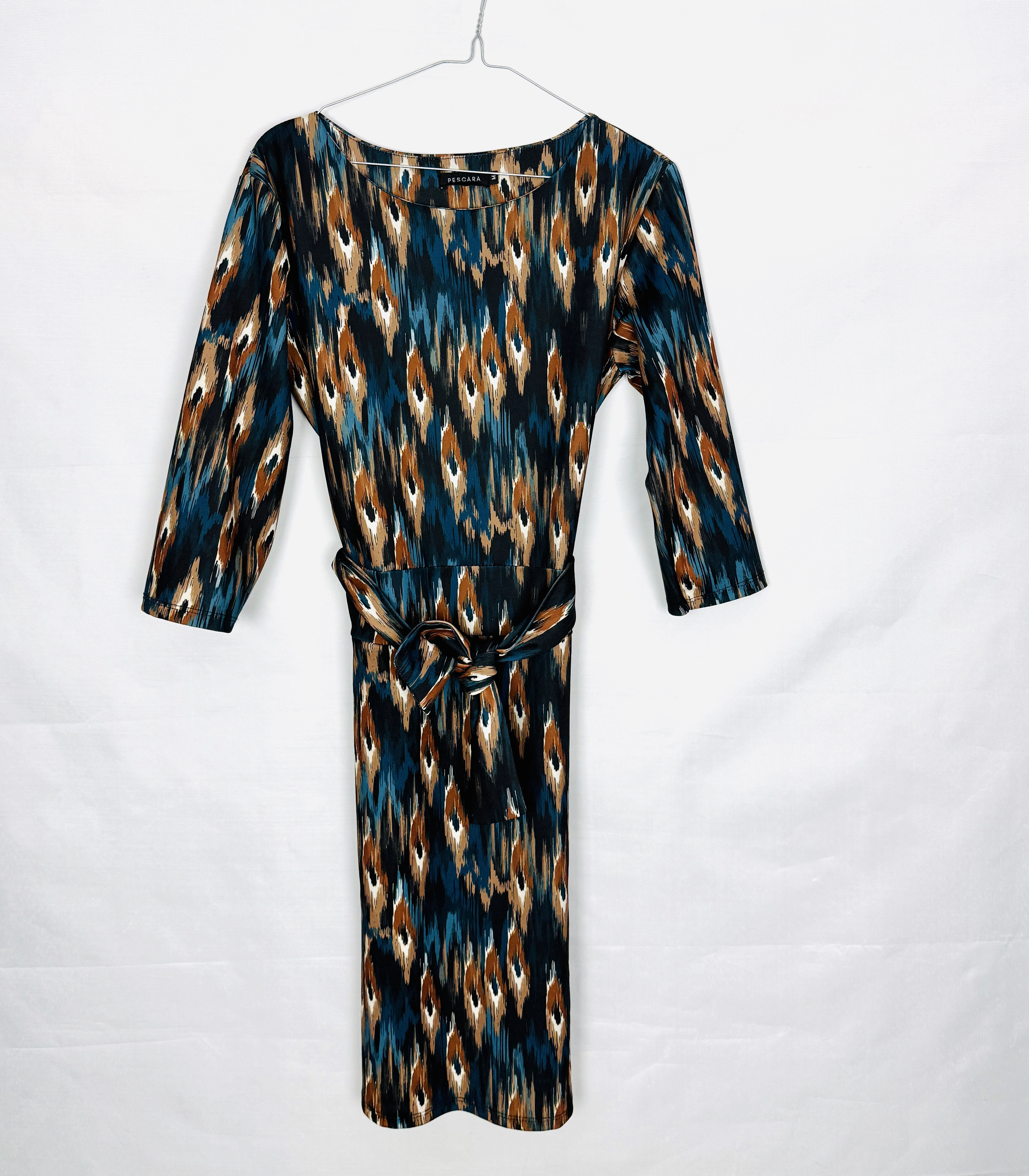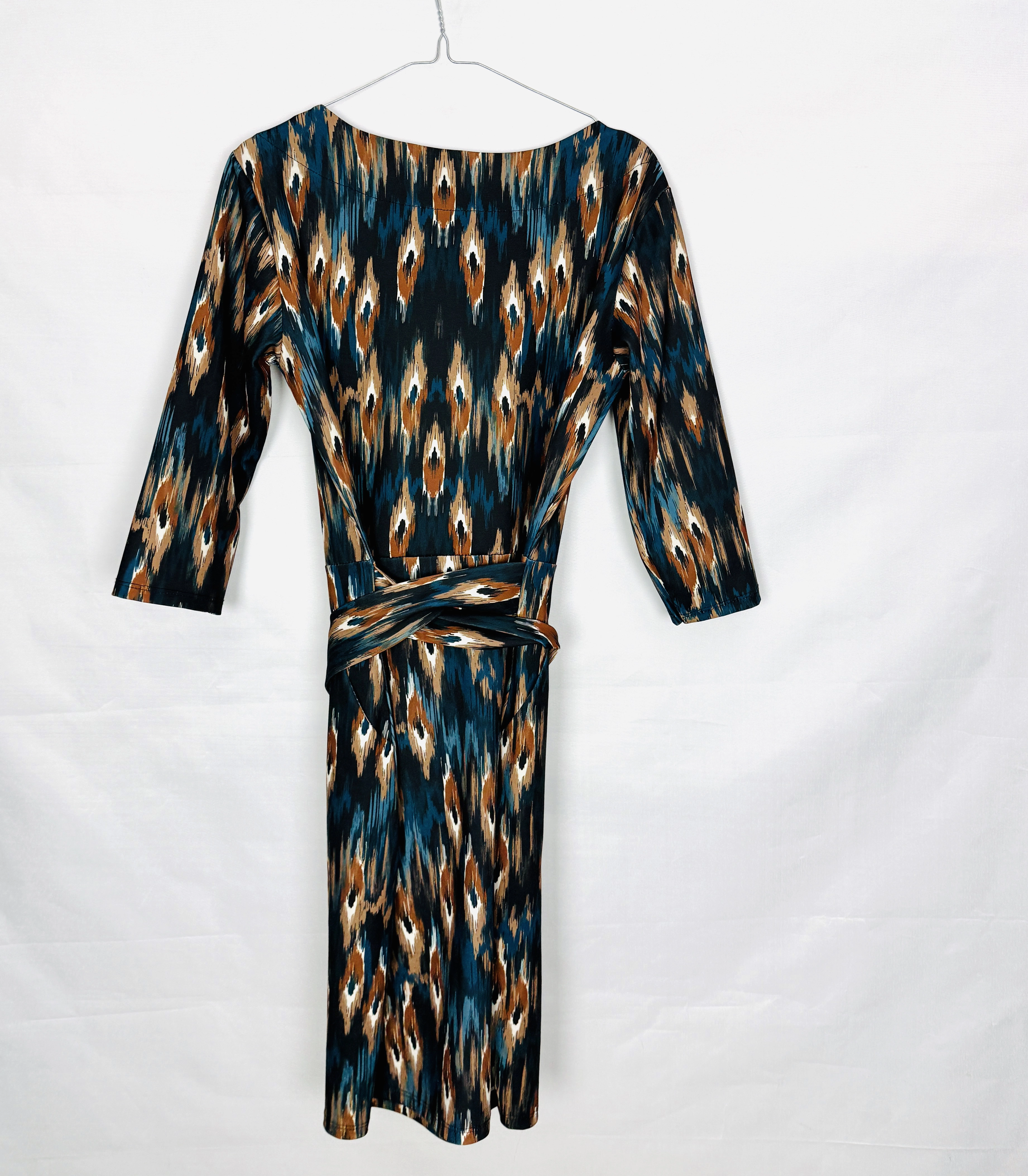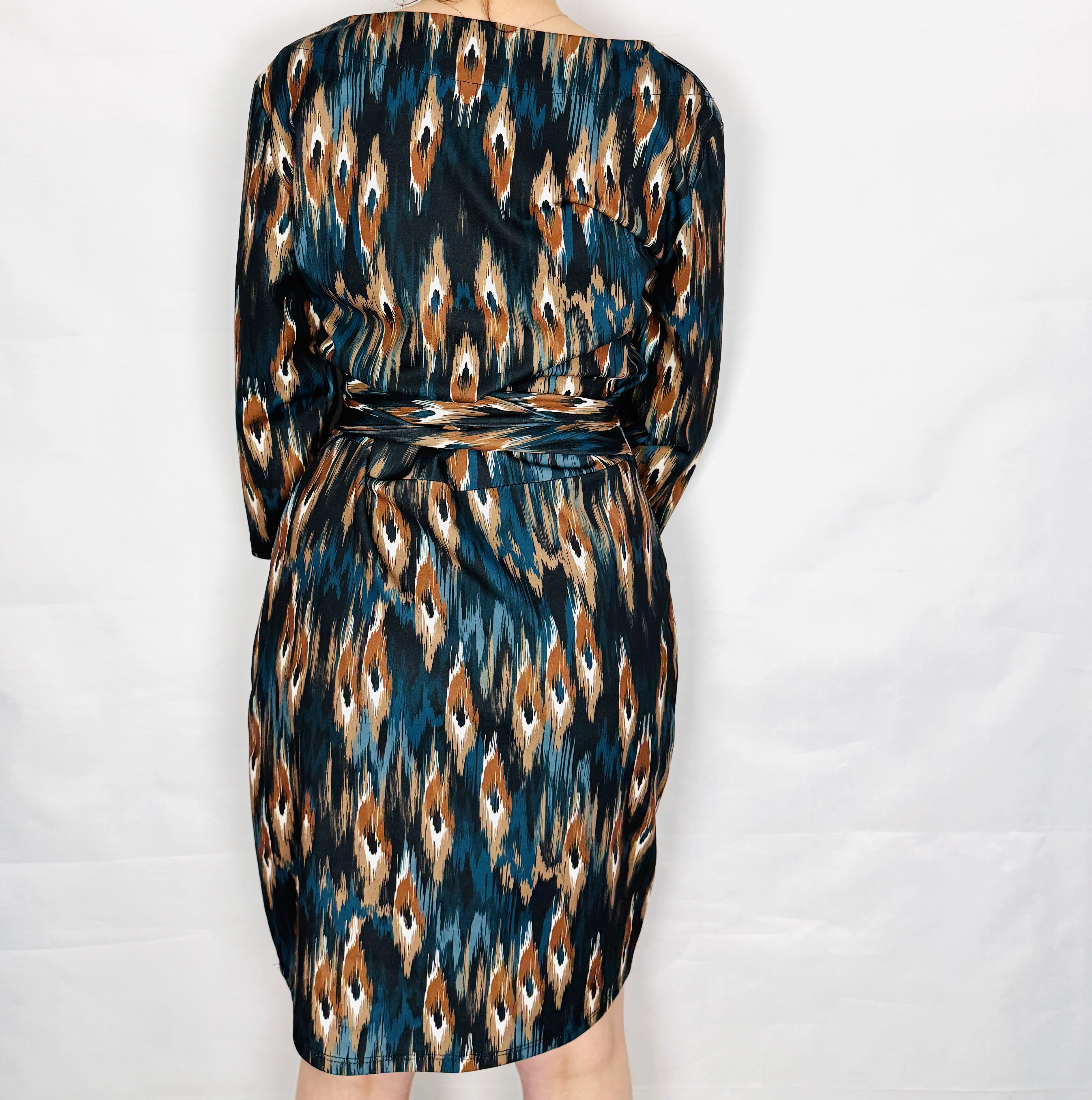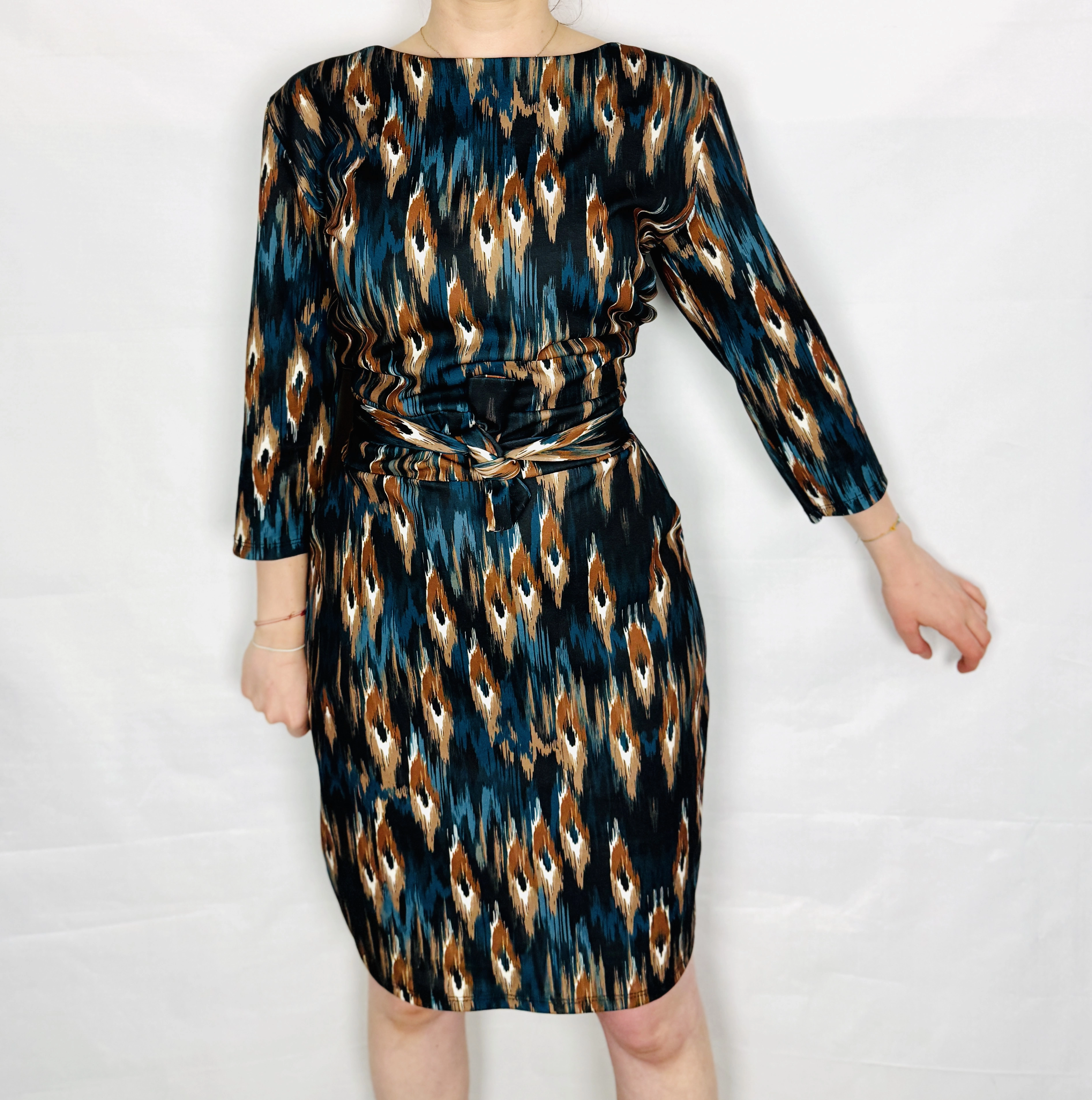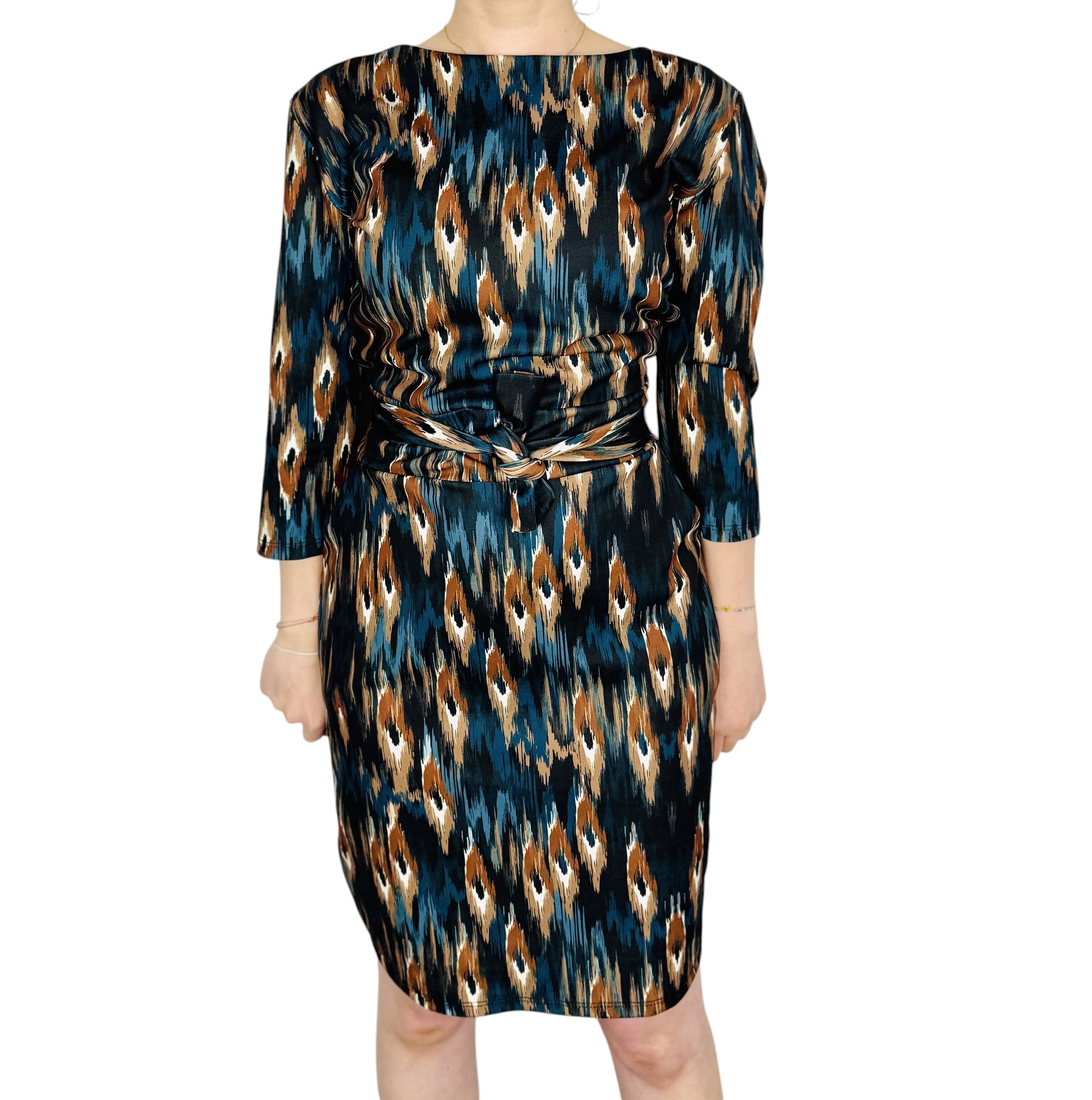 Wzorzysta sukienka z wiązaniem w talii M 38