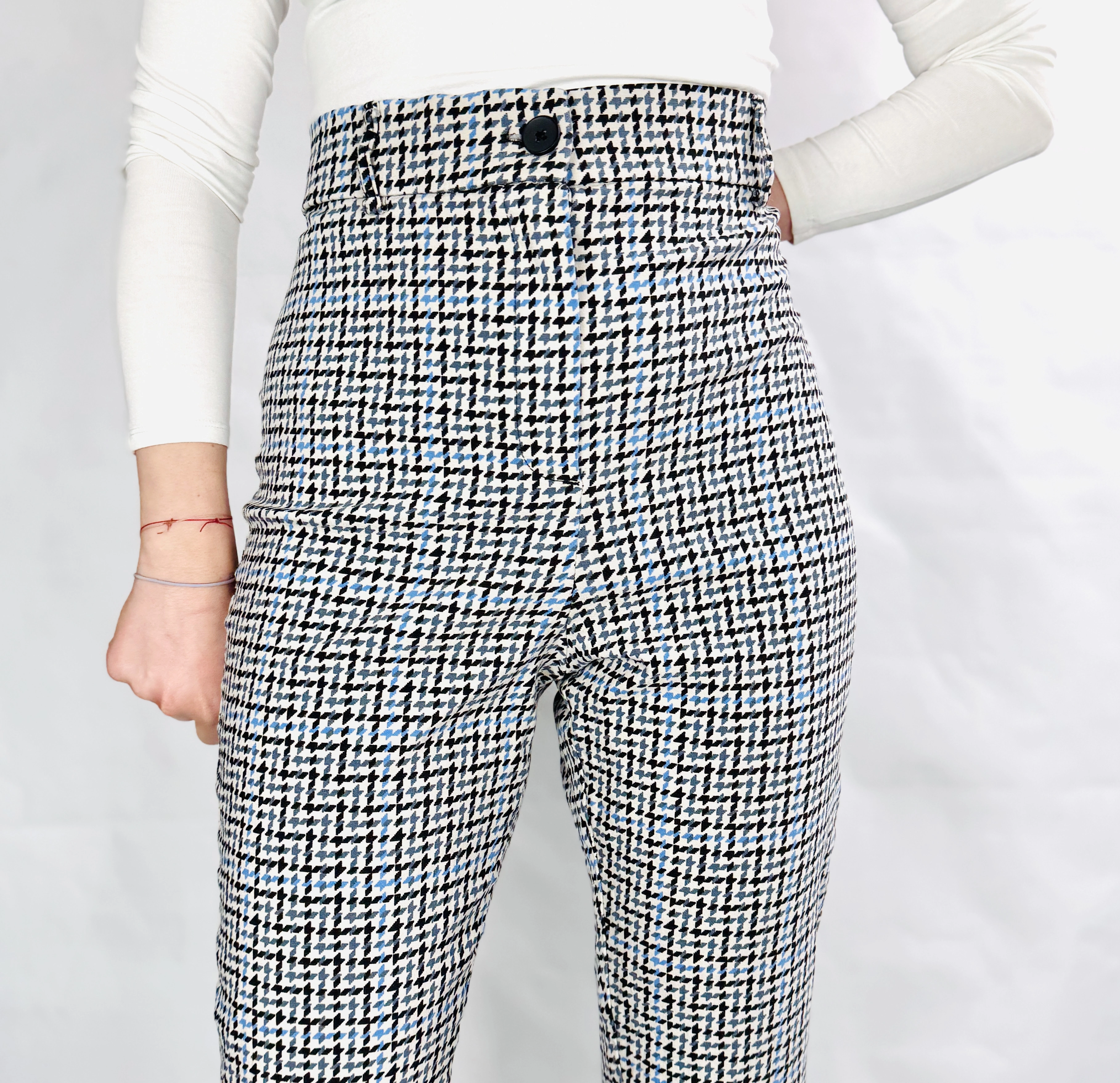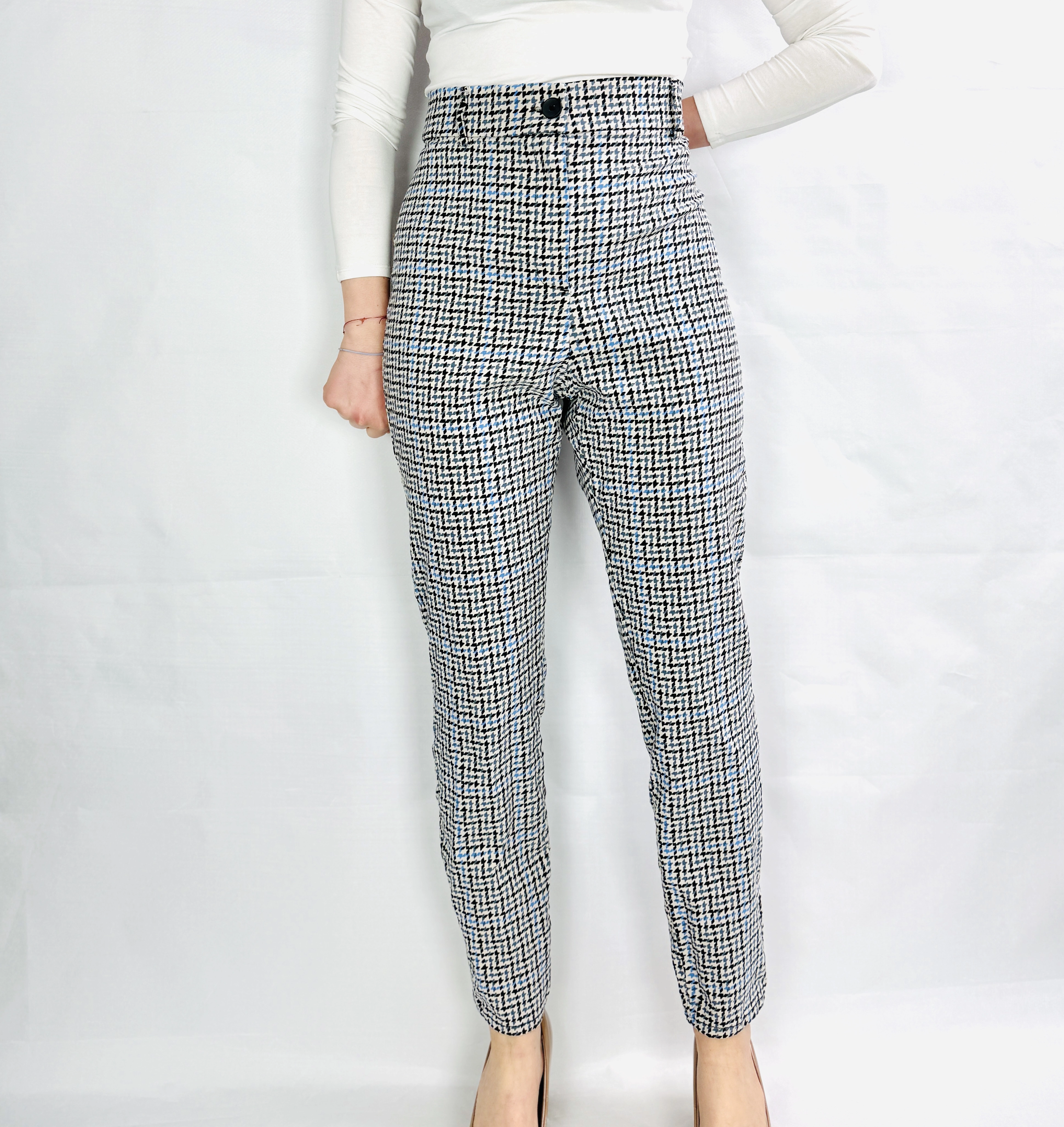 W stylizacjach wzorzyste spodnie z wysokim stanem dają szerokie możliwości kreowania modnych i eleganckich zestawów. Na co dzień można je zestawić z prostą, białą koszulą lub miękkim swetrem oraz klasycznymi loafersami, tworząc look pełen klasy i wygody. Do pracy świetnie sprawdzą się w połączeniu z marynarką i eleganckimi dodatkami, podkreślając profesjonalizm i styl. Kolory spodni doskonale komponują się z beżem, czernią, granatem oraz pastelowymi odcieniami, co pozwala na tworzenie spójnych i harmonijnych stylizacji. Na wieczorne wyjście wystarczy dobrać szpilki i subtelną biżuterię, aby uzyskać efektowny i kobiecy look, który zachwyci każdego.