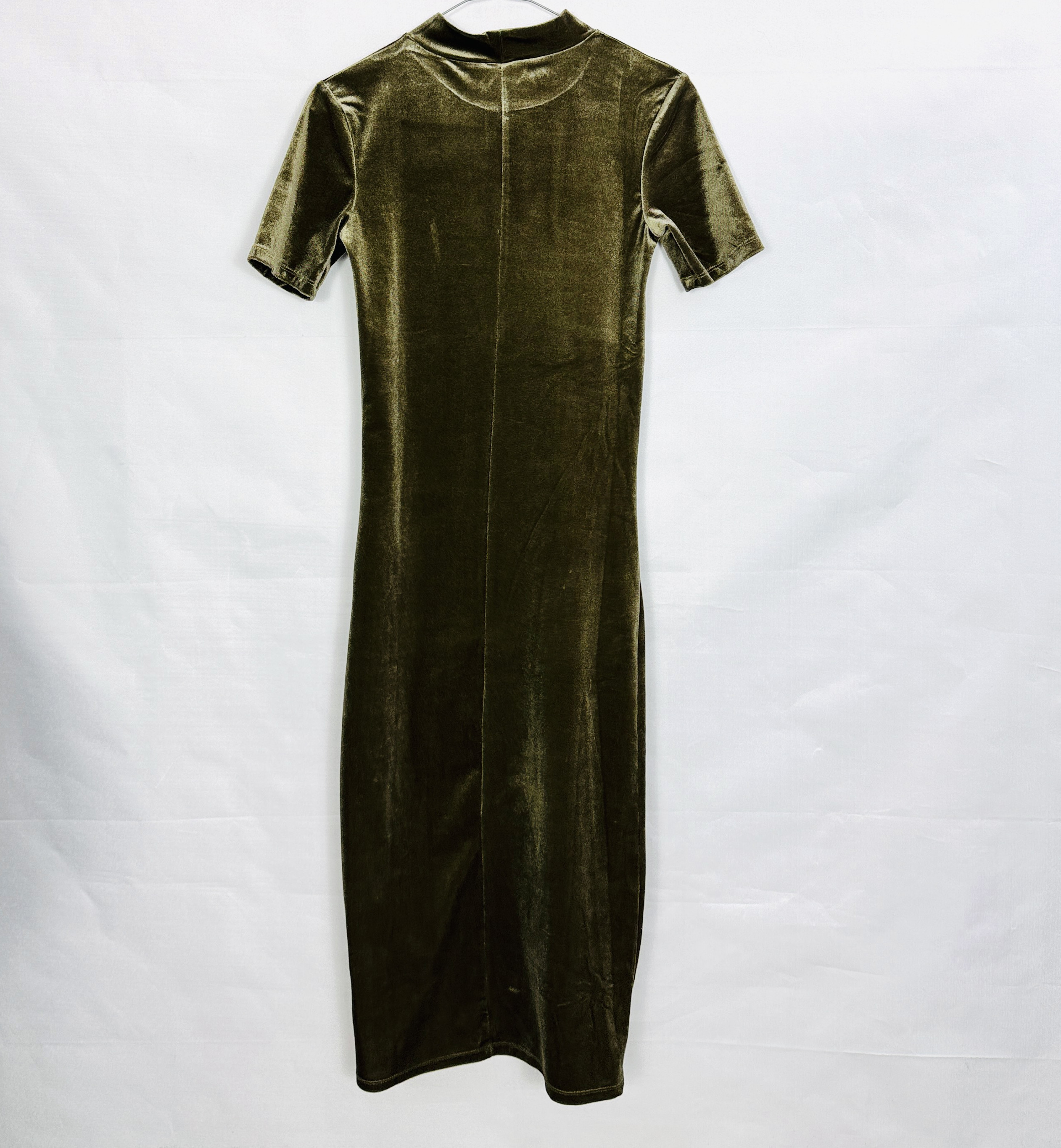To sukienka o niezwykle kobiecym, zmysłowym charakterze — głęboki, butelkowy odcień zieleni w połączeniu z aksamitnym wykończeniem tworzy atmosferę elegancji i subtelnej tajemniczości. Projekt emanuje wyrafinowaniem: prostota linii spotyka tutaj luksusową fakturę, dzięki czemu model staje się idealnym wyborem na wieczorne wyjście, kameralne spotkanie czy specjalną okazję, gdy zależy nam na odsłonie pełnej klasy i delikatnej namiętności. Sukienka ma w sobie nutę vintage, a jednocześnie zachowuje nowoczesną, schludną formę.