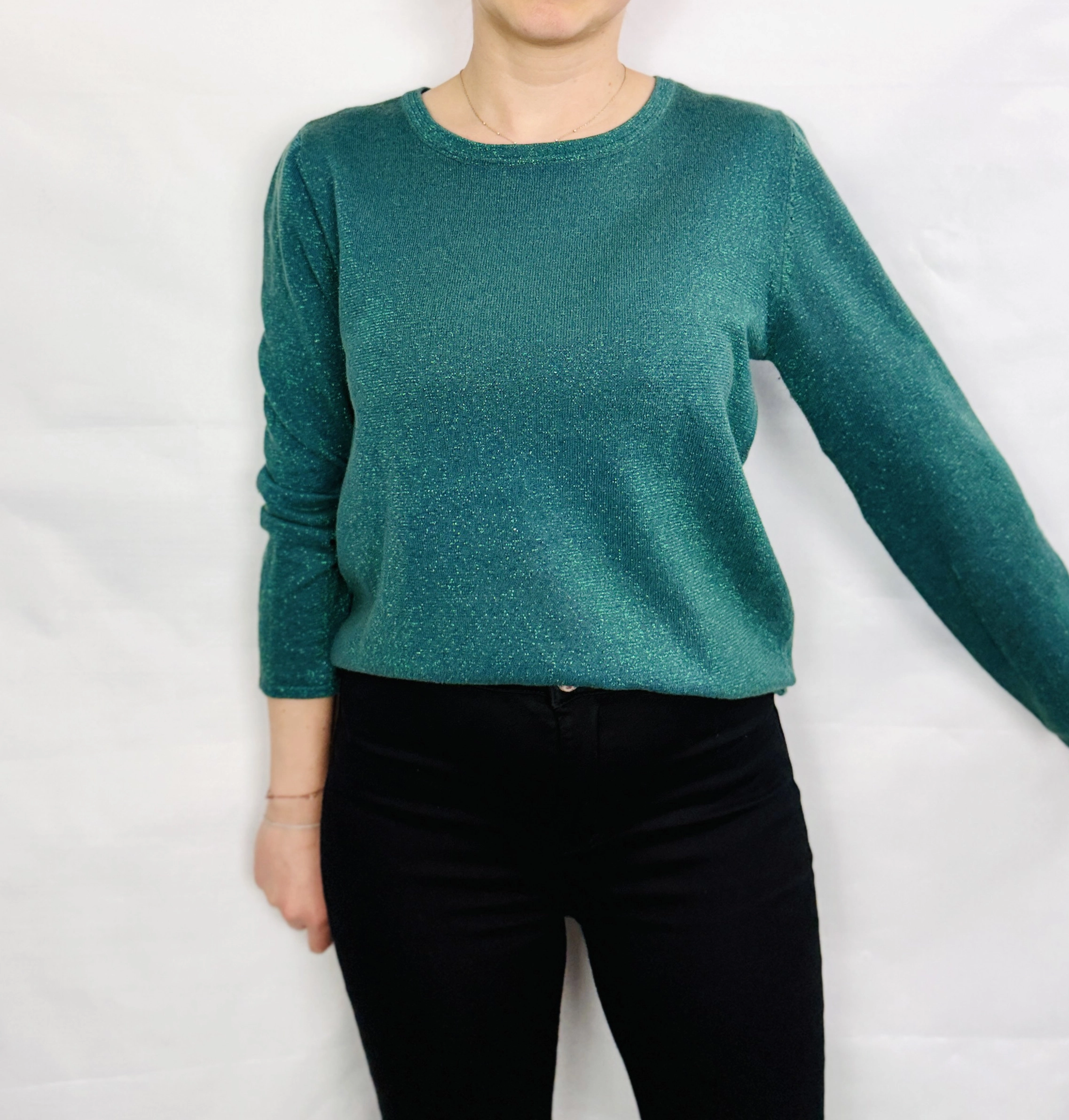 Zielona brokatowa bluzka z subtelnym połyskiem L 40