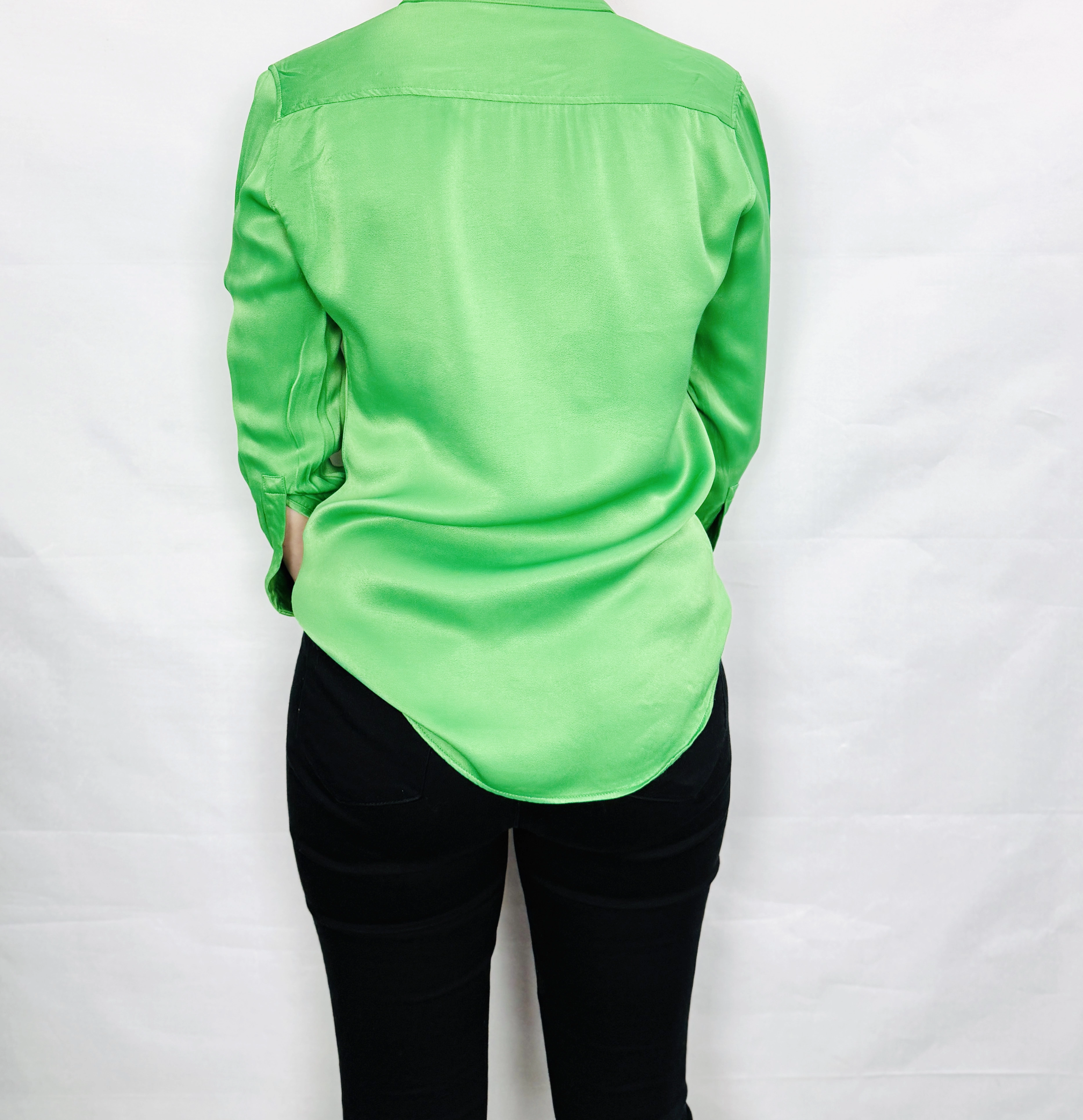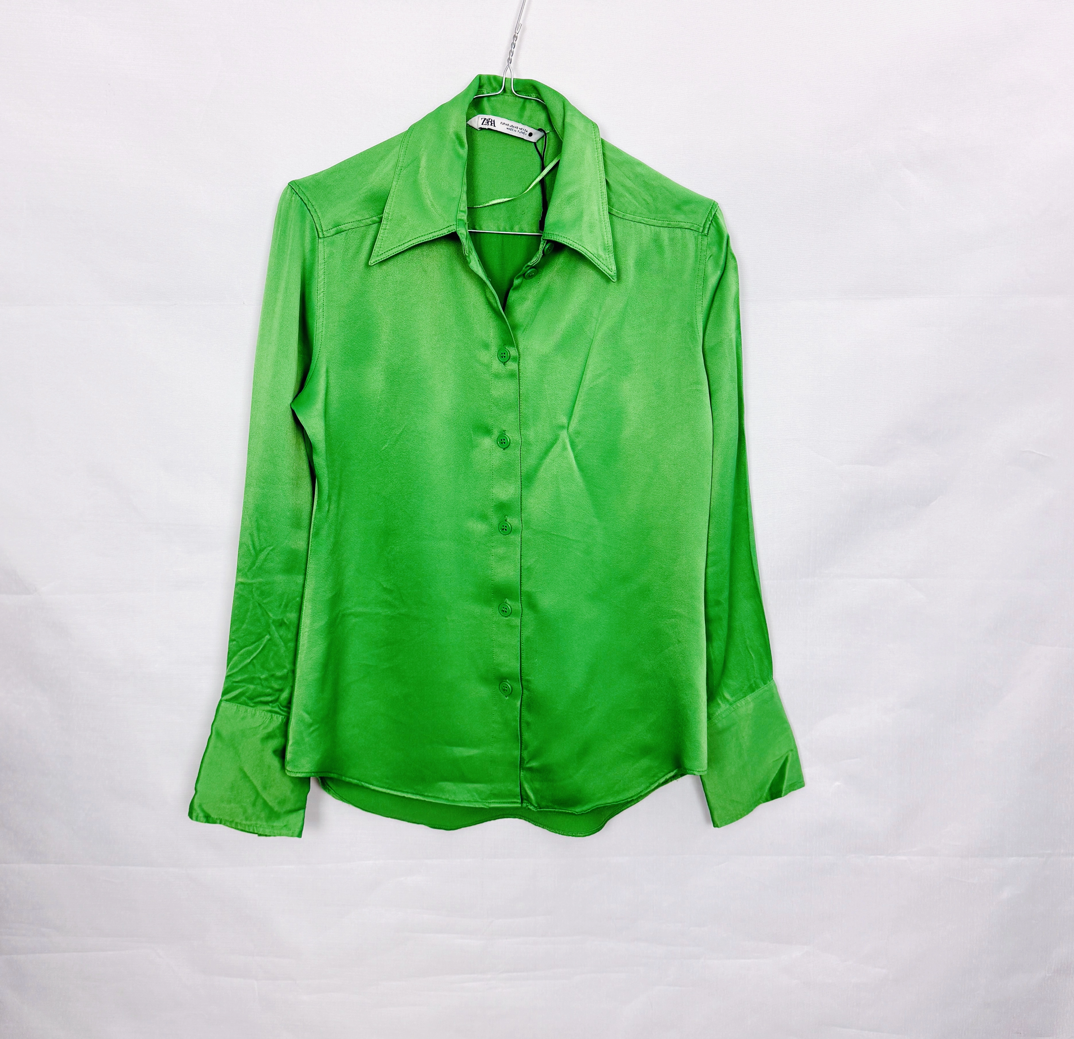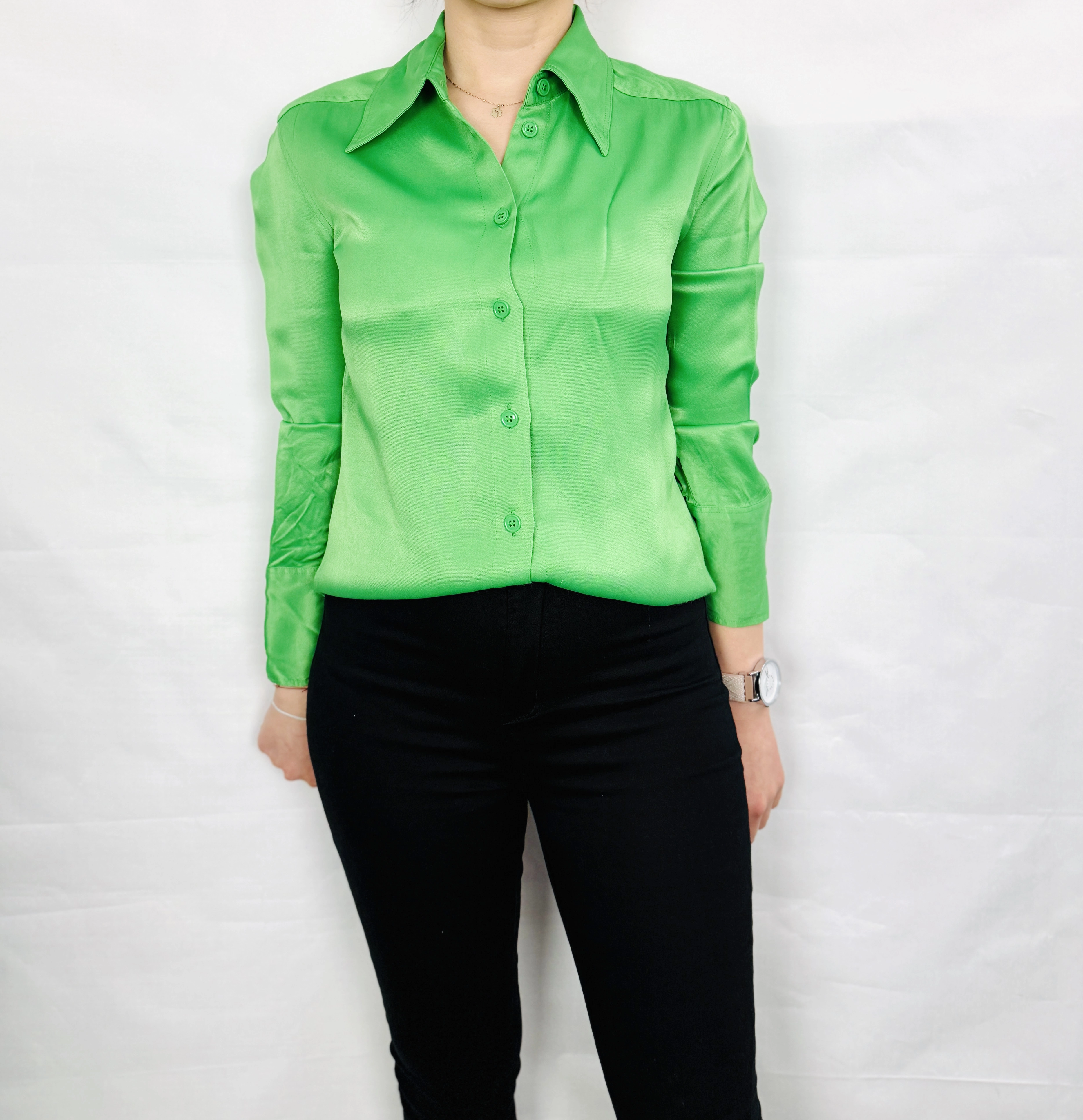 Zielona satynowa koszula z kołnierzykiem XS 34