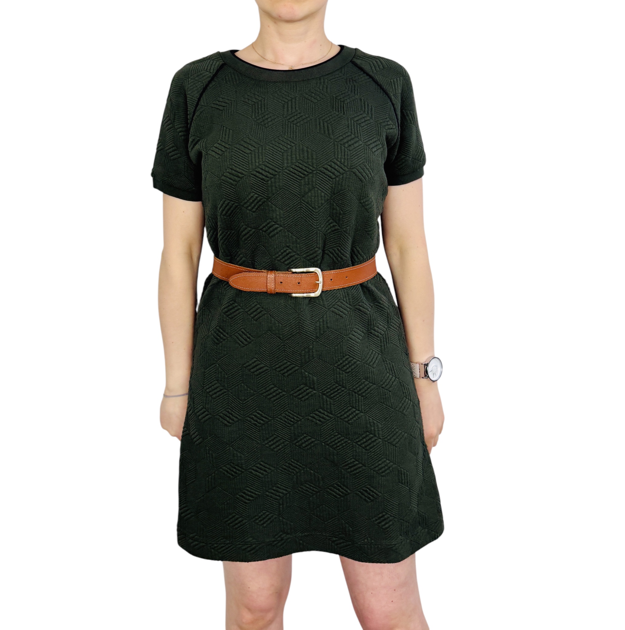 Zielona sukienka dzianinowa z geometryczną fakturą S 36