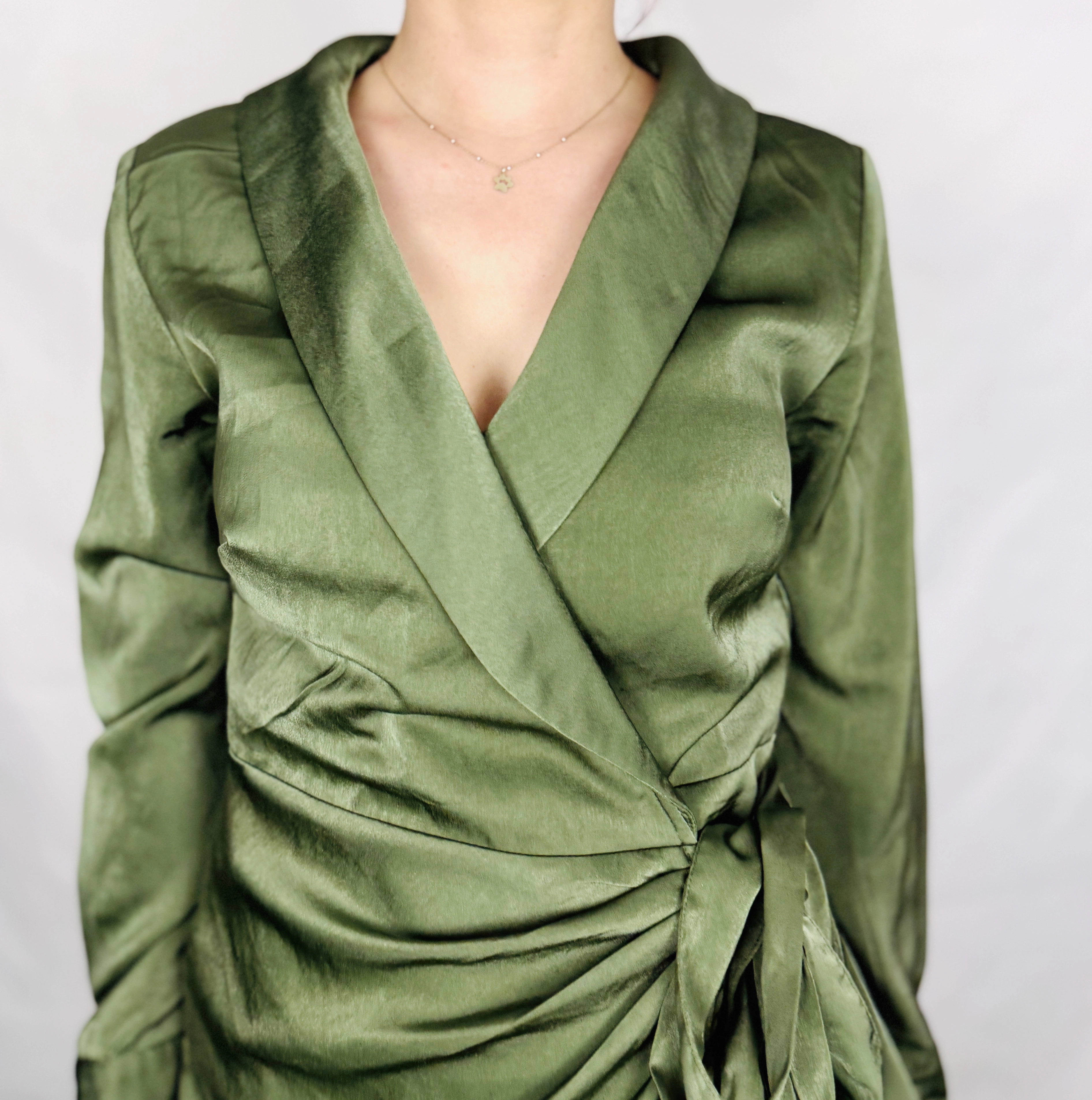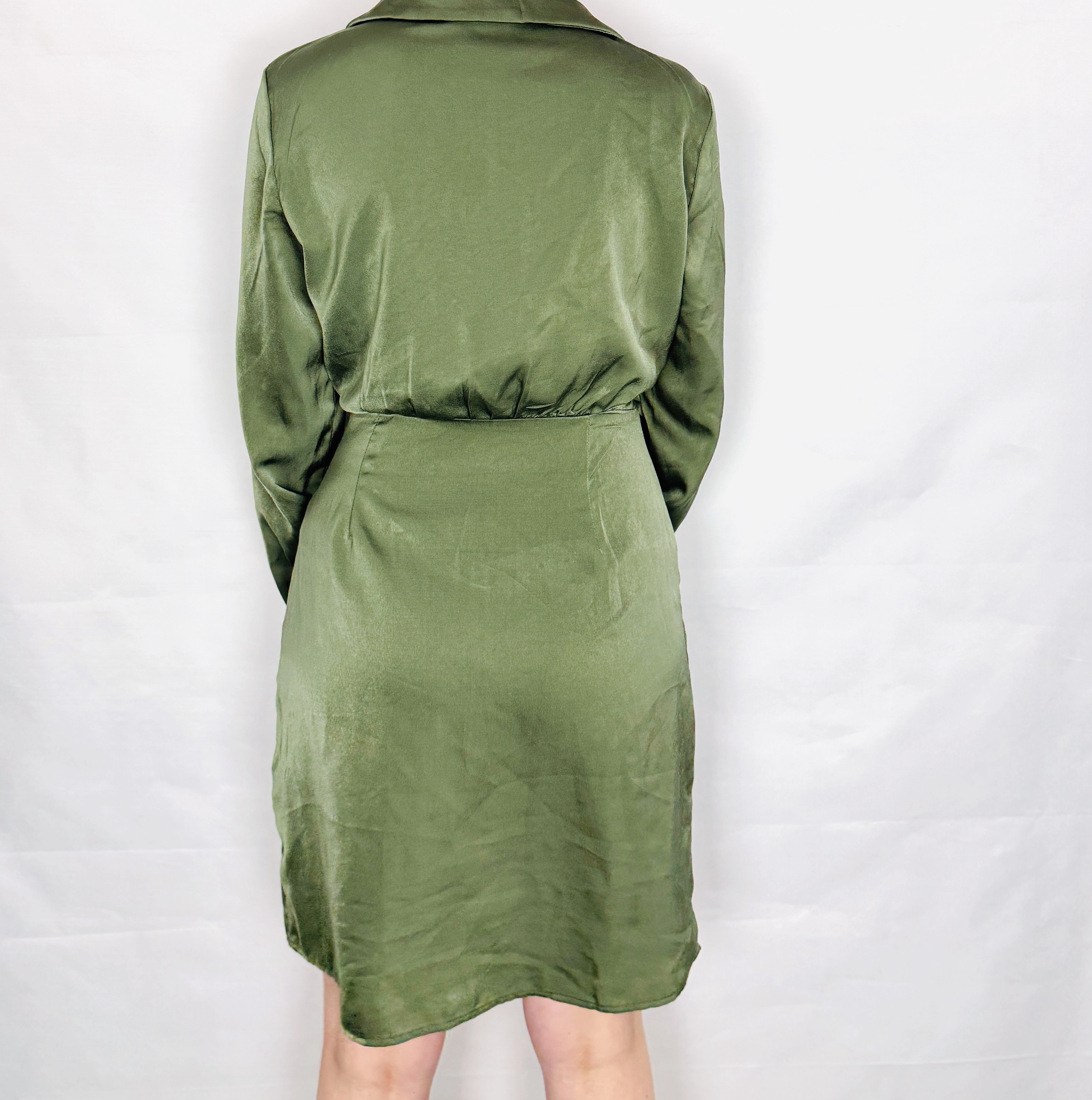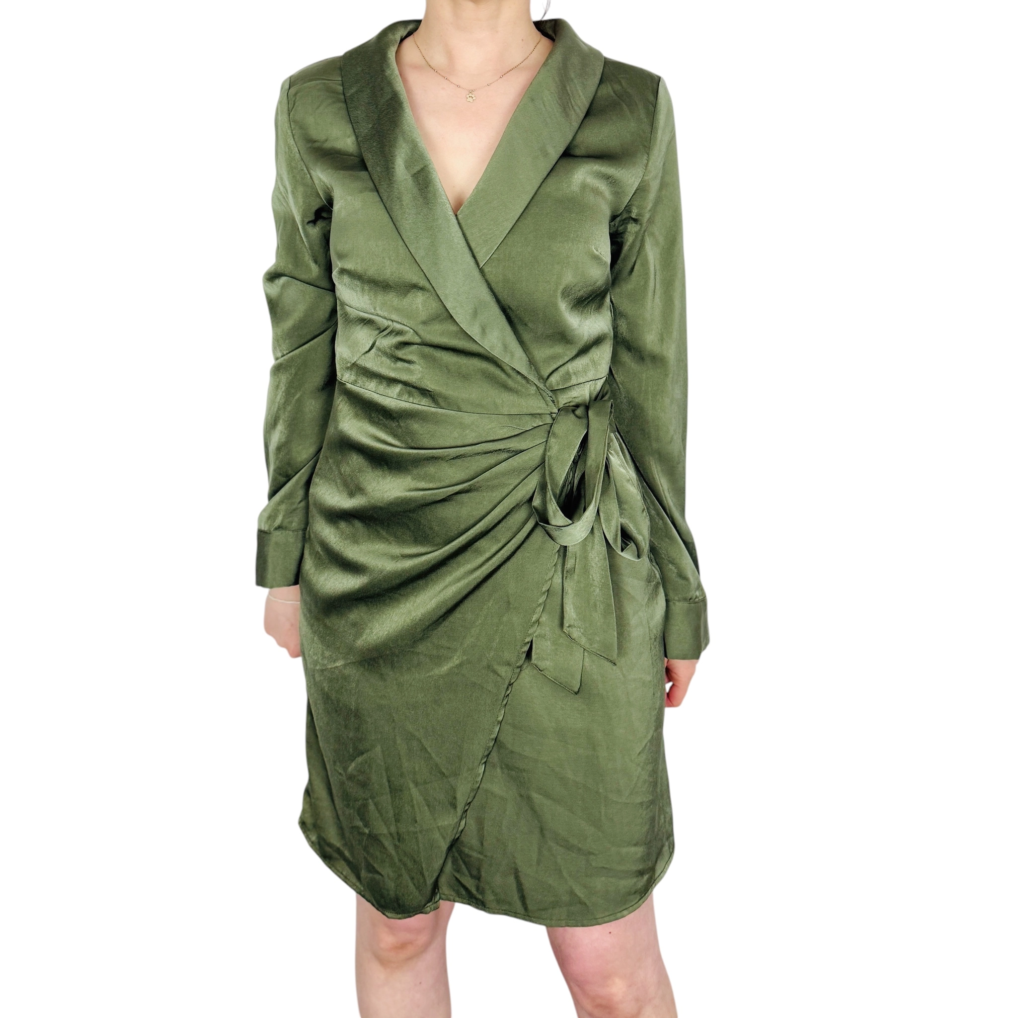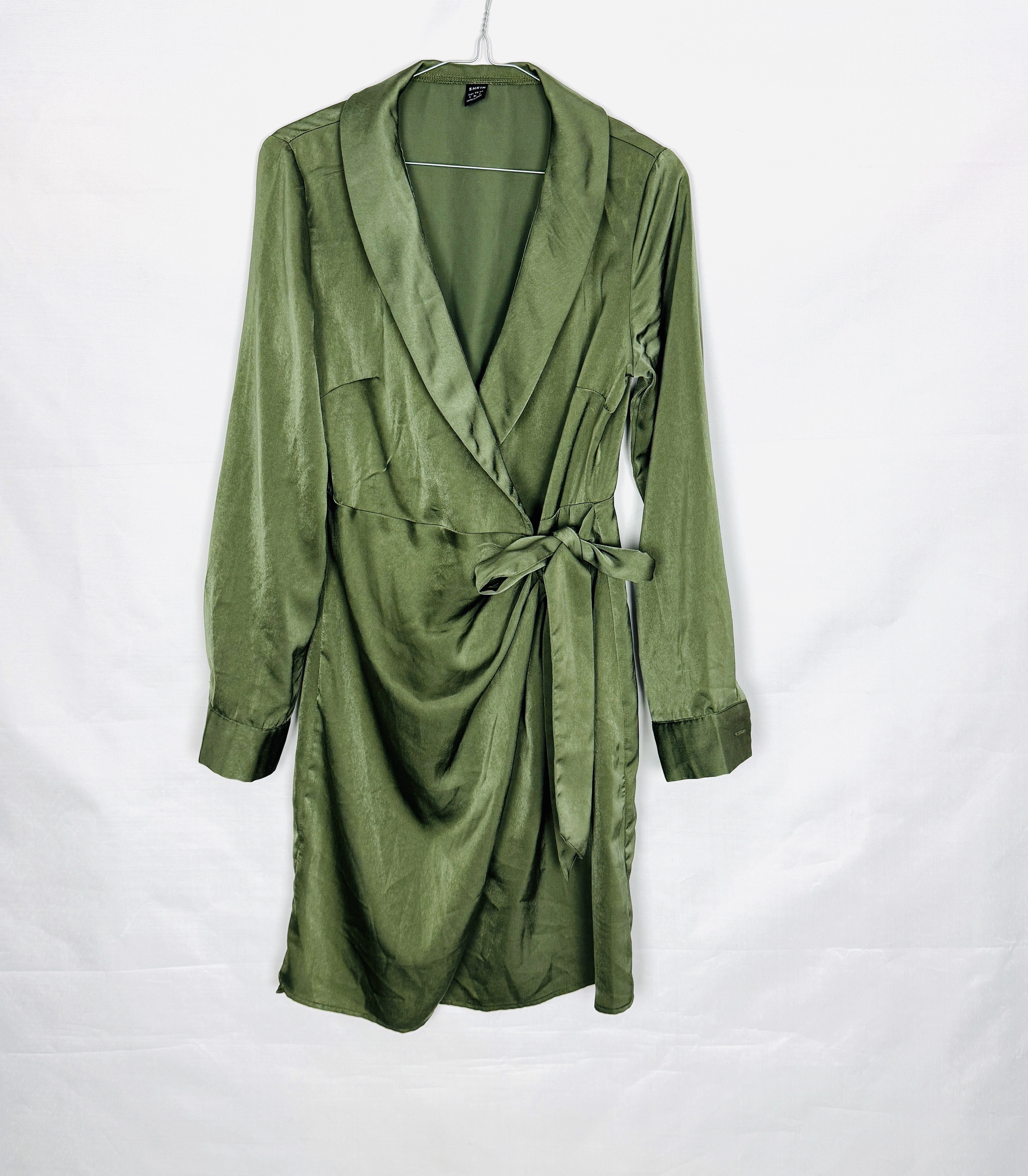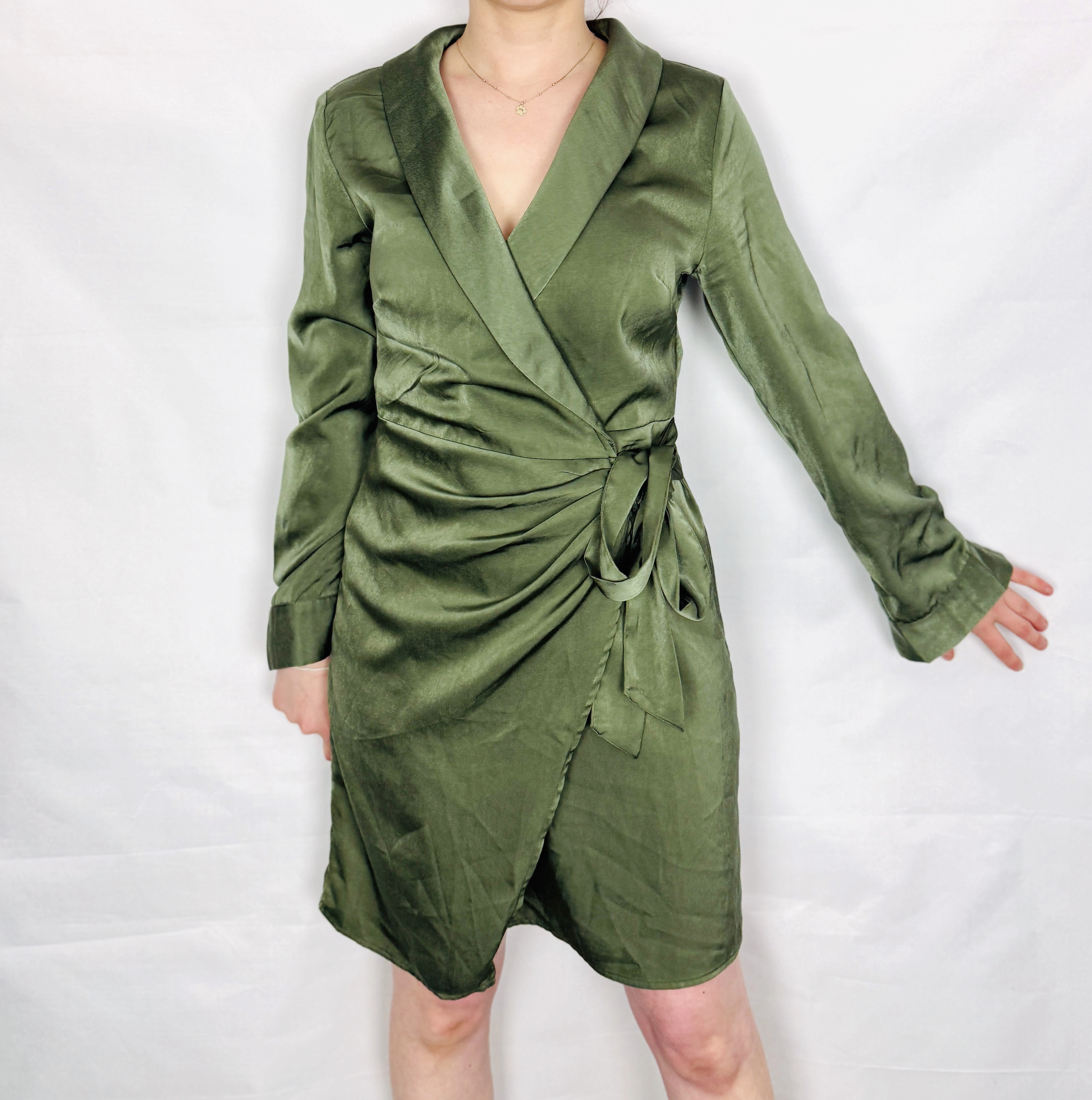 Zielona sukienka satynowa kopertowa S 36