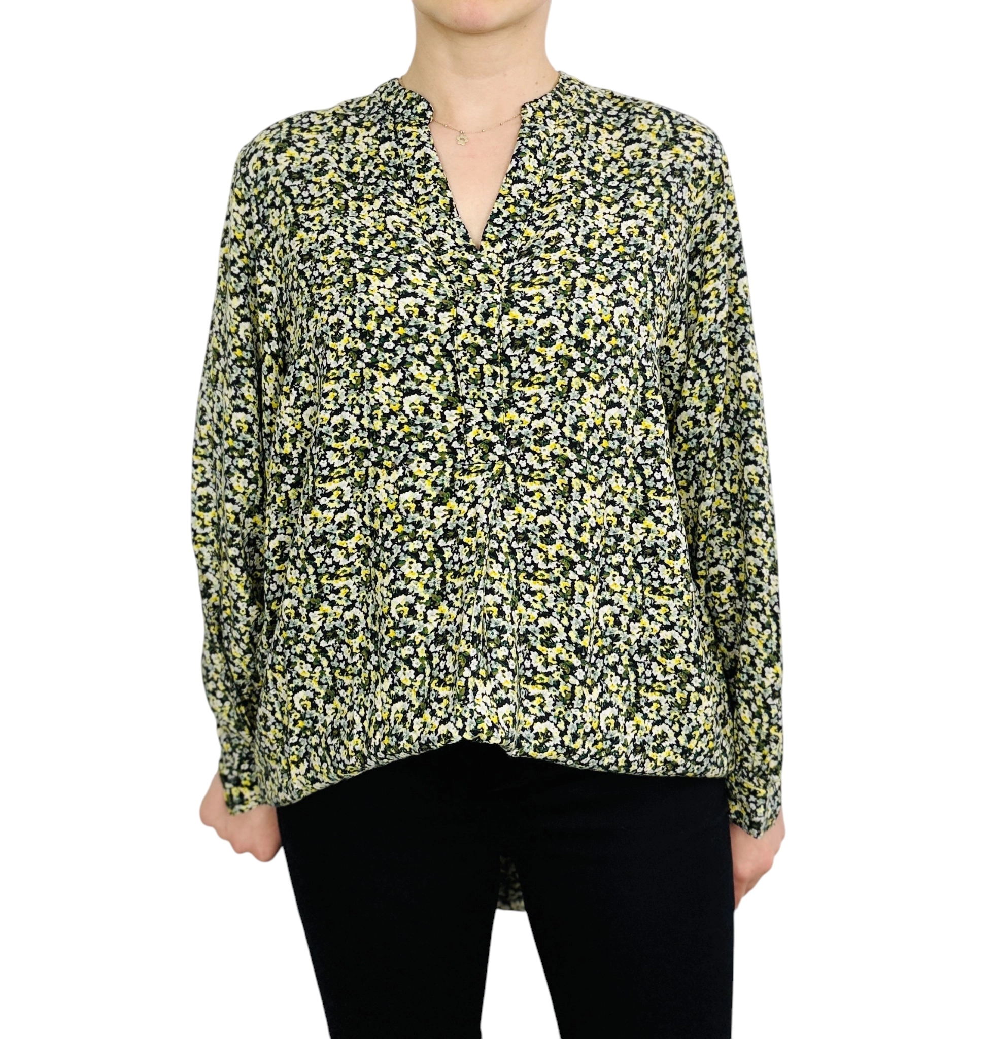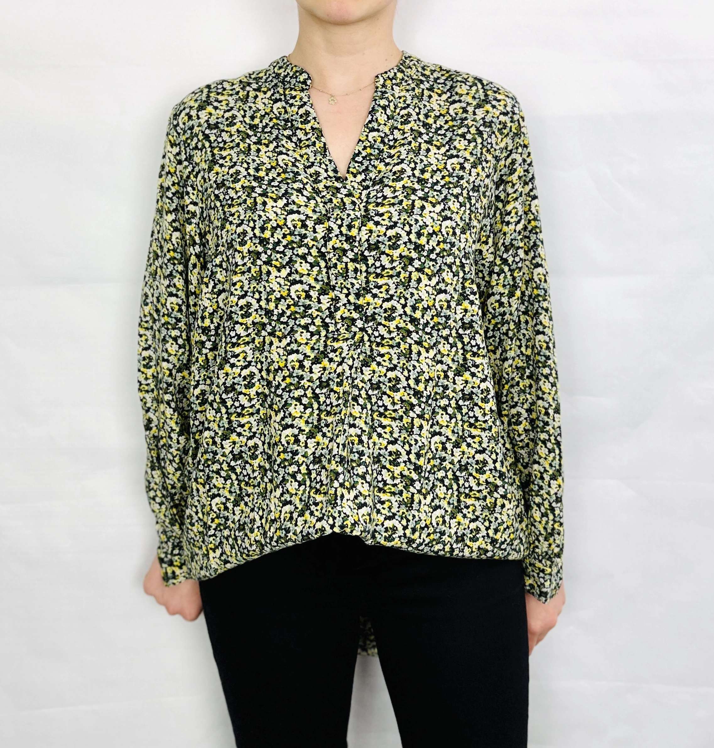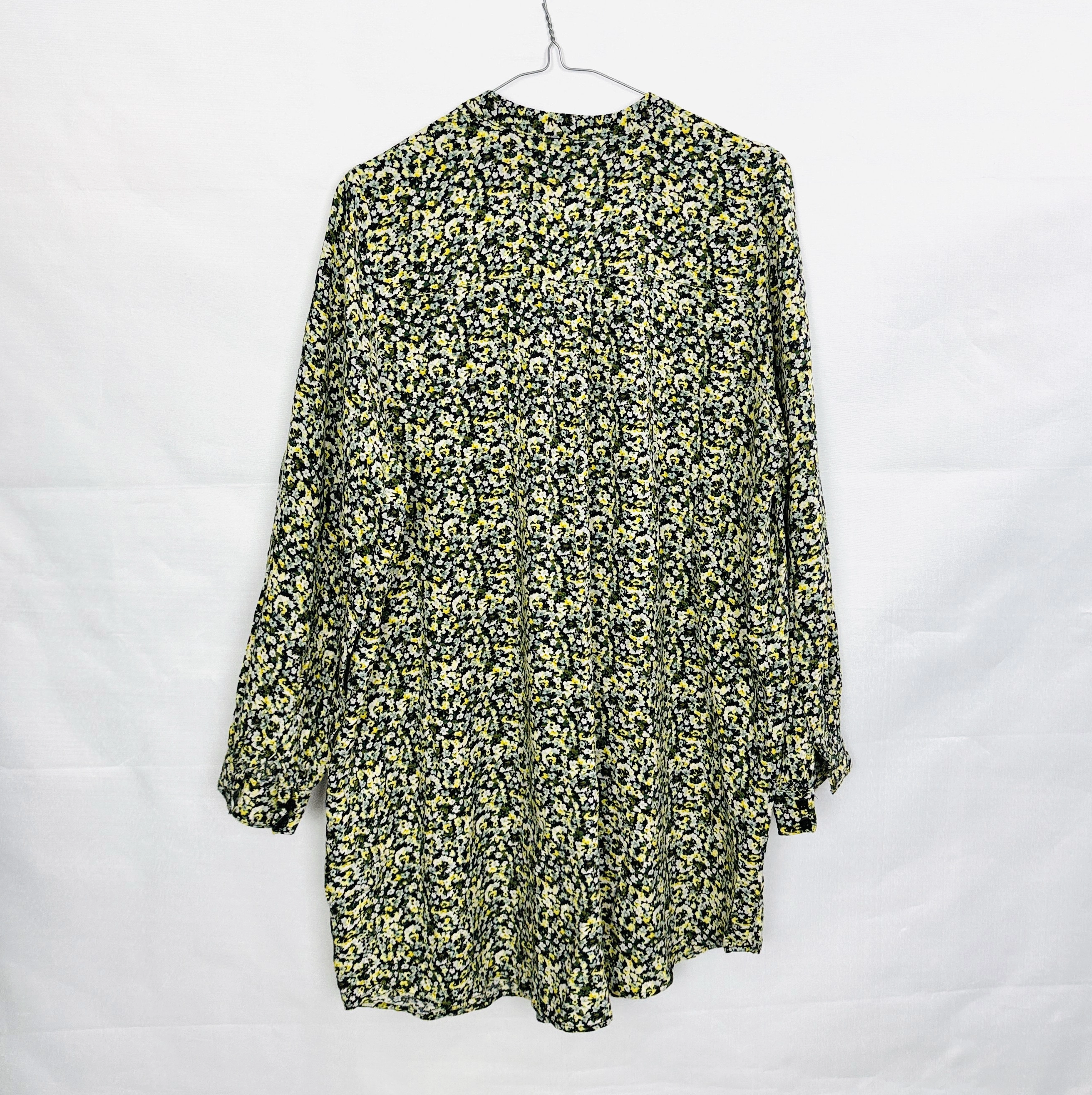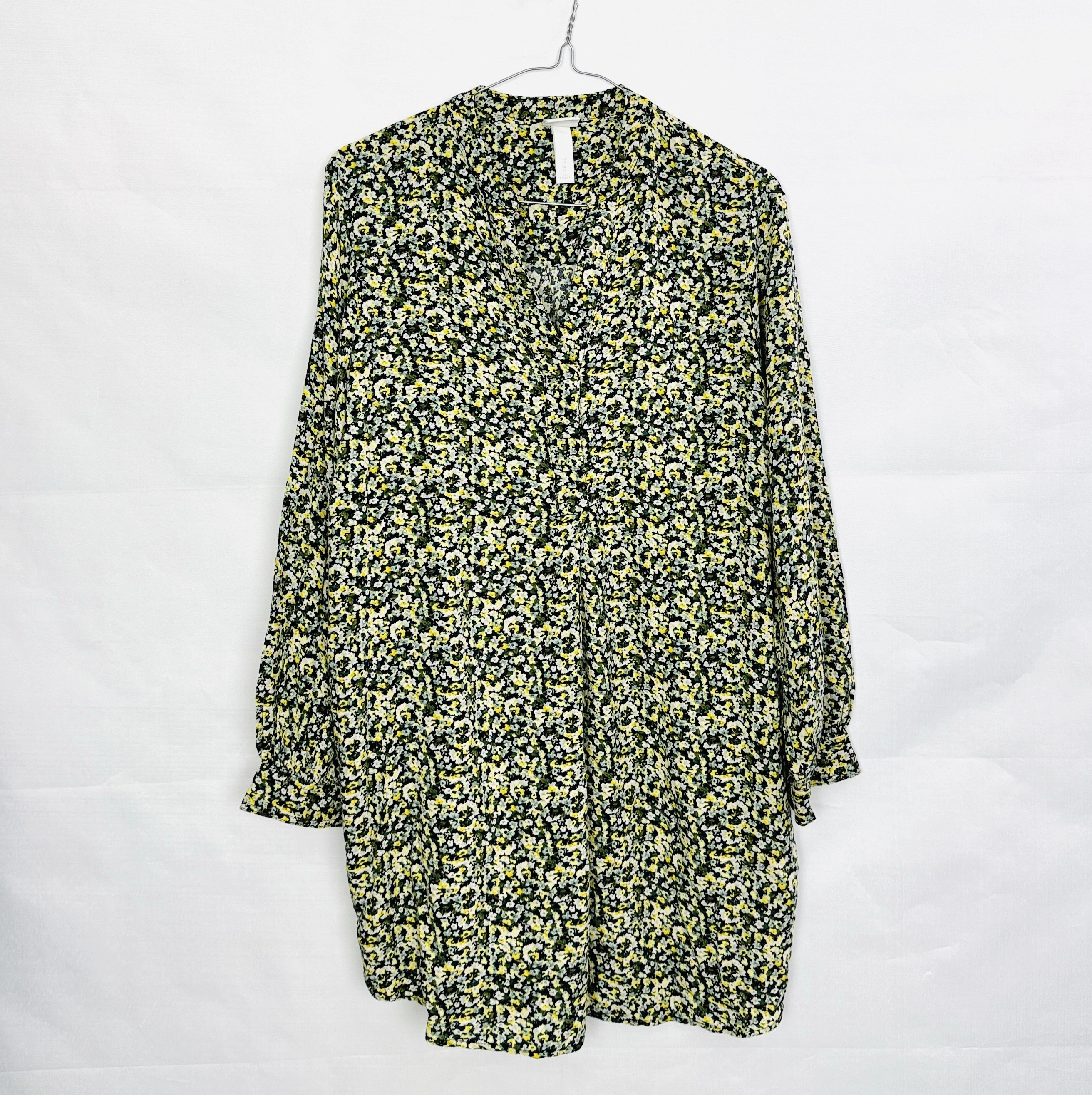 Zielona tunika w drobne kwiatuszki z dekoltem w serek XS 34