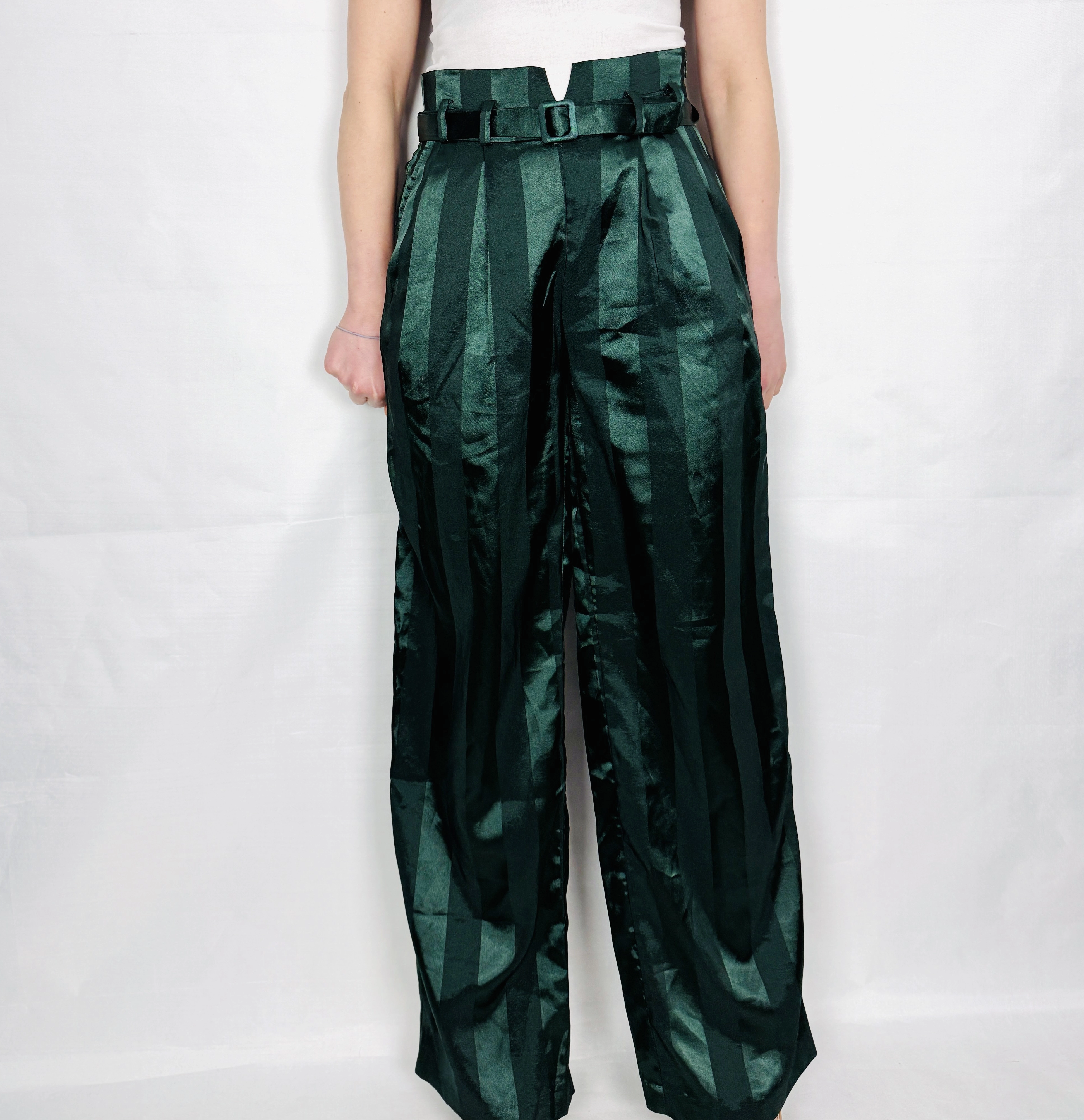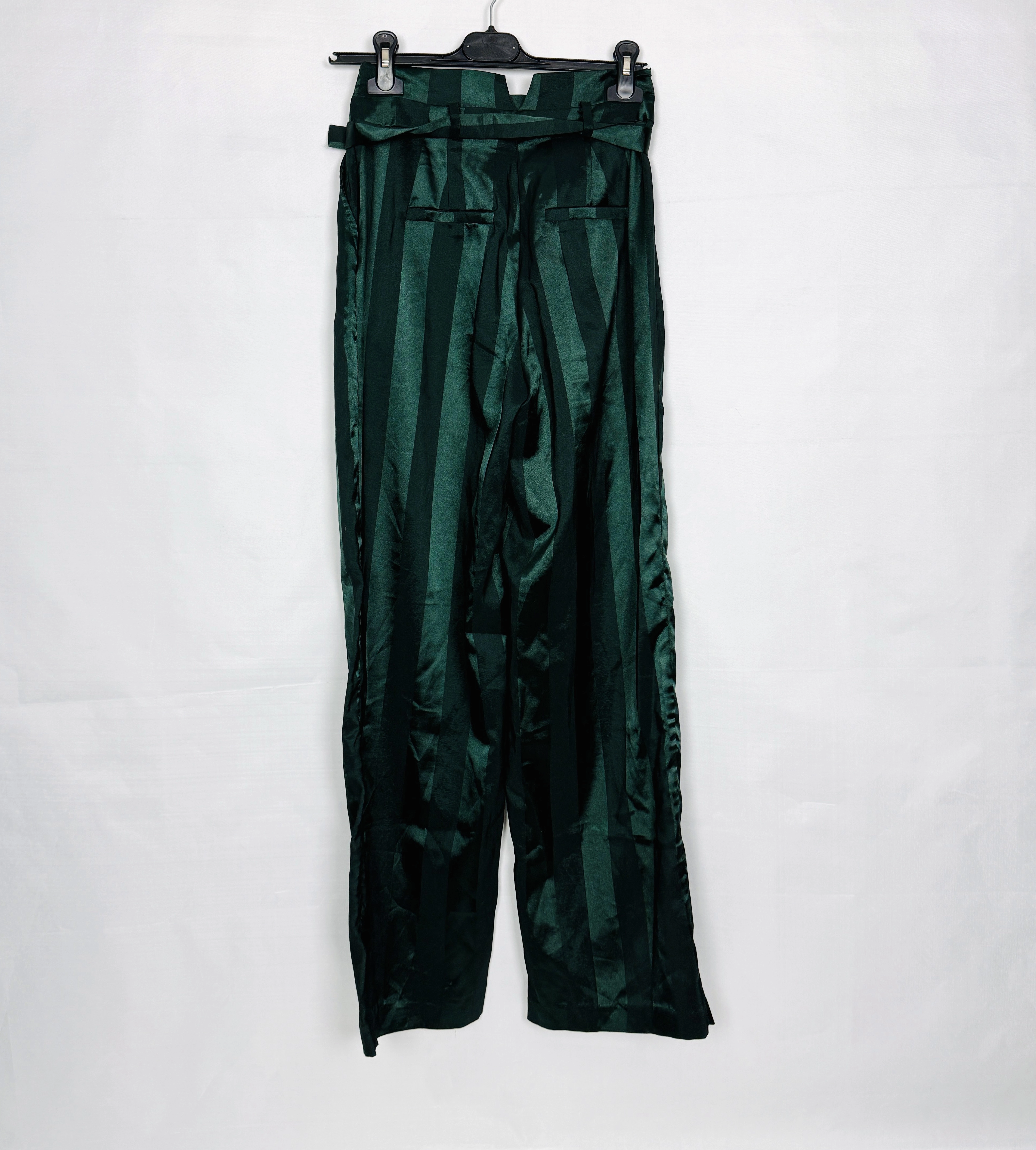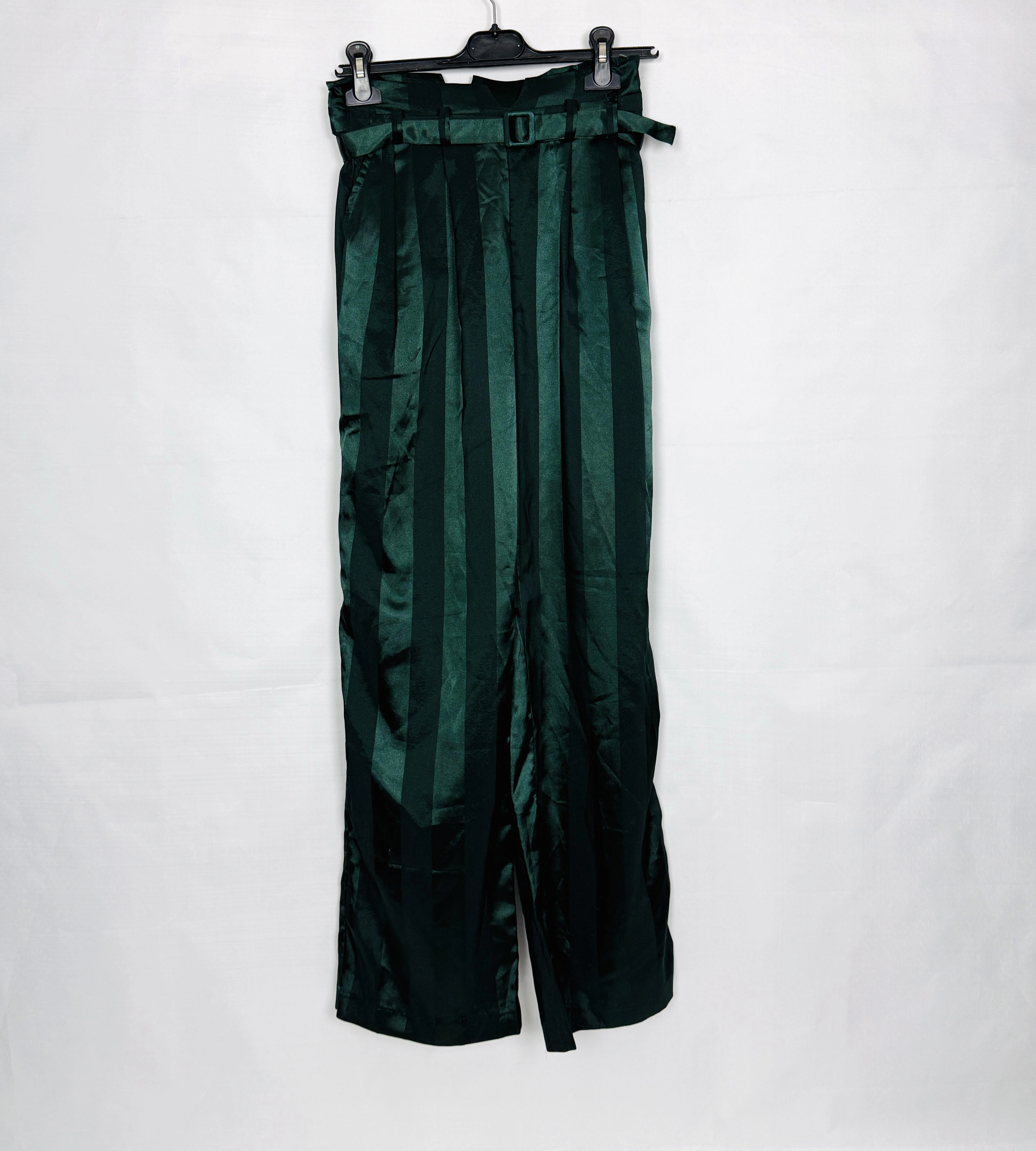 Zielone spodnie w pionowe pasy z paskiem XS 34