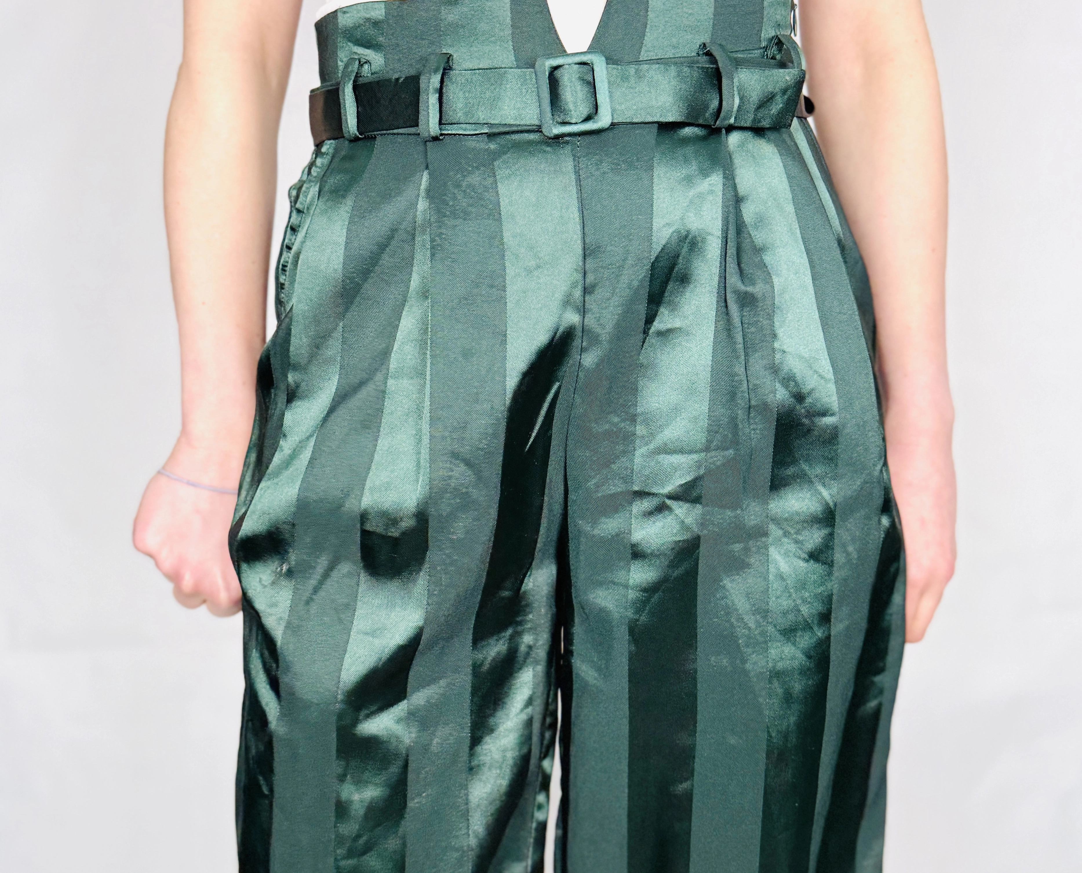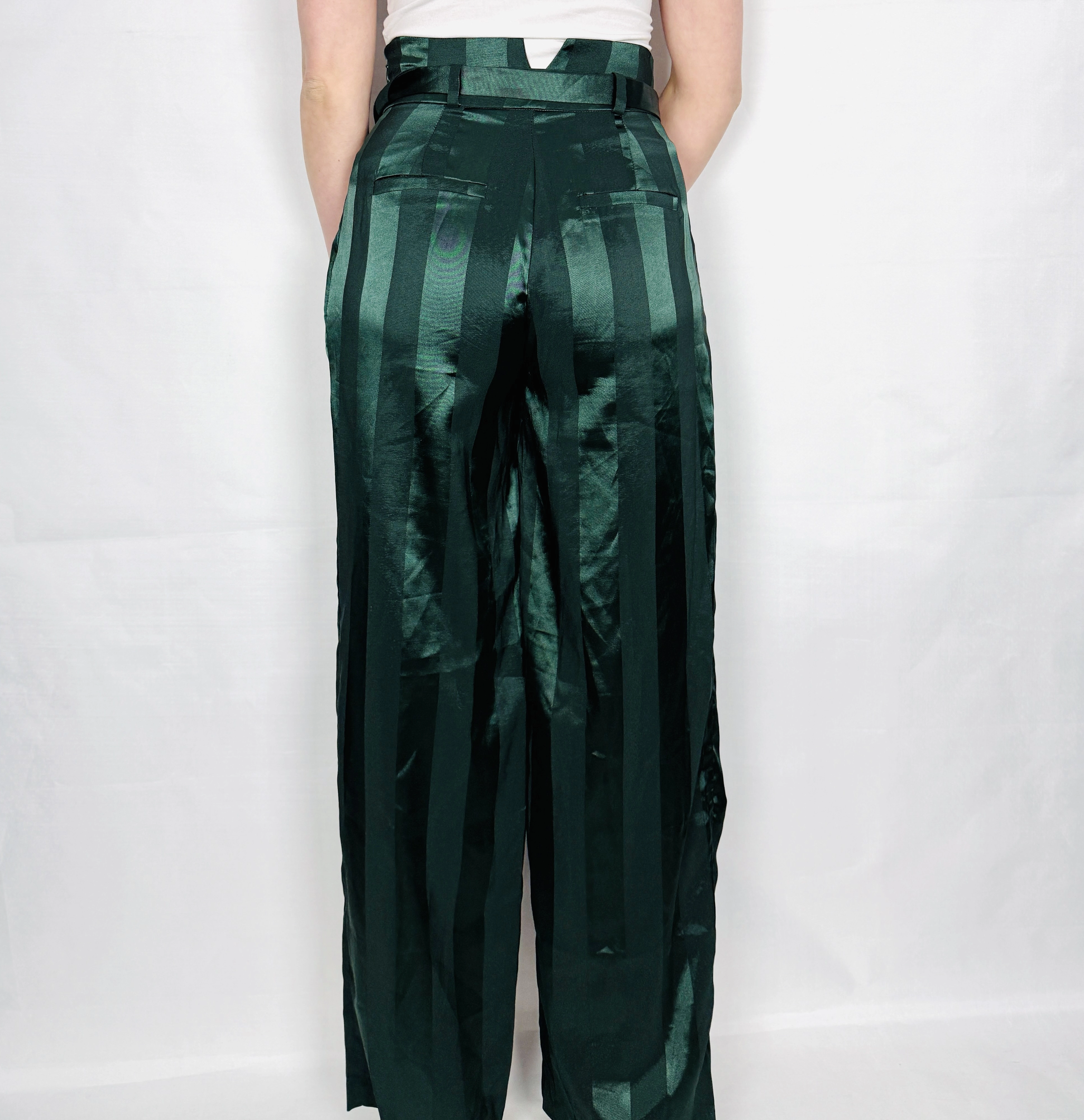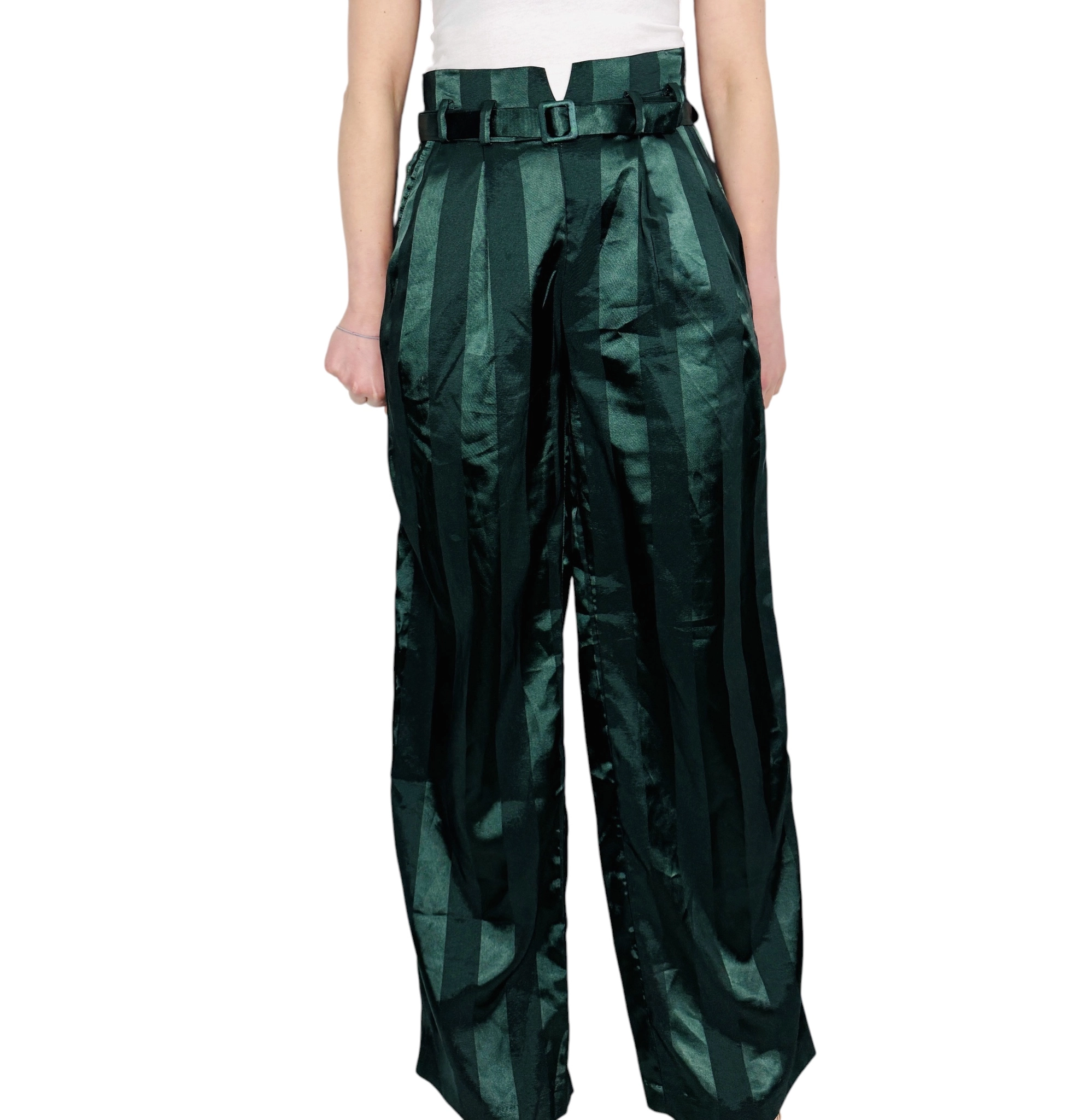 Zielone spodnie w pionowe pasy z paskiem XS 34