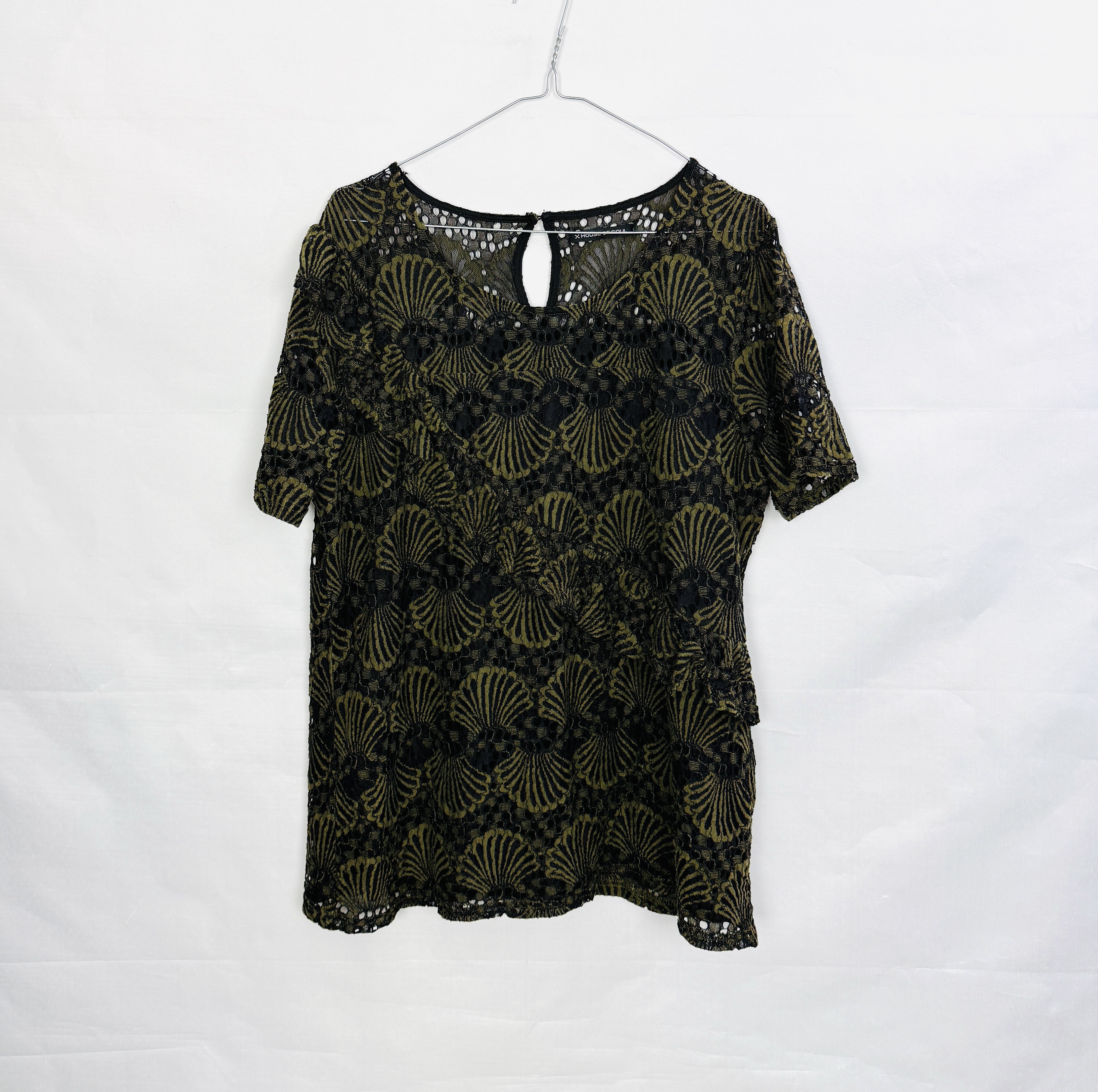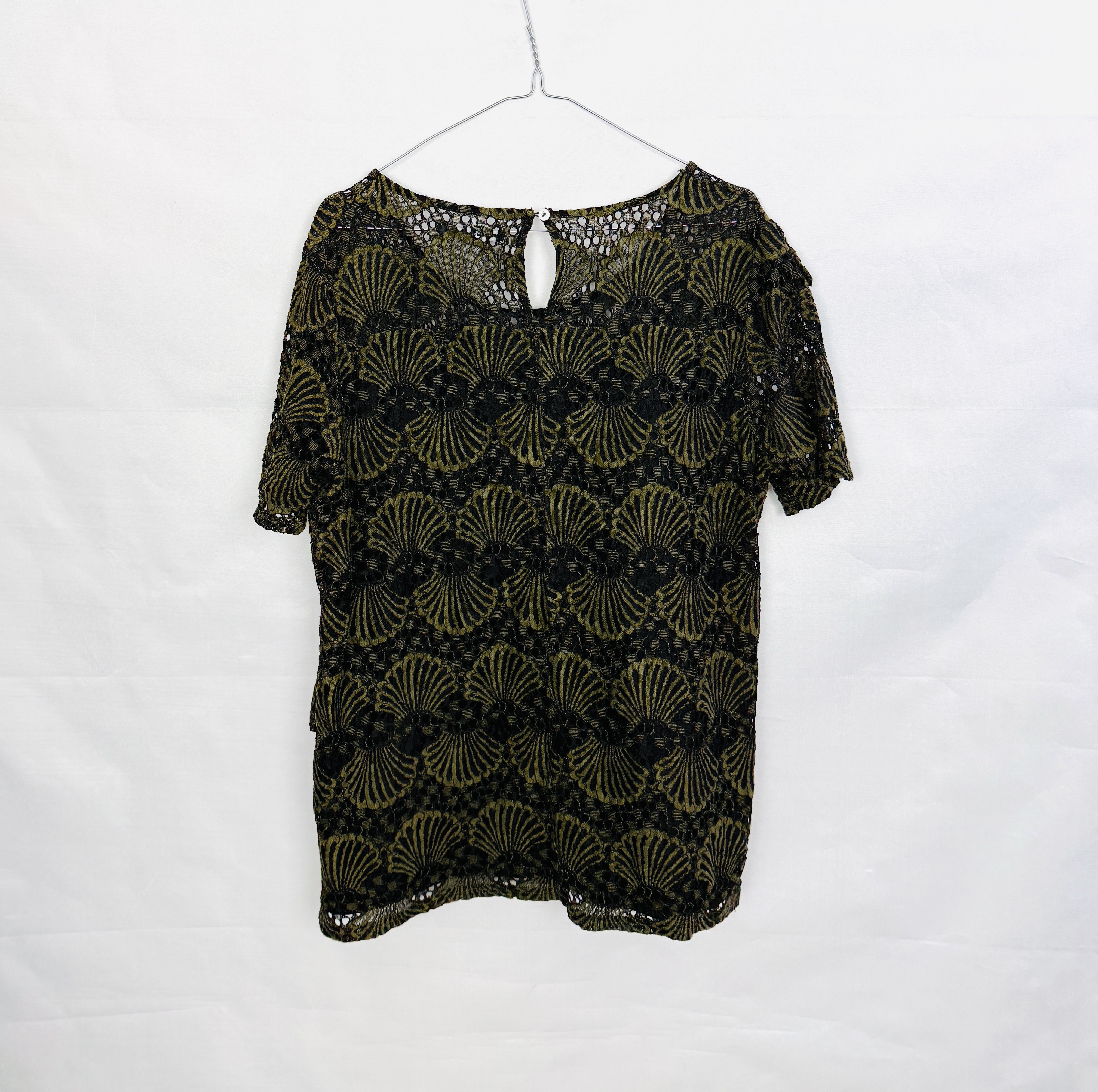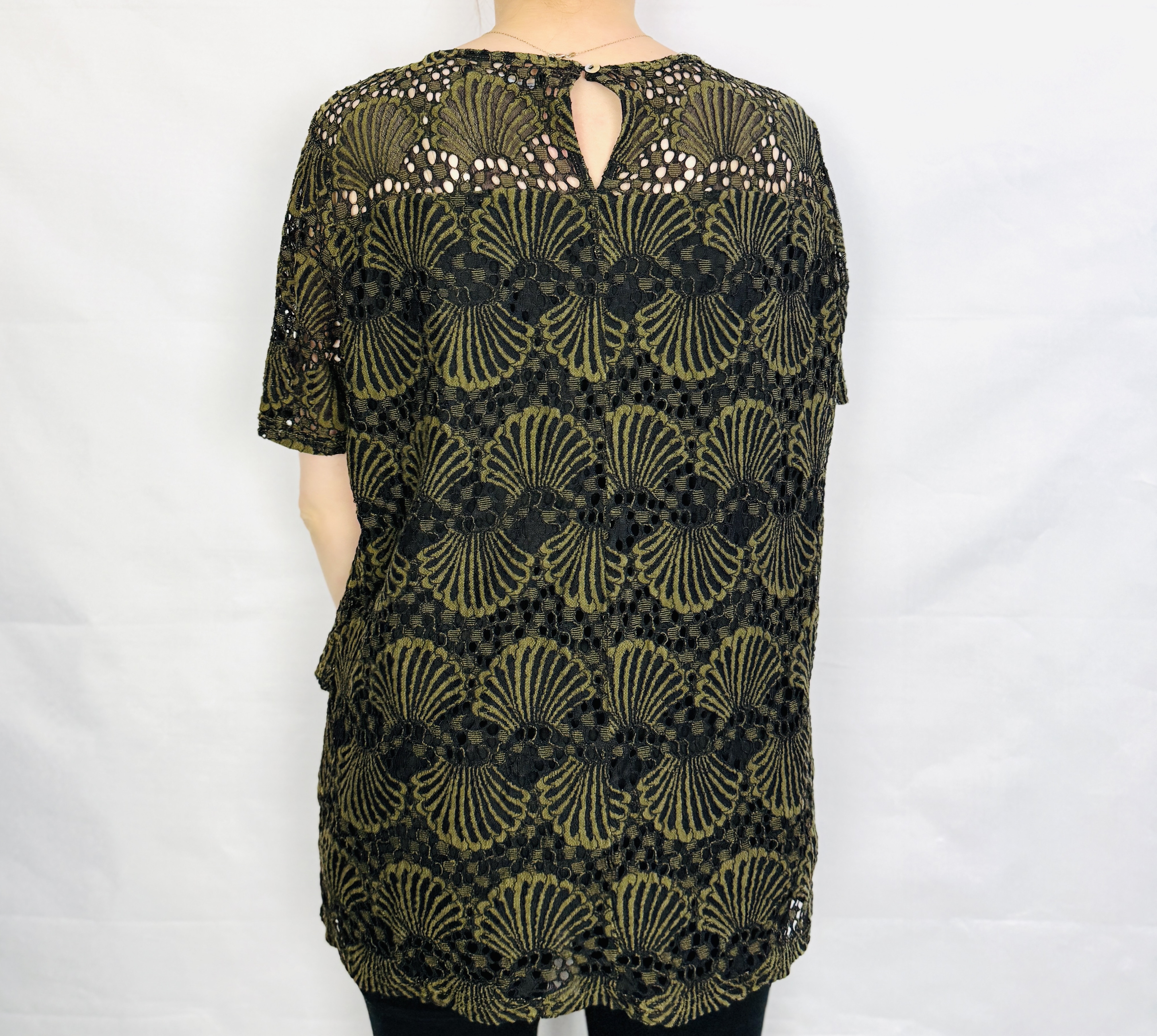 Zielono czarna bluzka koronkowa XXL 44