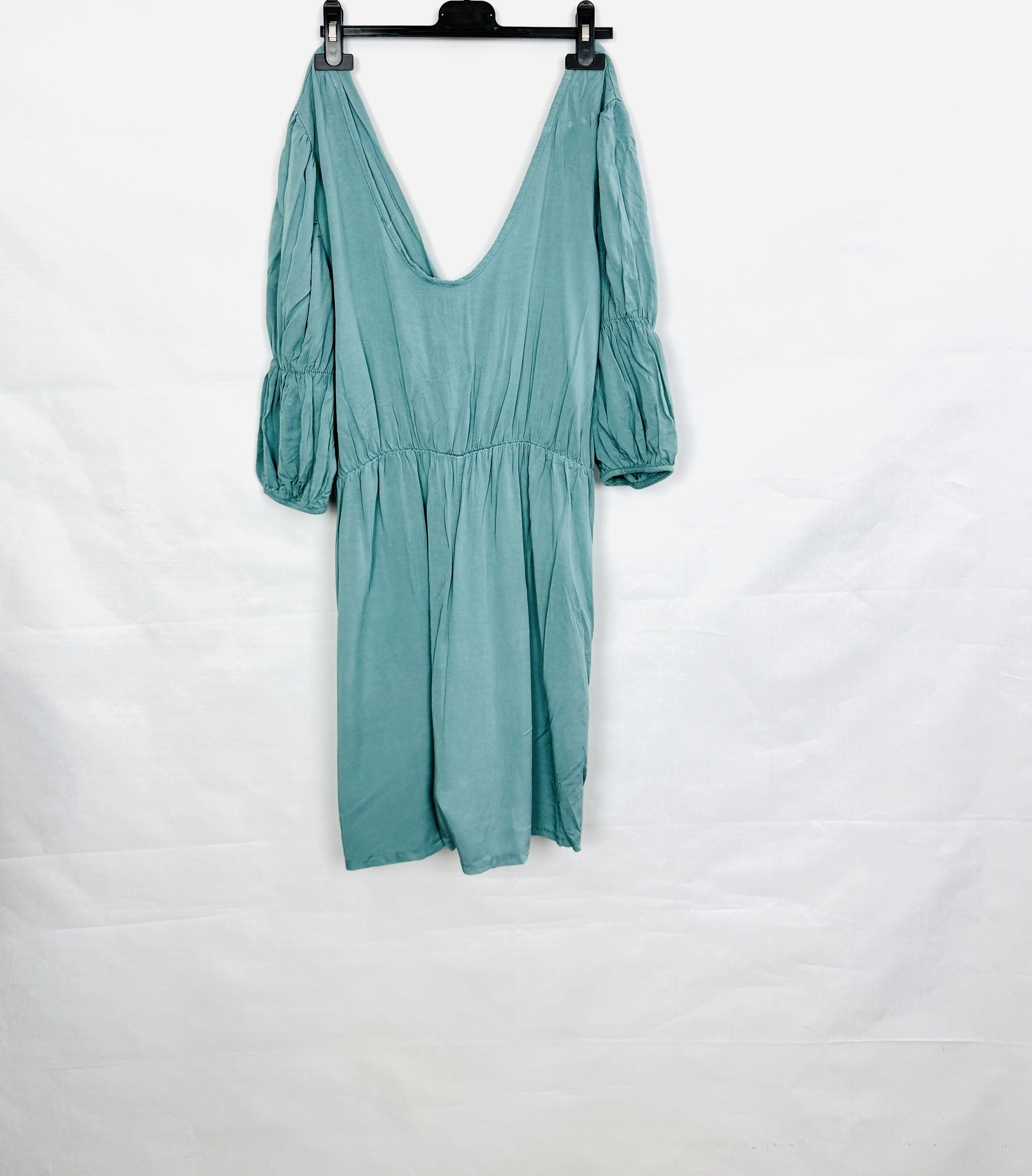 Ten zielony kombinezon to kwintesencja letniej świeżości i kobiecego wdzięku, który w jednej chwili tworzy kompletną i niezwykle stylową całość. Delikatny, przygaszony odcień zieleni przywodzi na myśl naturę i spokój, nadając stylizacji bardzo naturalny, a jednocześnie wyrafinowany charakter. To ubranie, które łączy w sobie swobodę z nutą romantyzmu, idealnie wpisując się w estetykę nowoczesnej elegancji w wydaniu casualowym. Dzięki swojej unikalnej formie kombinezon przyciąga uwagę, oferując jednocześnie niesamowitą wygodę i lekkość, która jest nieoceniona podczas ciepłych, słonecznych dni.
