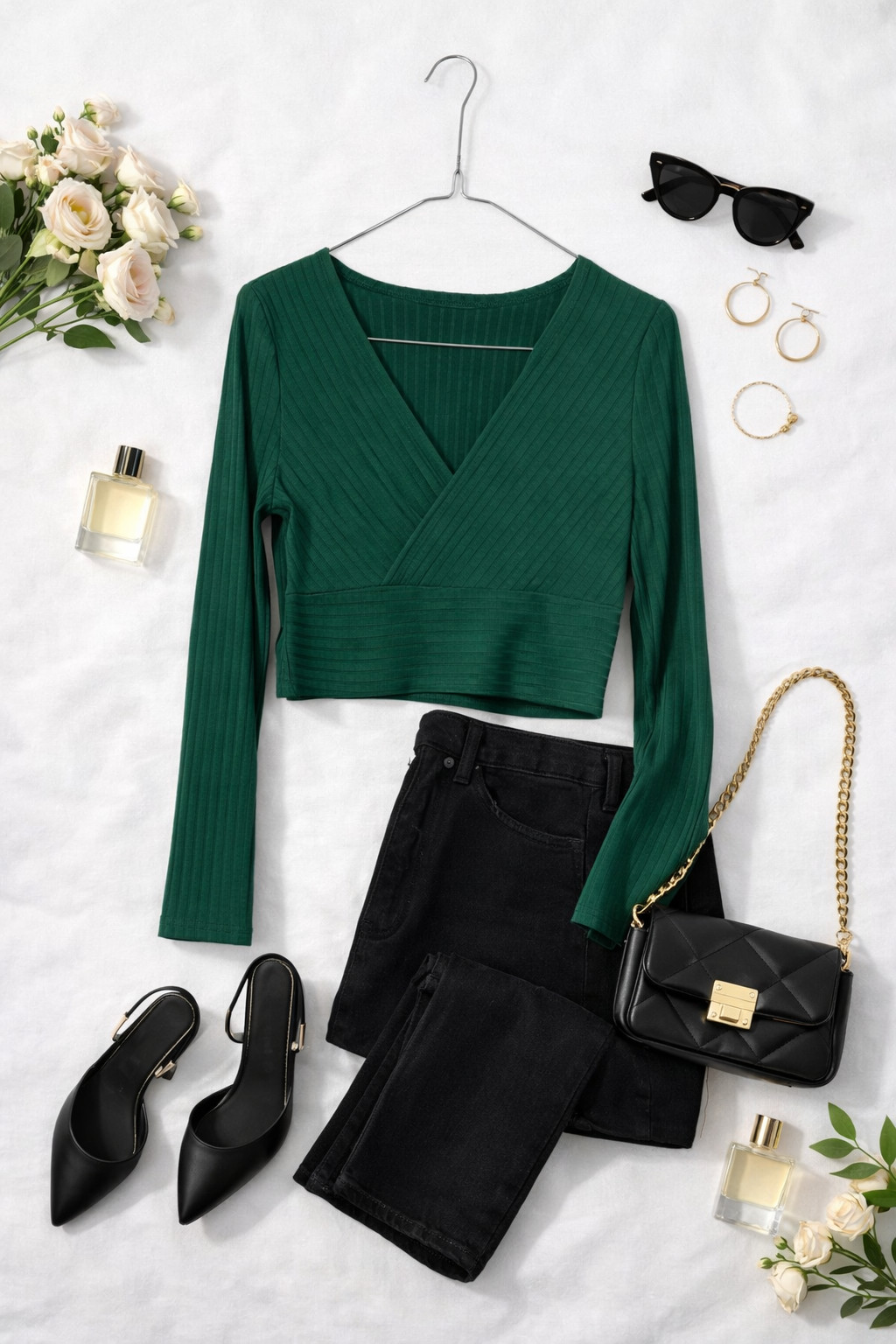 W stylizacjach top fantastycznie sprawdzi się z wysokim stanem jeansów w stylu mom lub skinny, z czarnymi cygaretkami do pracy, a także z ołówkową spódnicą i marynarką na spotkanie czy wieczór. Kolorystyka pozwala na udane zestawienia z czernią, bielą, beżem i klasycznym denimem; dodatki w złotej tonacji podkreślą ciepło zieleni i dodadzą całości szykownego blasku. To uniwersalny, a zarazem wyrazisty element garderoby dla kobiet ceniących elegancję połączoną z codzienną wygodą.