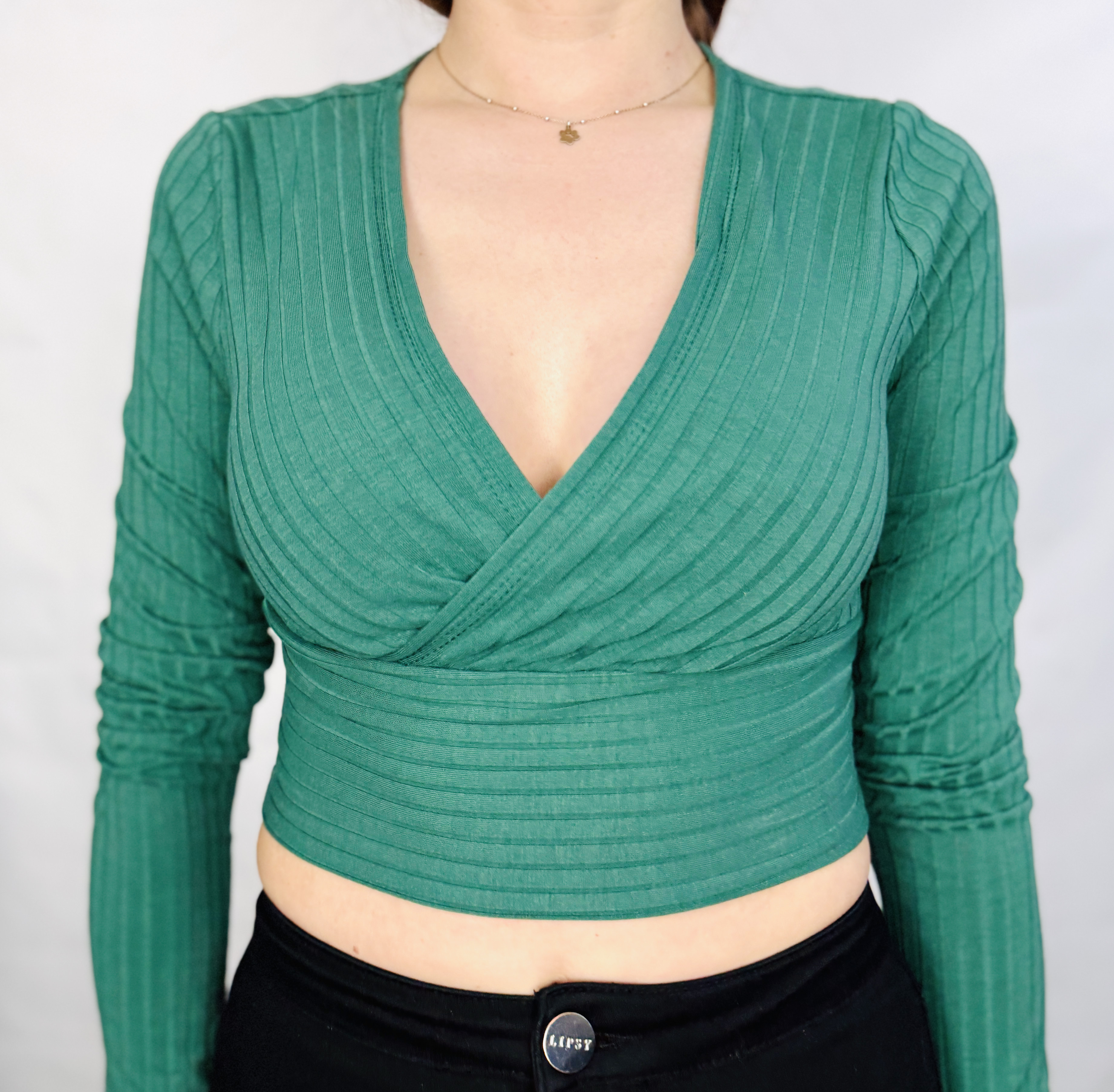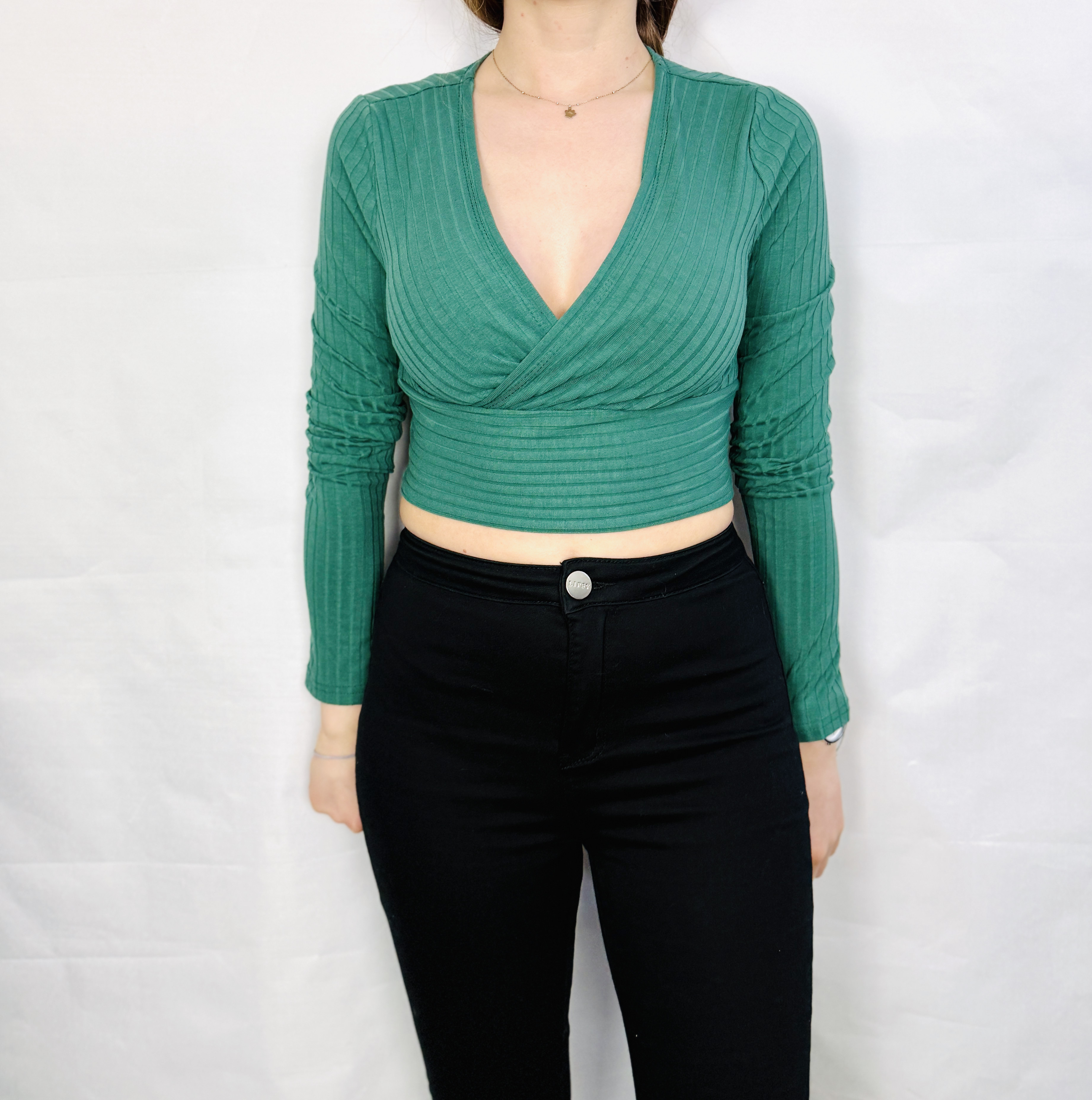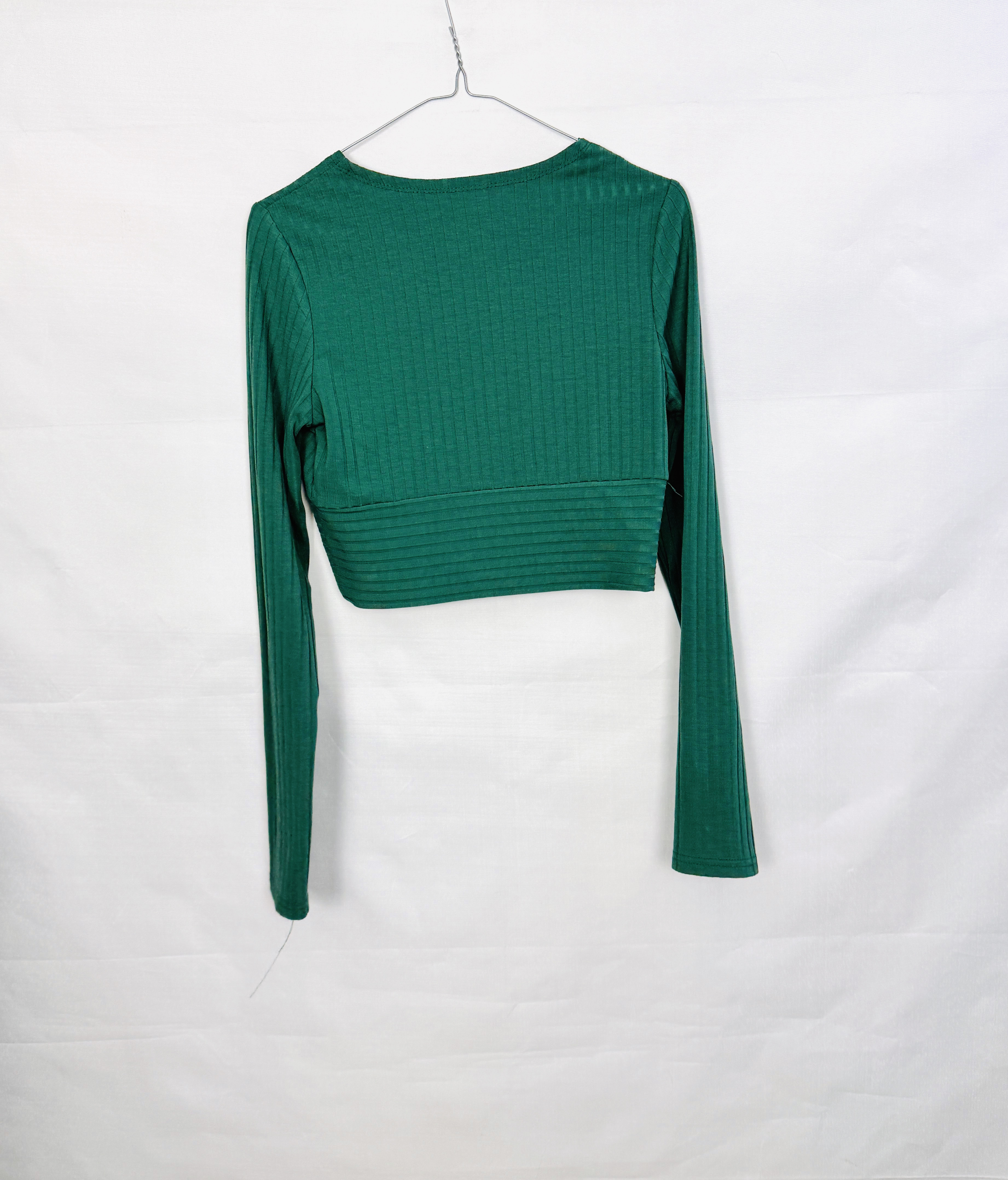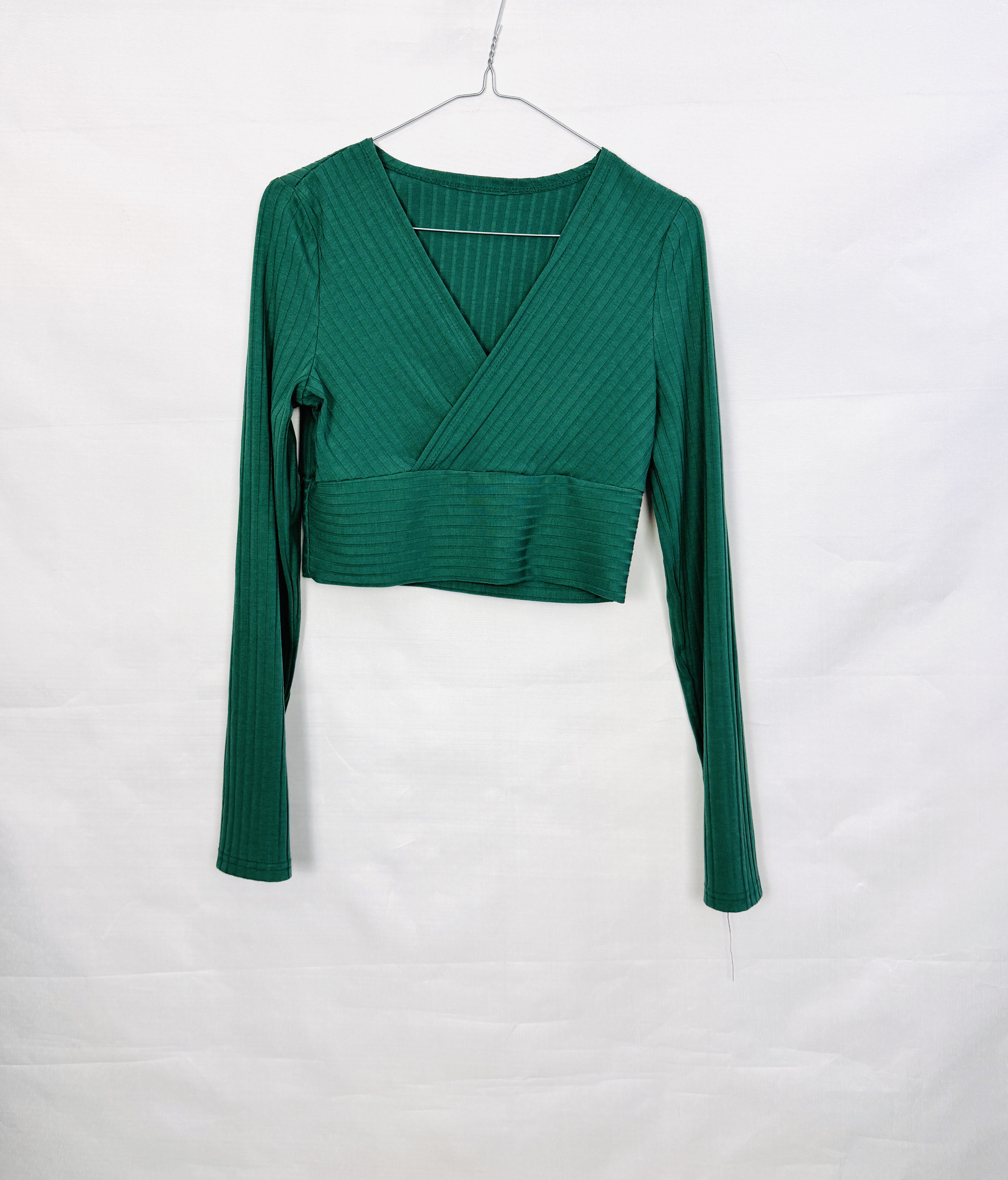 Zielony top kopertowy z prążkowanej dzianiny S 36