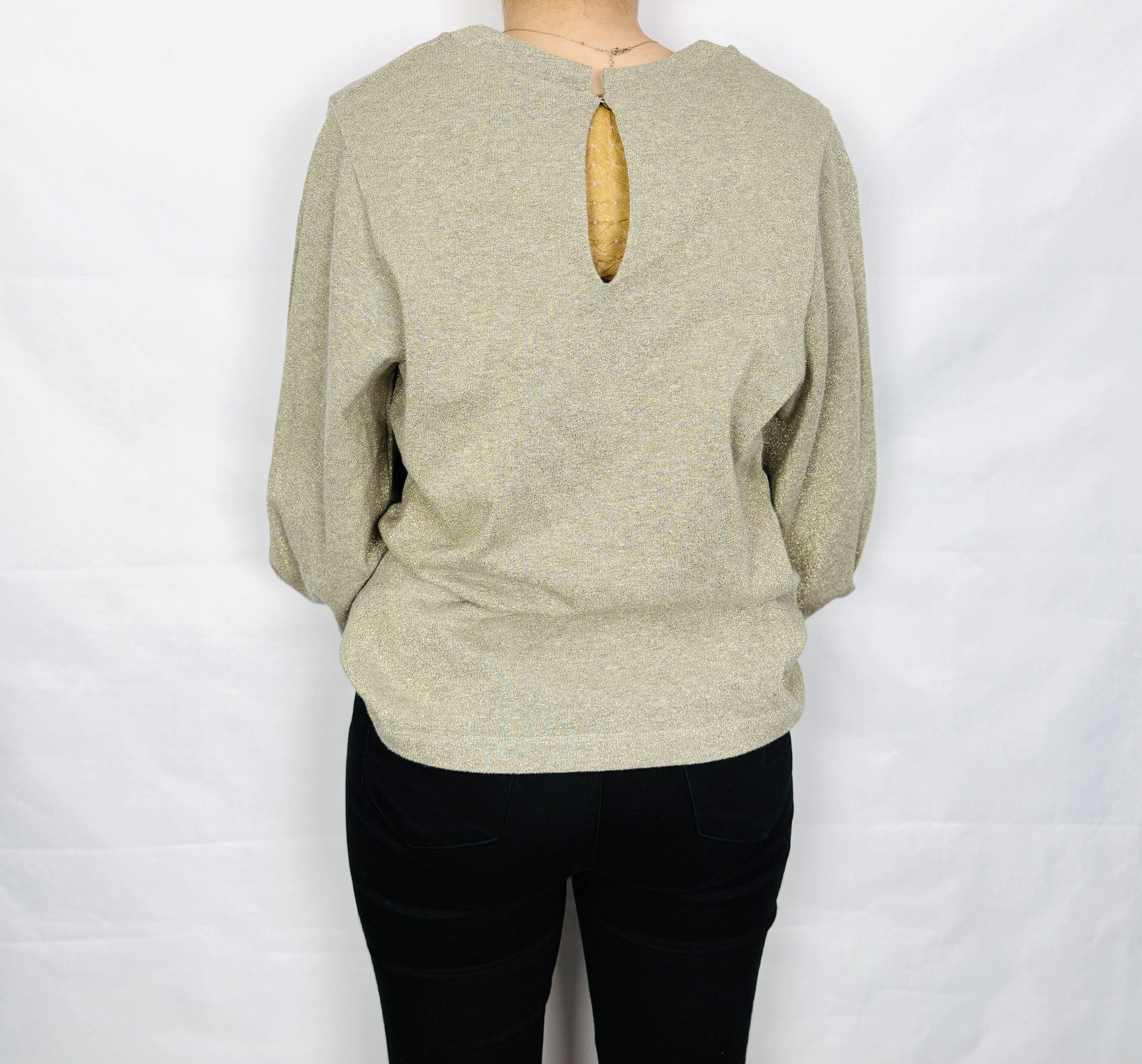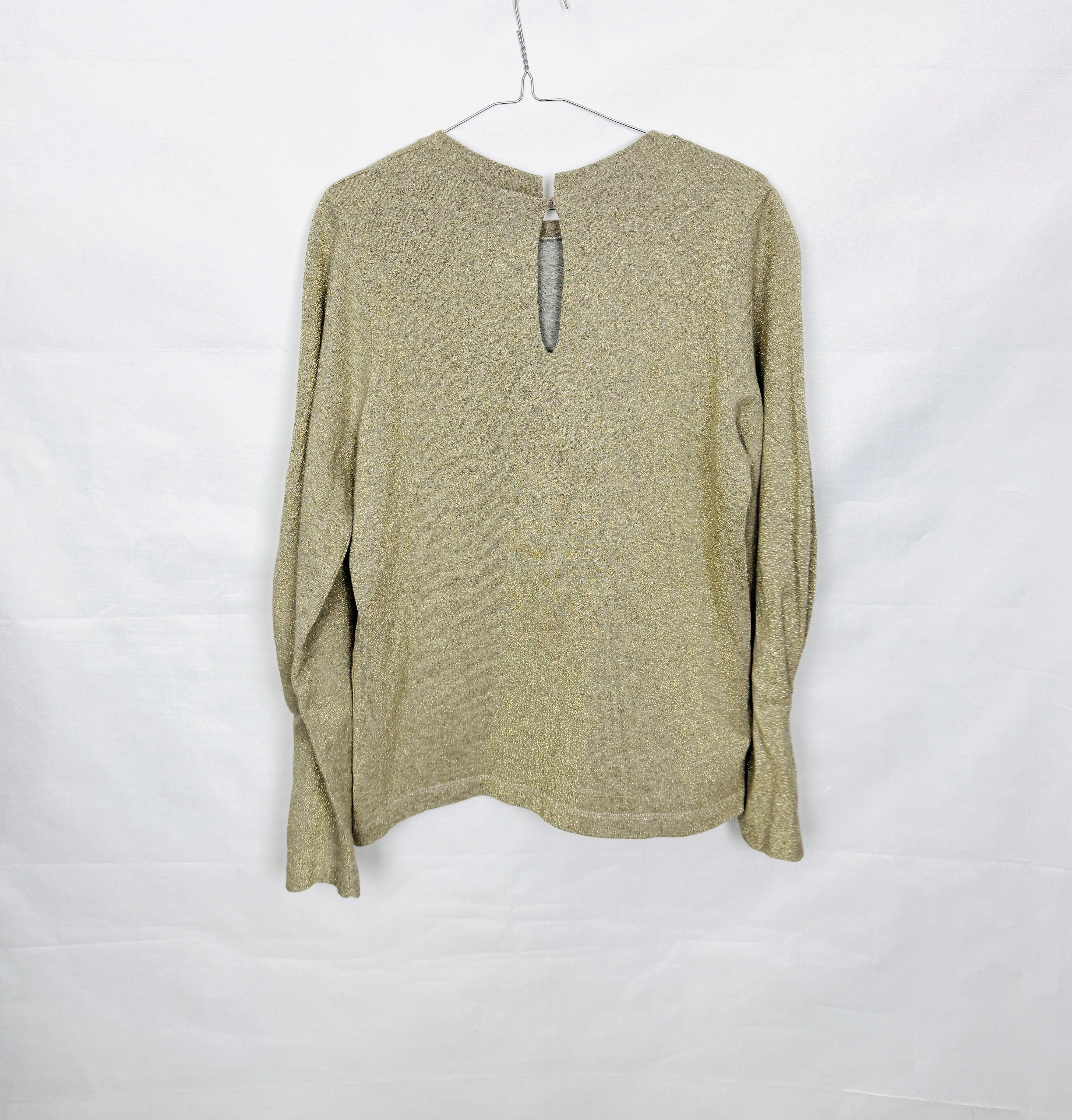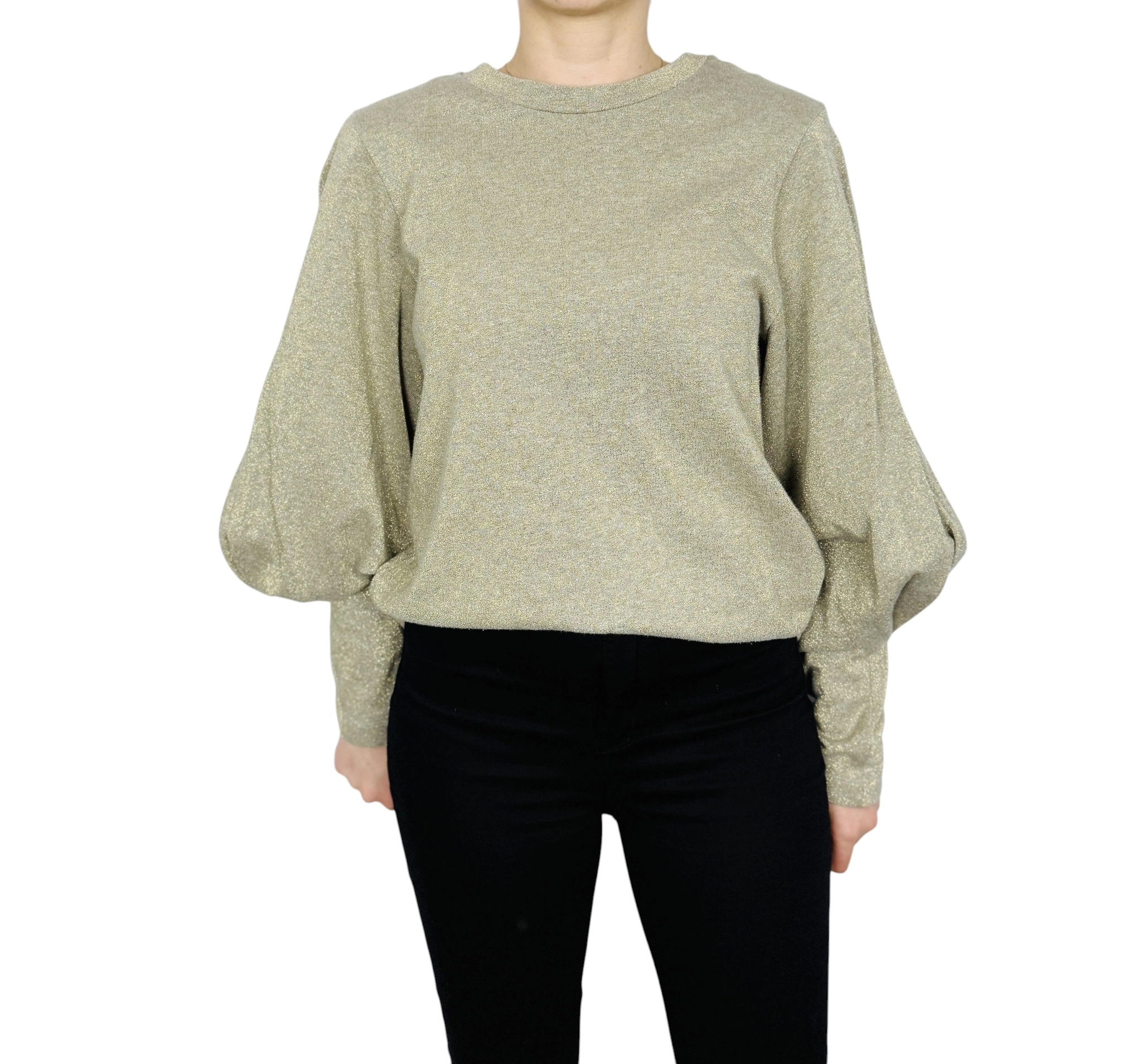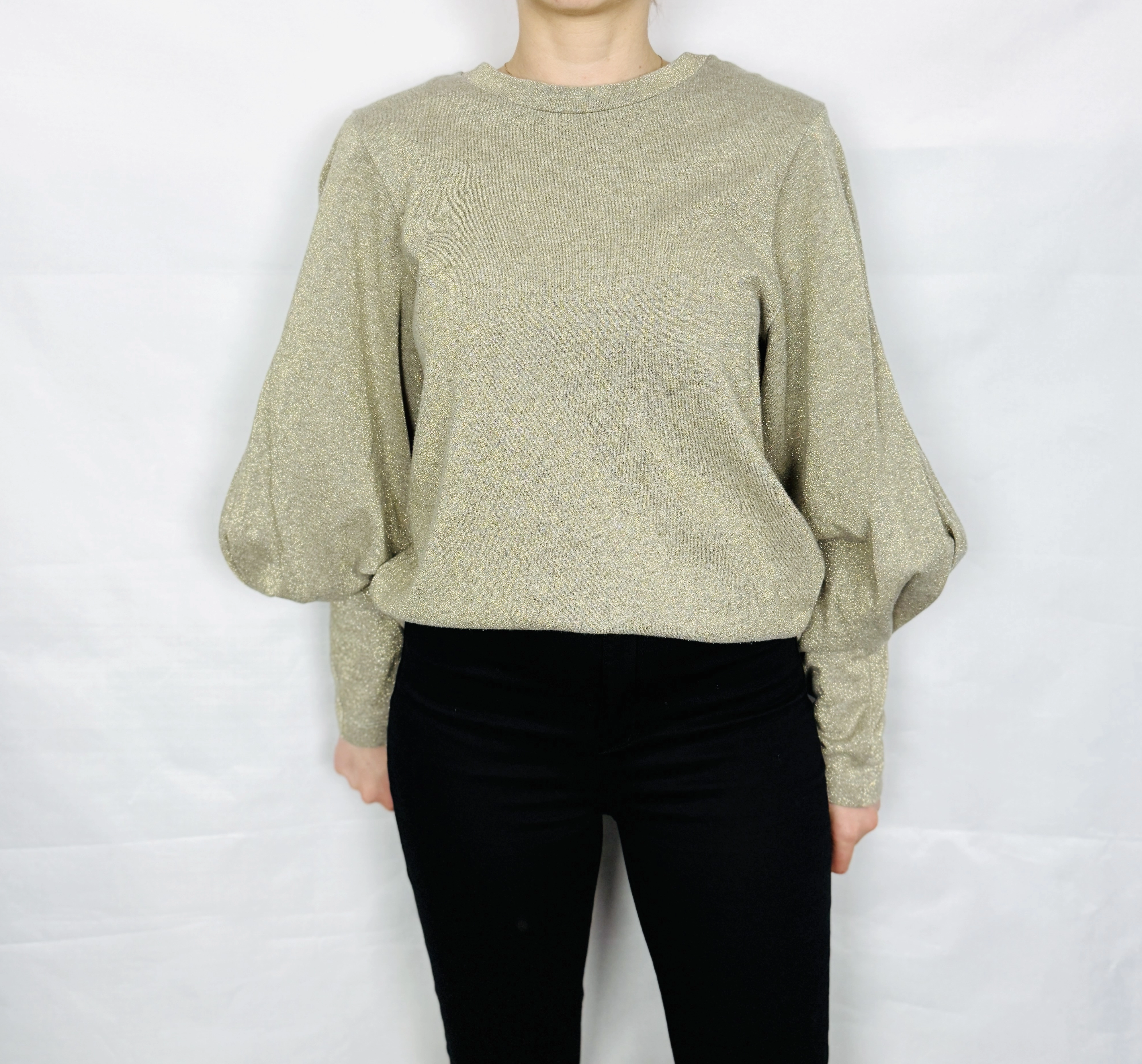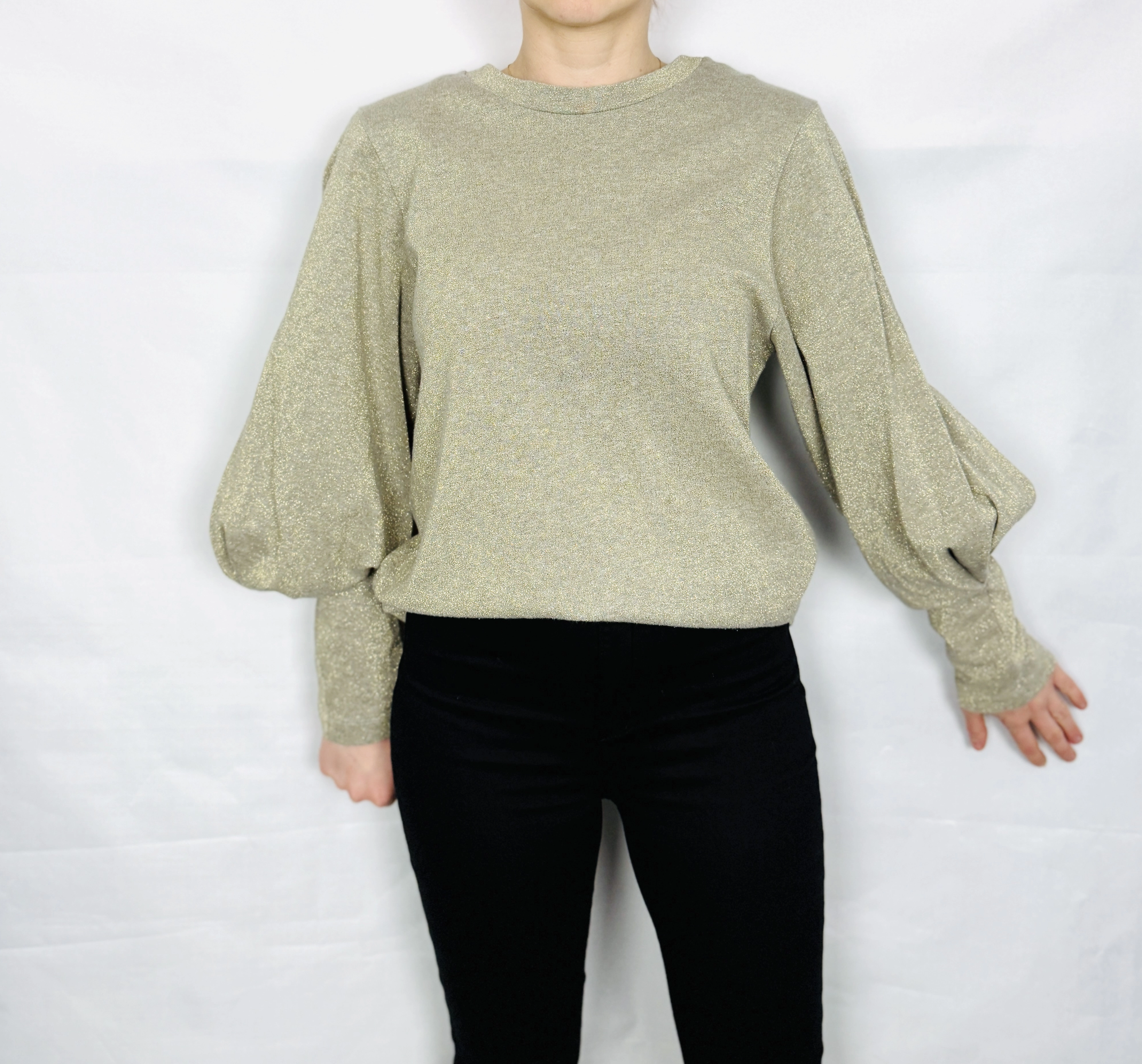Złota brokatowa bluzka z bufiastymi rękawami M 38
