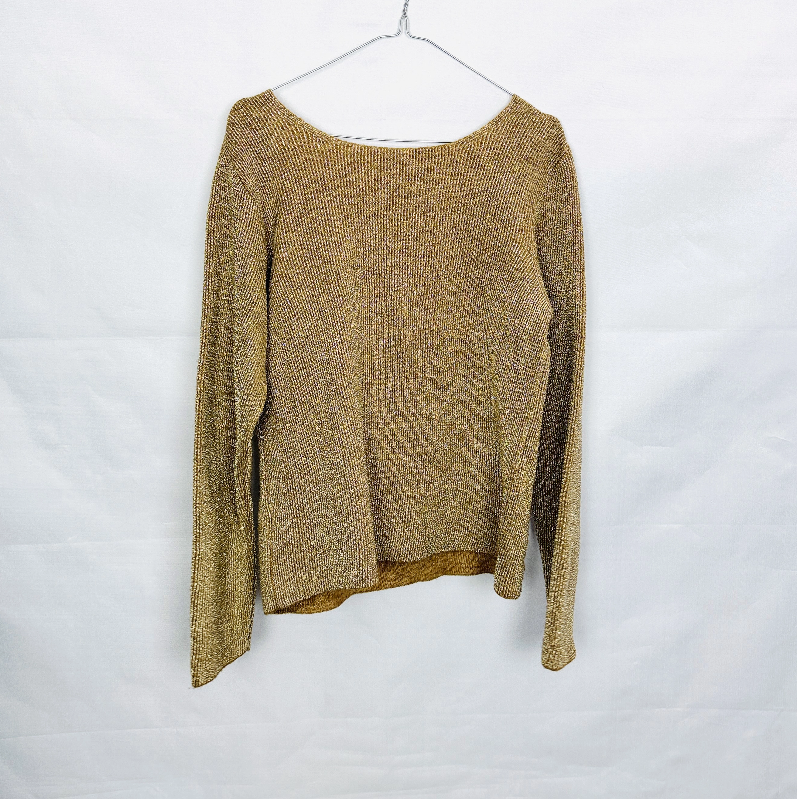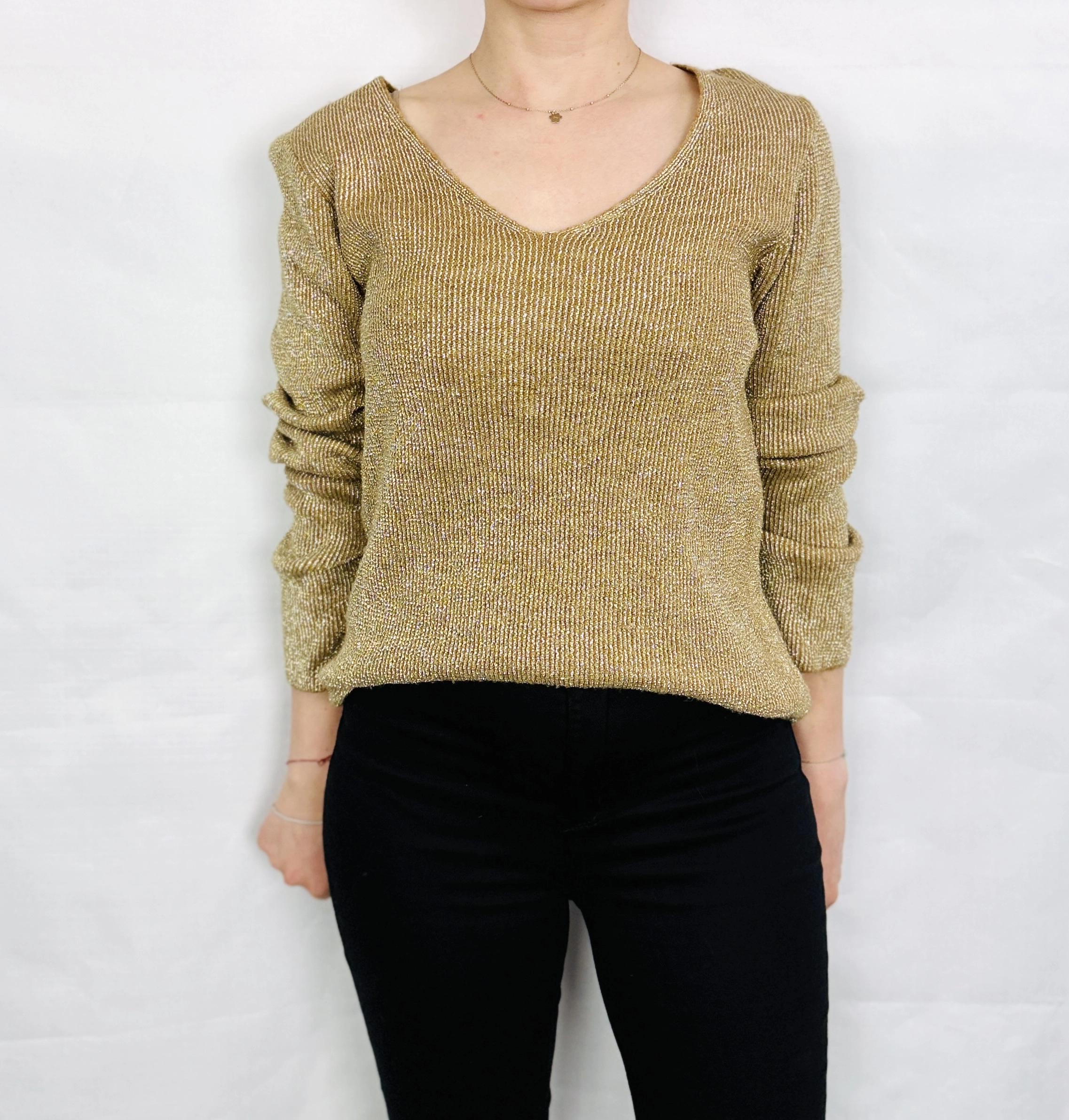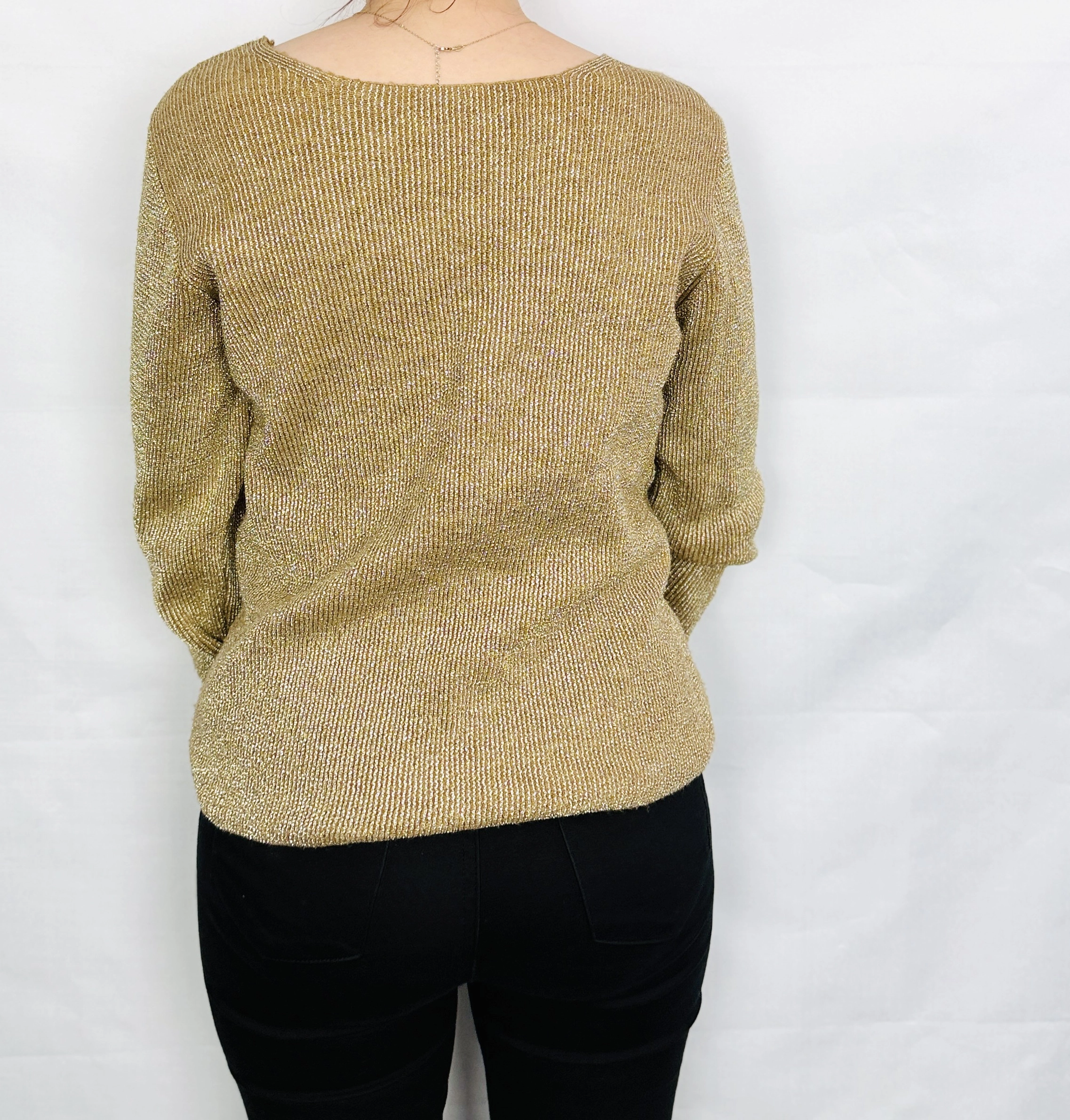 Złoty prążkowany sweterek z metalicznym połyskiem M 38