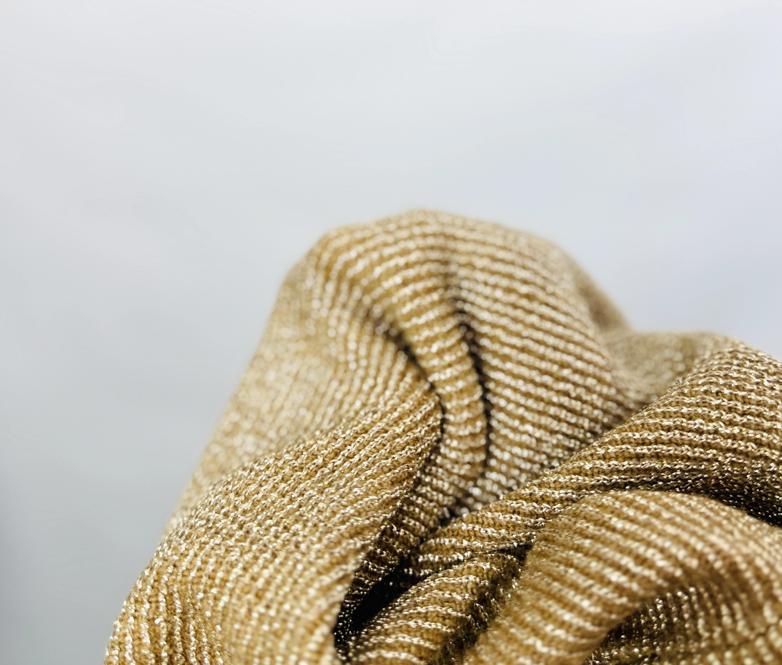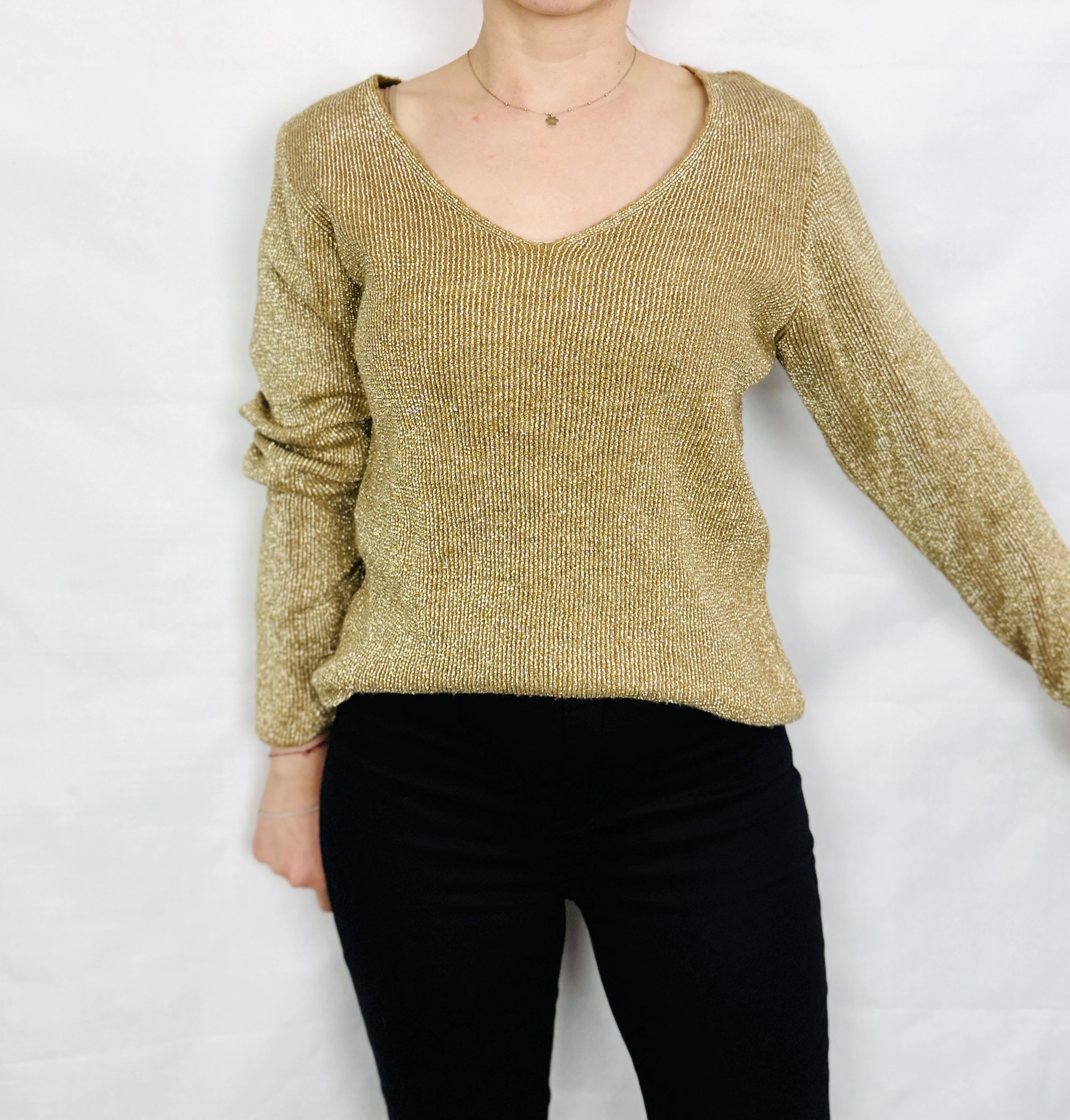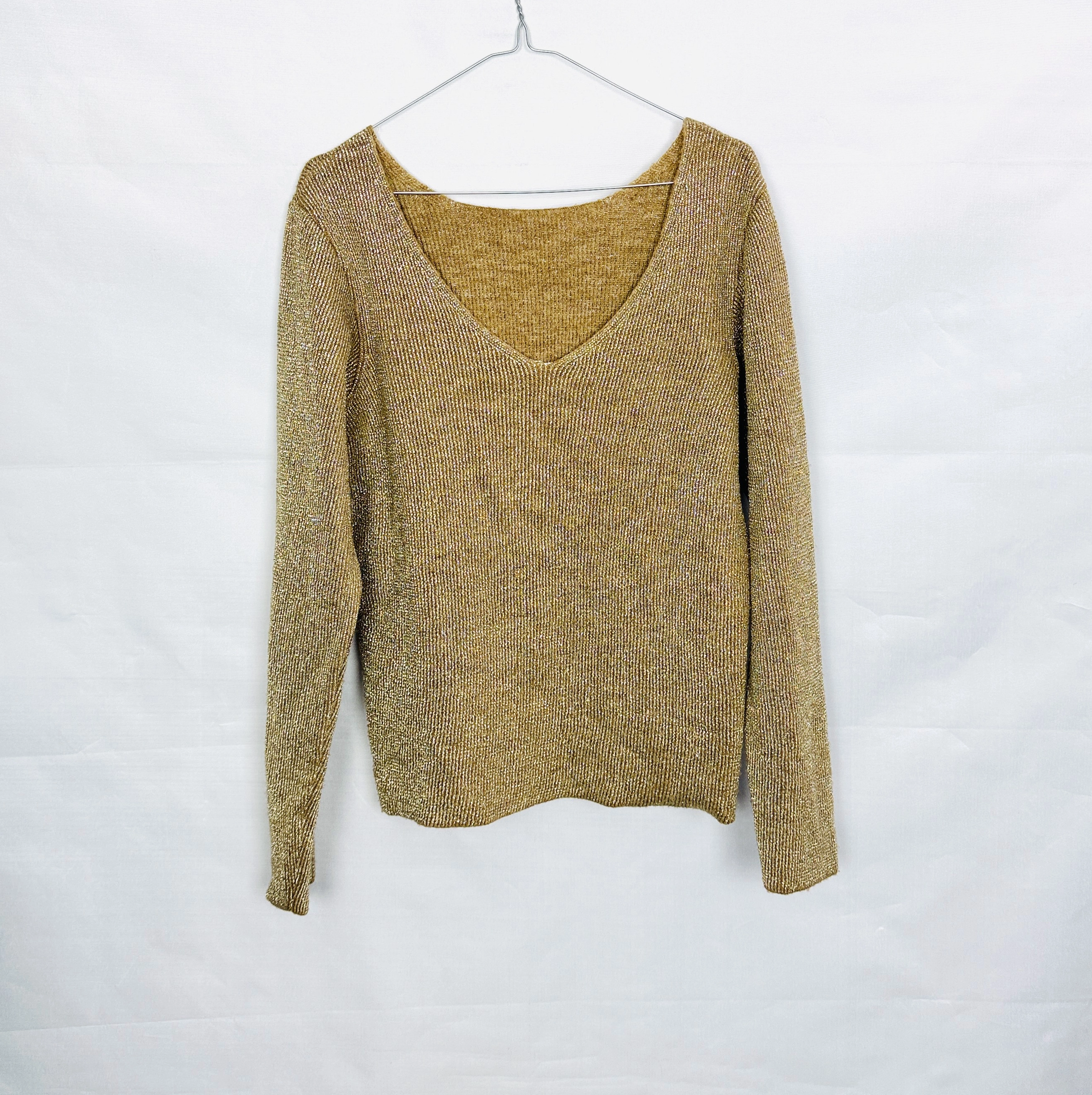 Złoty prążkowany sweterek z metalicznym połyskiem M 38