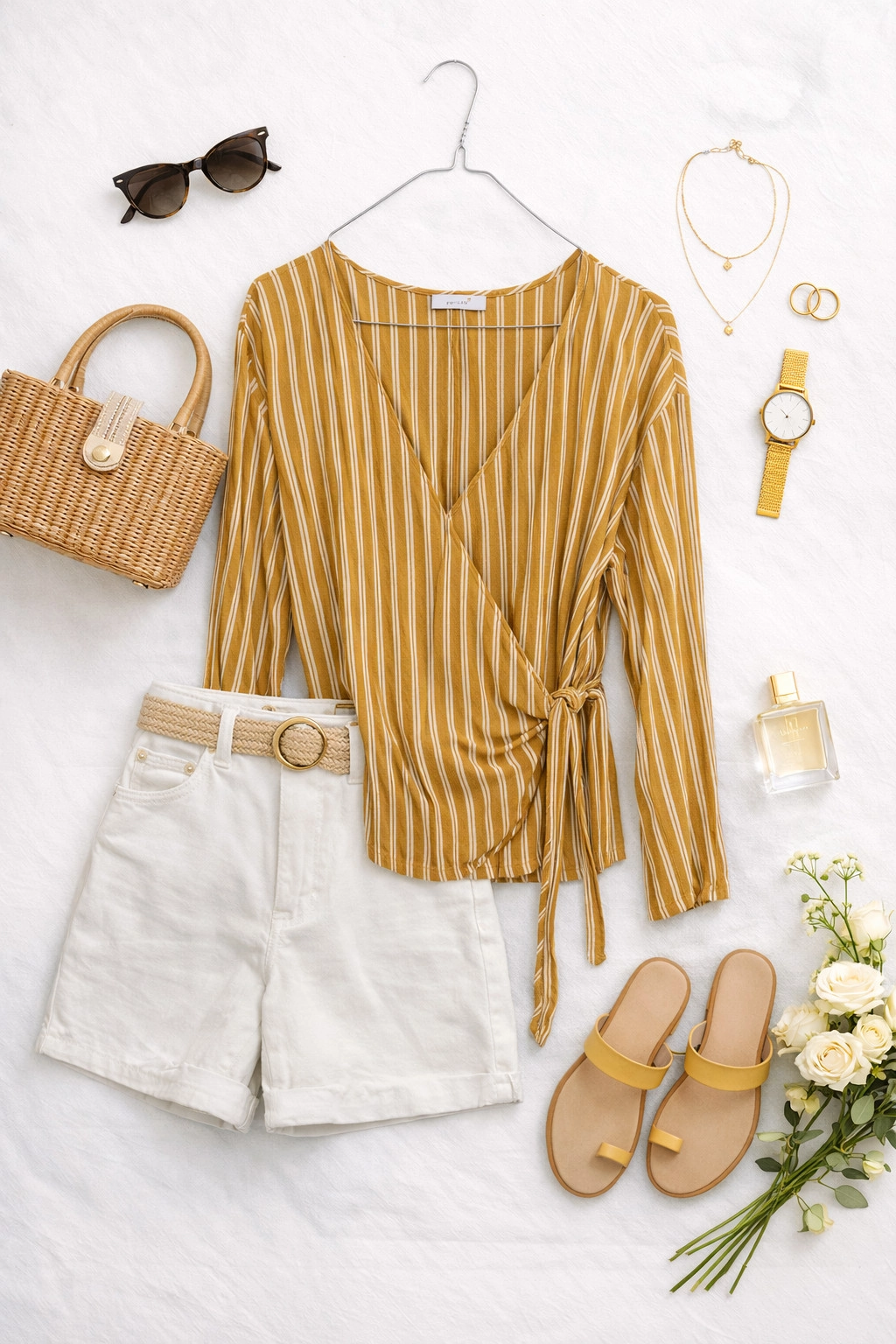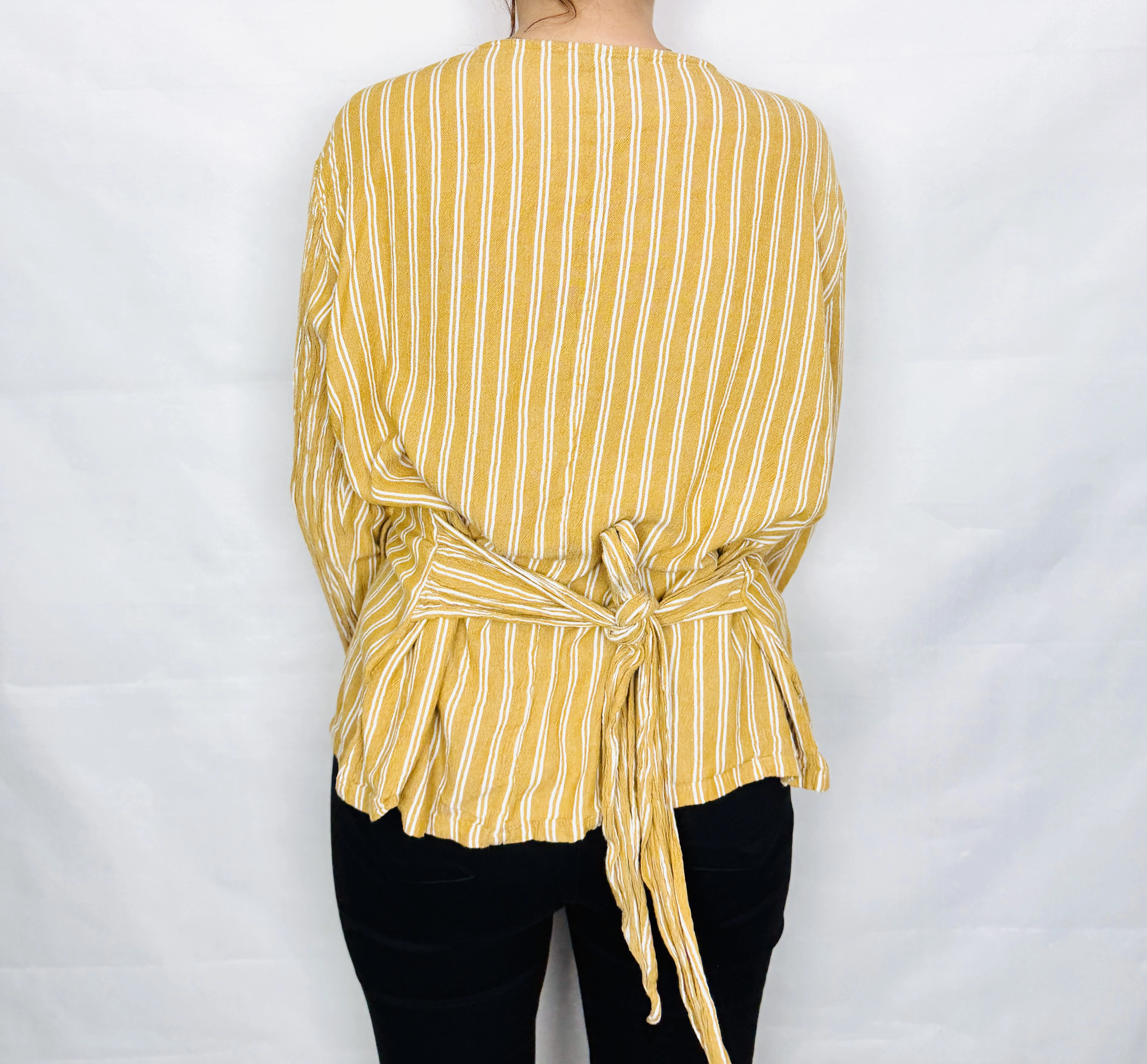 Ta bluzka zachwyca swoją świeżością i subtelną elegancją, która idealnie wpisuje się w codzienne, kobiece stylizacje. Ciepły, słoneczny odcień żółci w połączeniu z delikatnymi, jasnymi paskami tworzy harmonijną i lekką kompozycję, przywodzącą na myśl letnią swobodę i naturalny styl. To model, który łączy w sobie wygodę z ponadczasowym wzornictwem, dzięki czemu świetnie sprawdzi się zarówno na co dzień, jak i w bardziej dopracowanych zestawach.