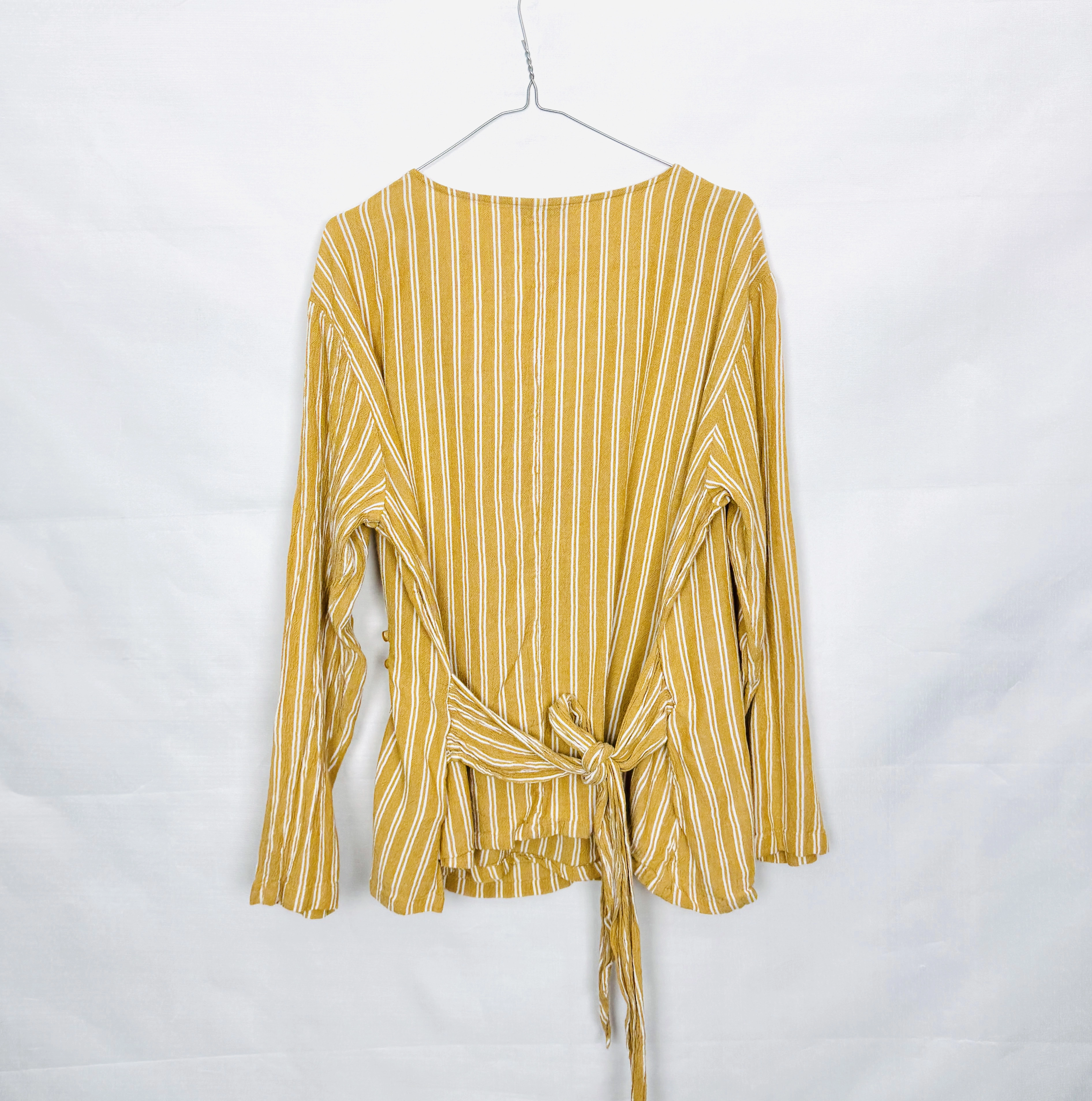 Żółta bluzka w paski z dekoltem V 3XL 46