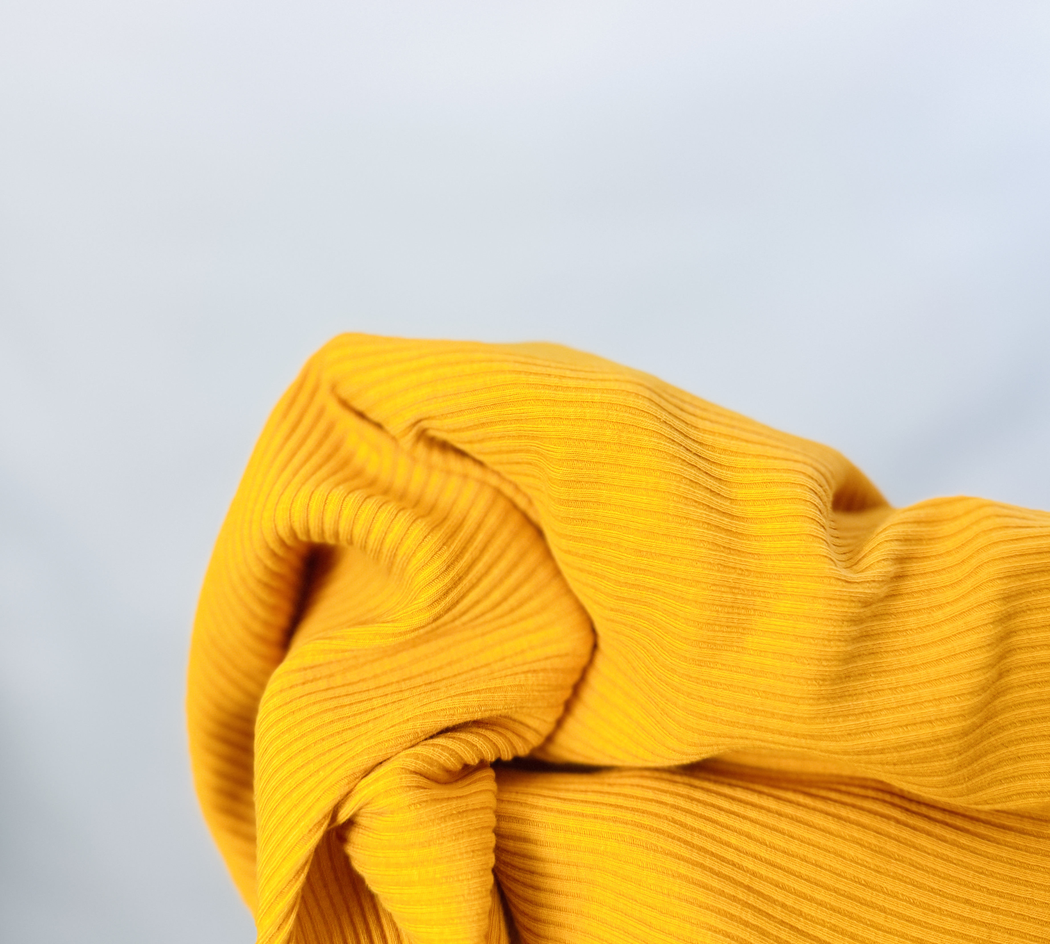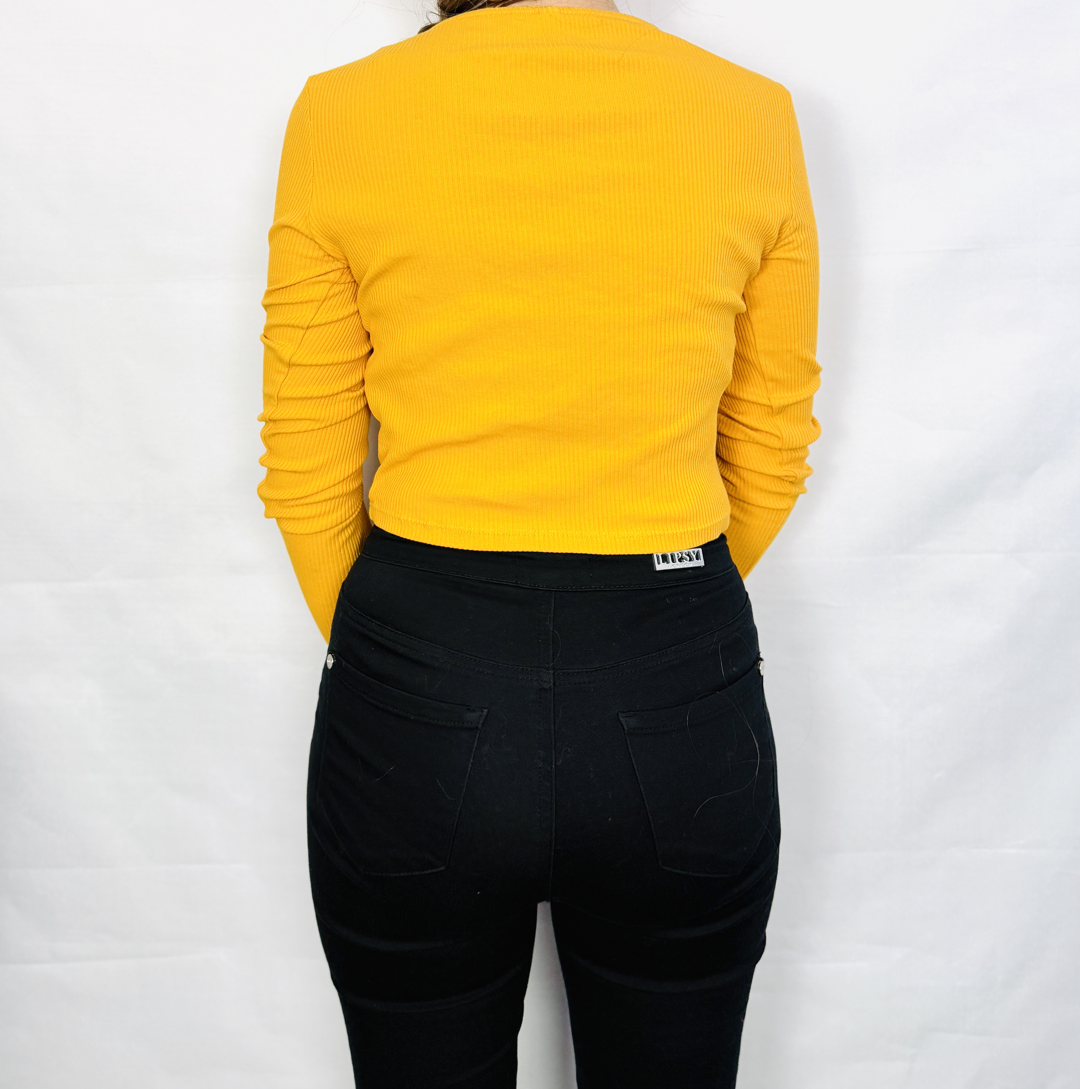 Krój jest dopasowany, mocniej zaznaczony w biuście i talii, zakończony krótko przy linii talii, co tworzy crop topowy charakter. Rękawy są długie i smukłe, z naturalnym marszczeniem przy łokciach, które dodaje dynamiki i swobody ruchu. Materiał ma wyraźną prążkowaną fakturę, wygląda na elastyczny i miękko układający się, co pozwala na wygodne noszenie i dobrze podkreśla sylwetkę bez nadmiernego opinania. Gładkie wykończenie nadaje bluzce lekko sportowy, a zarazem kobiecy sznyt.