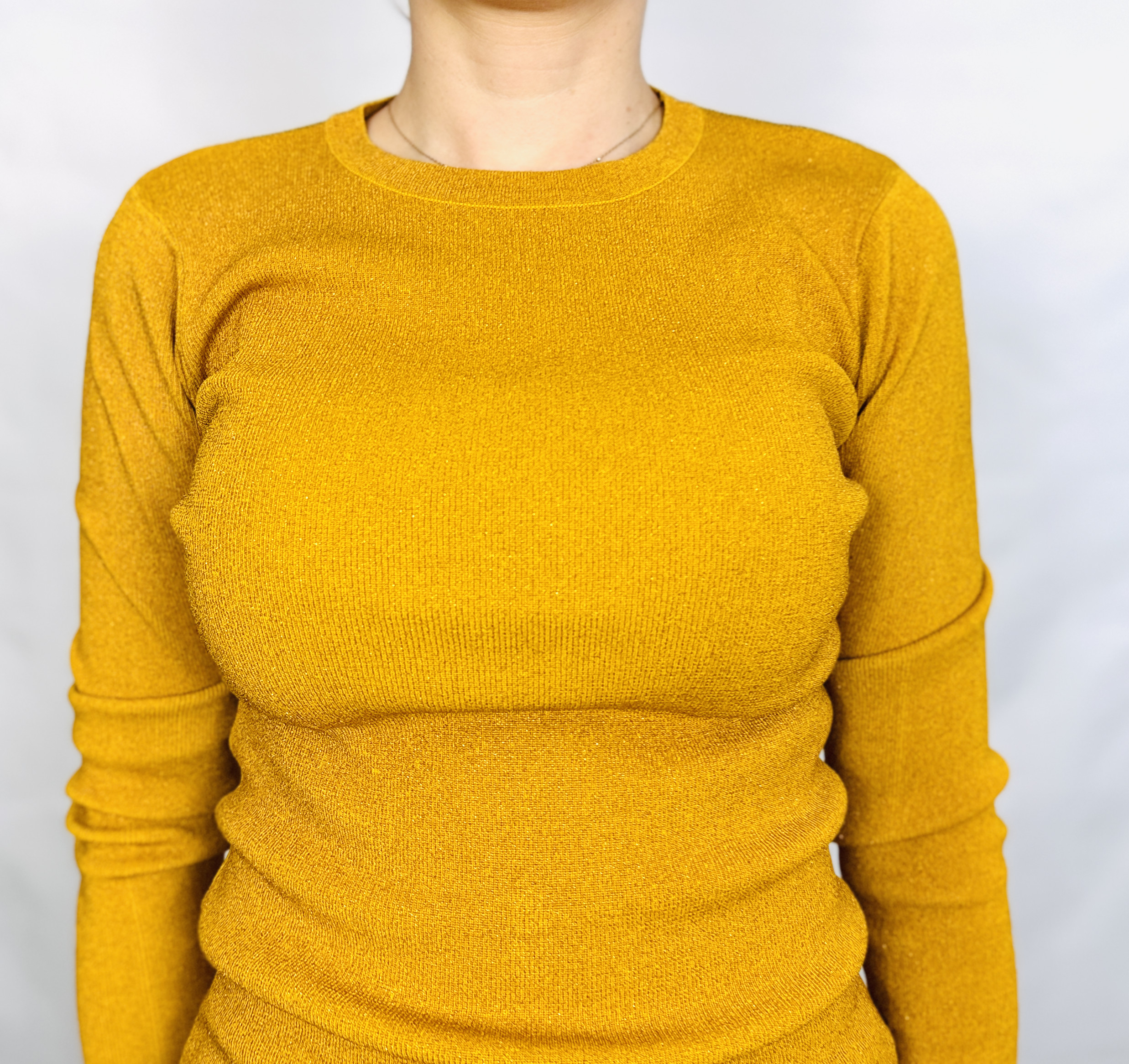 Fason podkreśla talię i subtelnie modeluje górną partię ciała, wysmuklając sylwetkę i nadając jej bardziej zdefiniowane kontury. Dla sylwetki klepsydry bluzka podkreśli naturalne krągłości, u sylwetki gruszki wyrówna proporcje, akcentując górę, a u sylwetki prostokątnej wprowadzi przyjemne zarysowanie kształtów. Dzięki swojej uniwersalności doskonale wpisze się w różne okazje: na co dzień zestaw z jeansami i sneakersami dla swobodnego looku; do pracy połącz z cygaretkami lub spódnicą ołówkową i eleganckimi butami dla bardziej wyrafinowanego wyrazu; na wieczór warto połączyć ją z spódnicą midi lub skórzanymi spodniami i wysokimi obcasami, aby podkreślić kobiecy charakter. Kolor żółty harmonizuje świetnie z czernią, beżem, kremem, denimem oraz odcieniami brązu i granatu, dając szerokie pole do tworzenia zarówno stonowanych, jak i kontrastowych stylizacji.