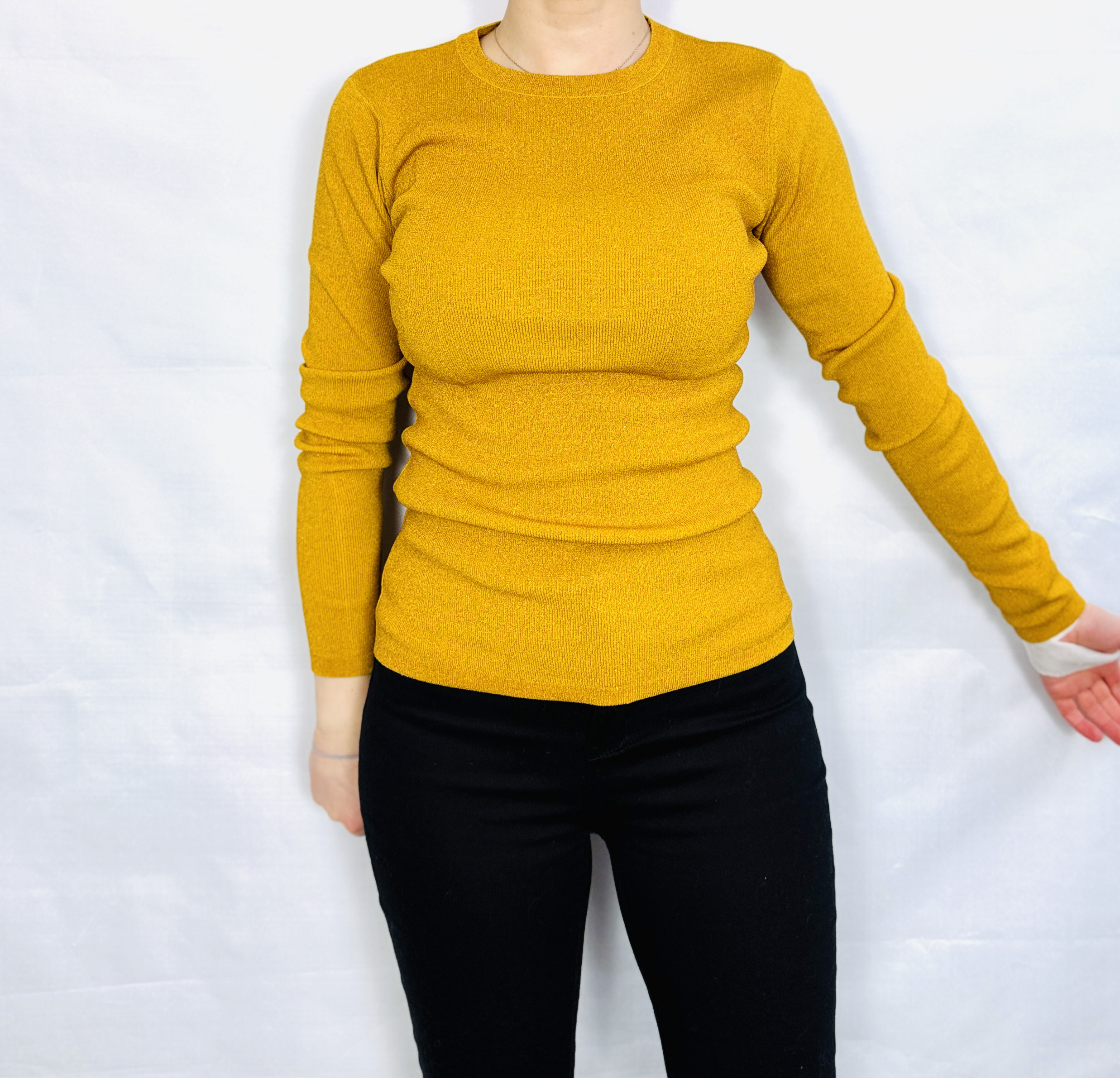 Ta żółta bluzka to esencja ciepła i subtelnej pewności siebie — promienna, a jednocześnie elegancka. Intensywny, słoneczny odcień dodaje energii i natychmiast ożywia stylizację, zachowując przy tym wyrafinowaną prostotę. Projekt emanuje codzienną klasą: to element garderoby, który potrafi rozświetlić nawet stonowane zestawienia, wprowadzając do nich nowoczesny, kobiecy akcent.